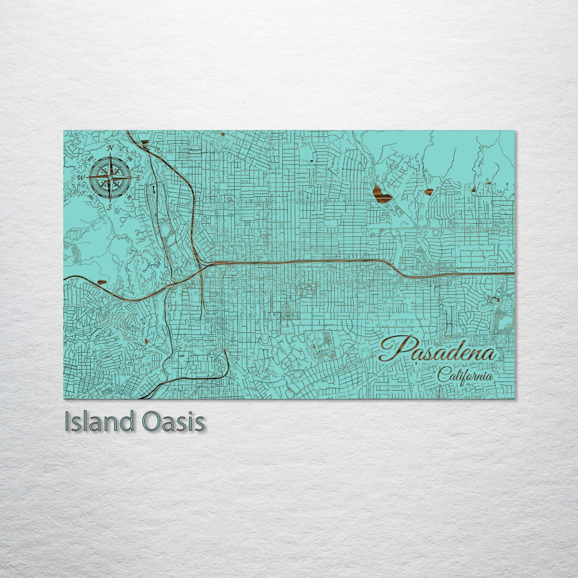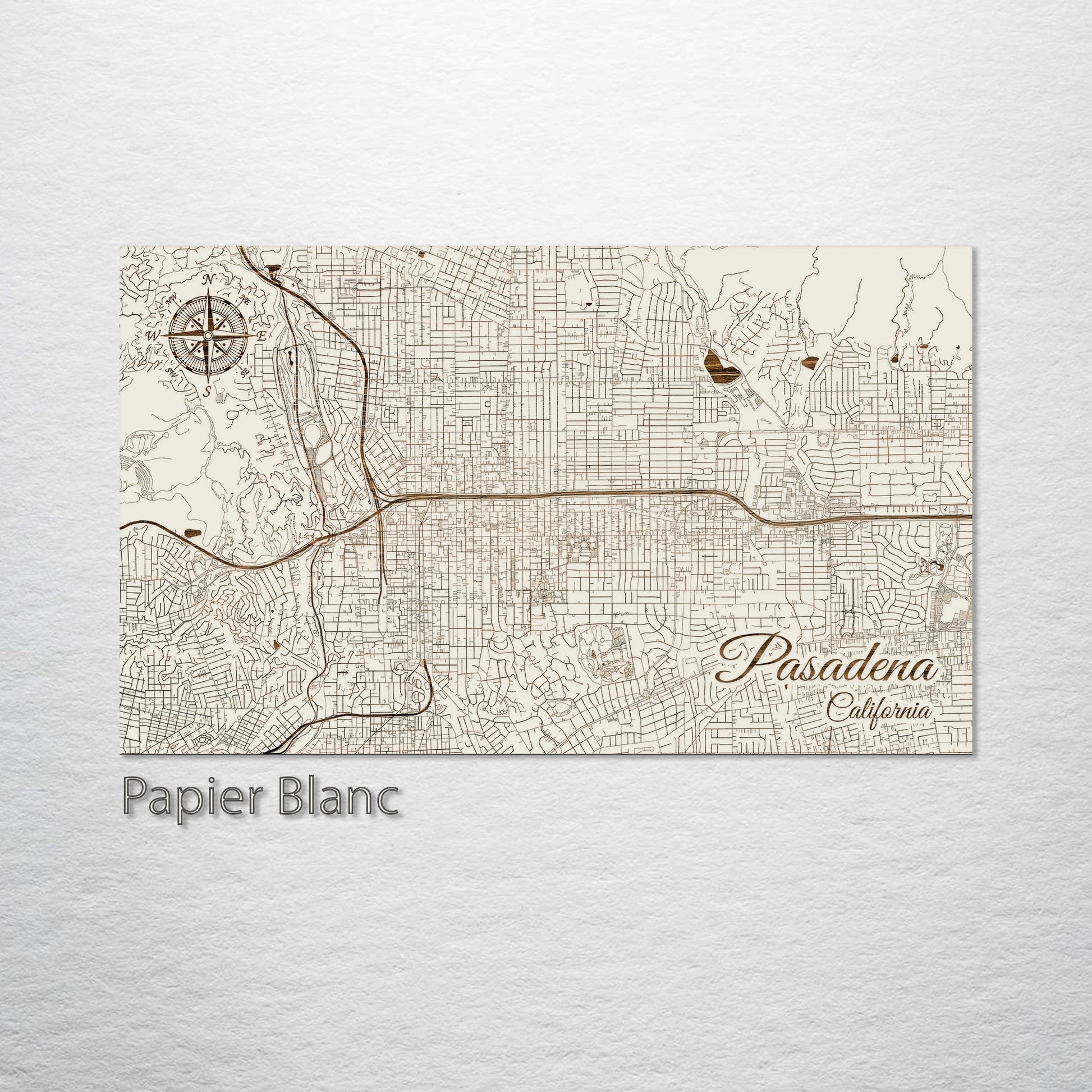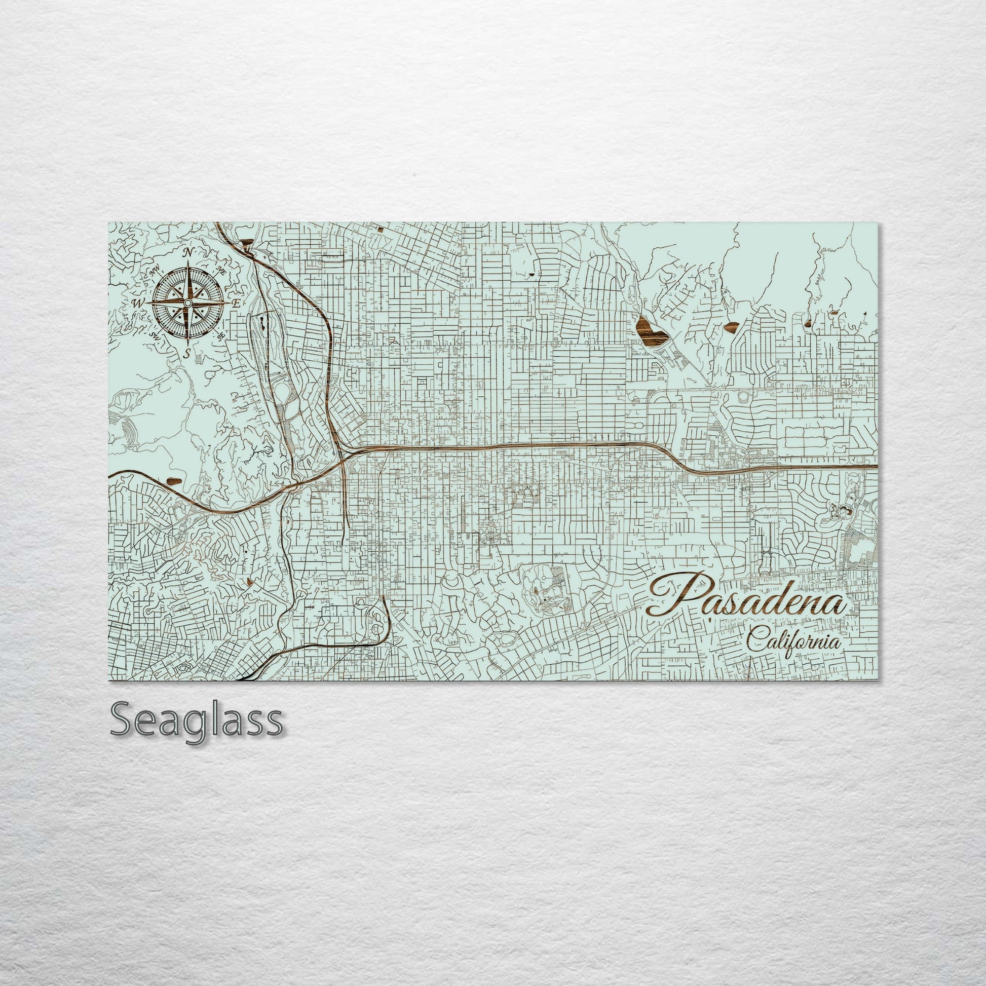 This is a street map of Pasadena, CA designed by Fire & Pine artists.