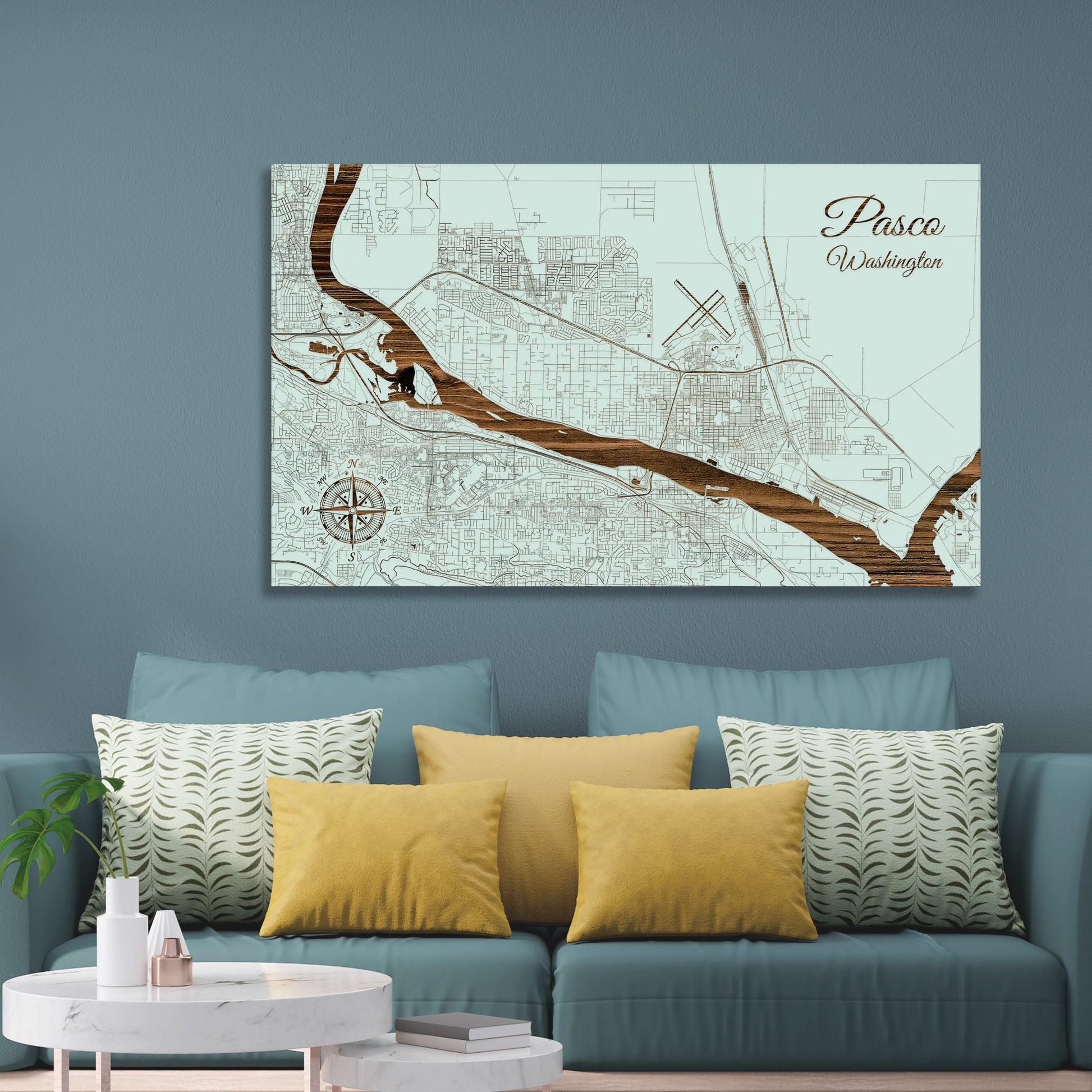 This is a street map of Pasco, WA designed by Fire & Pine artists.