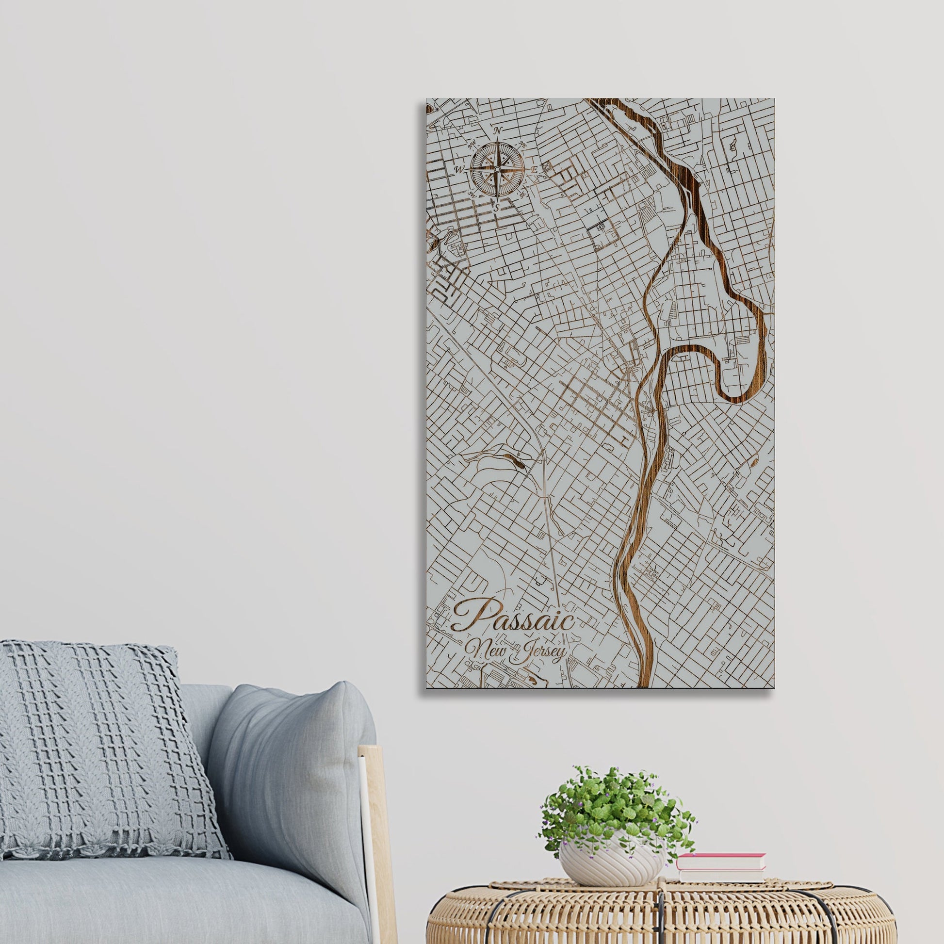 This is a street map of Passaic, NJ designed by Fire & Pine artists.