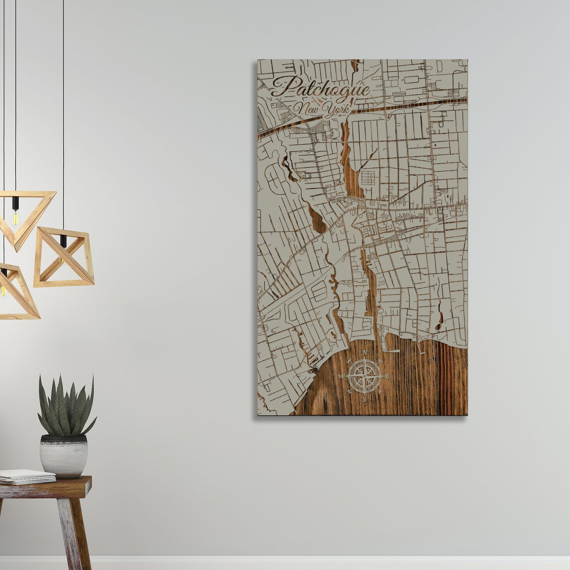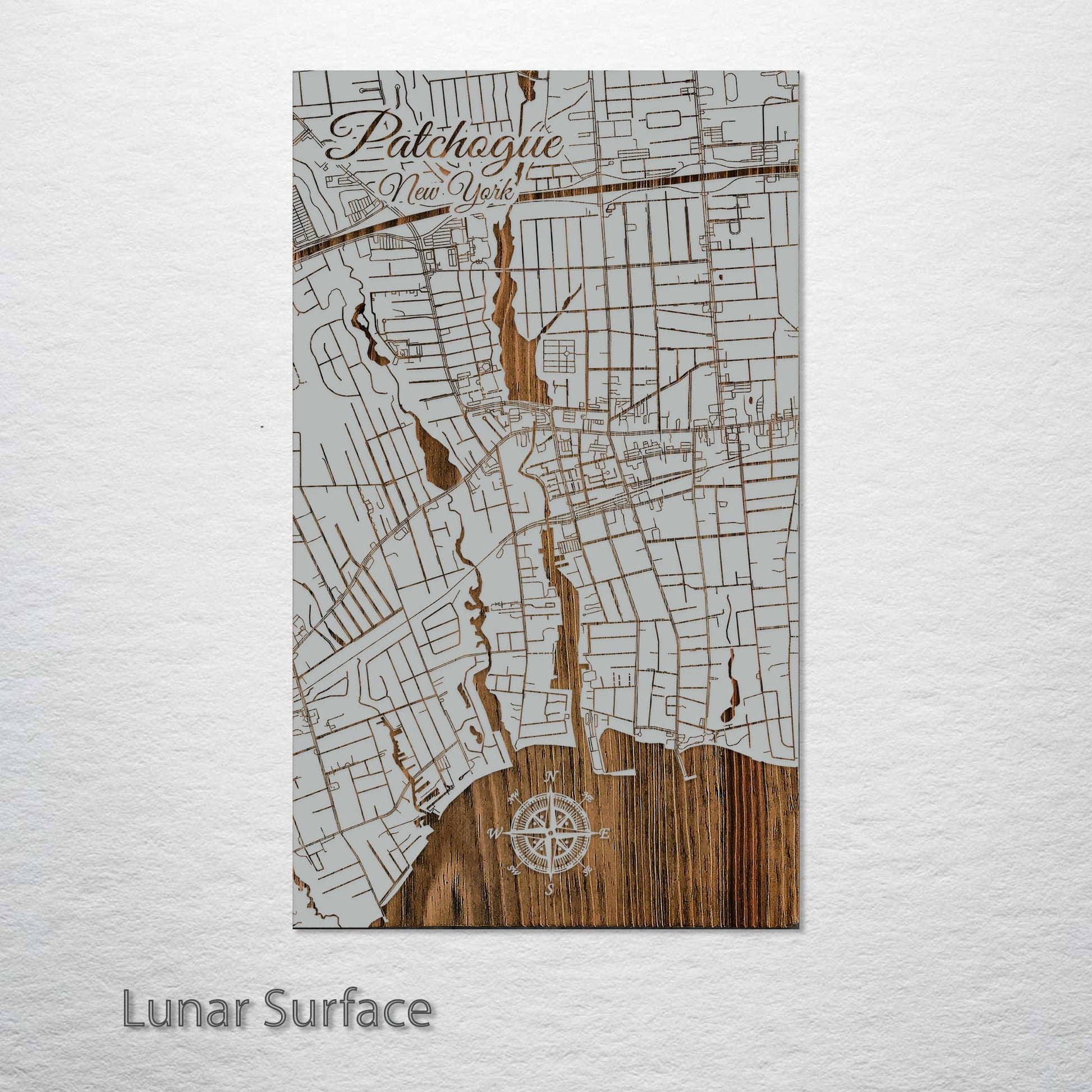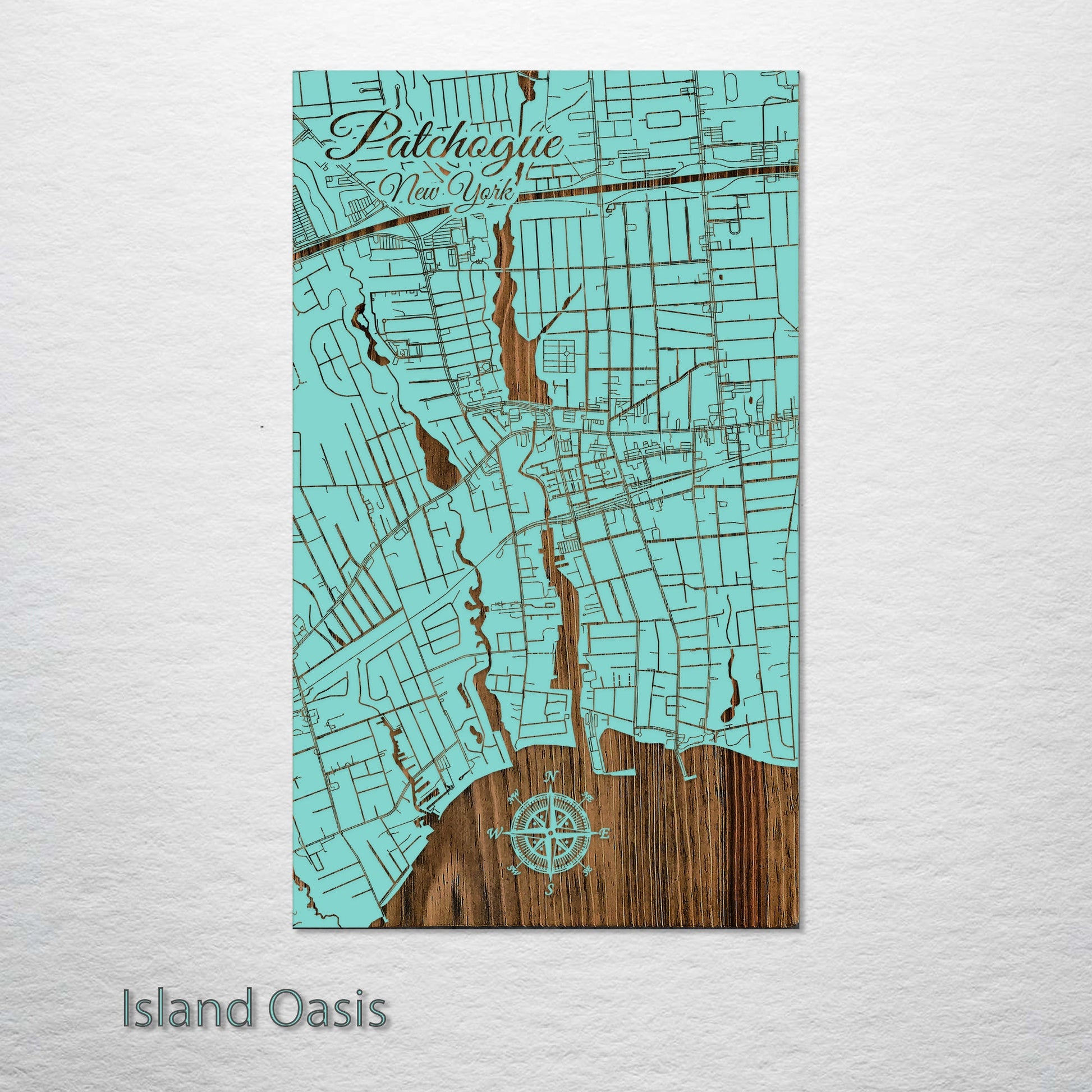 This is a street map of Patchogue, NY designed by Fire & Pine artists.