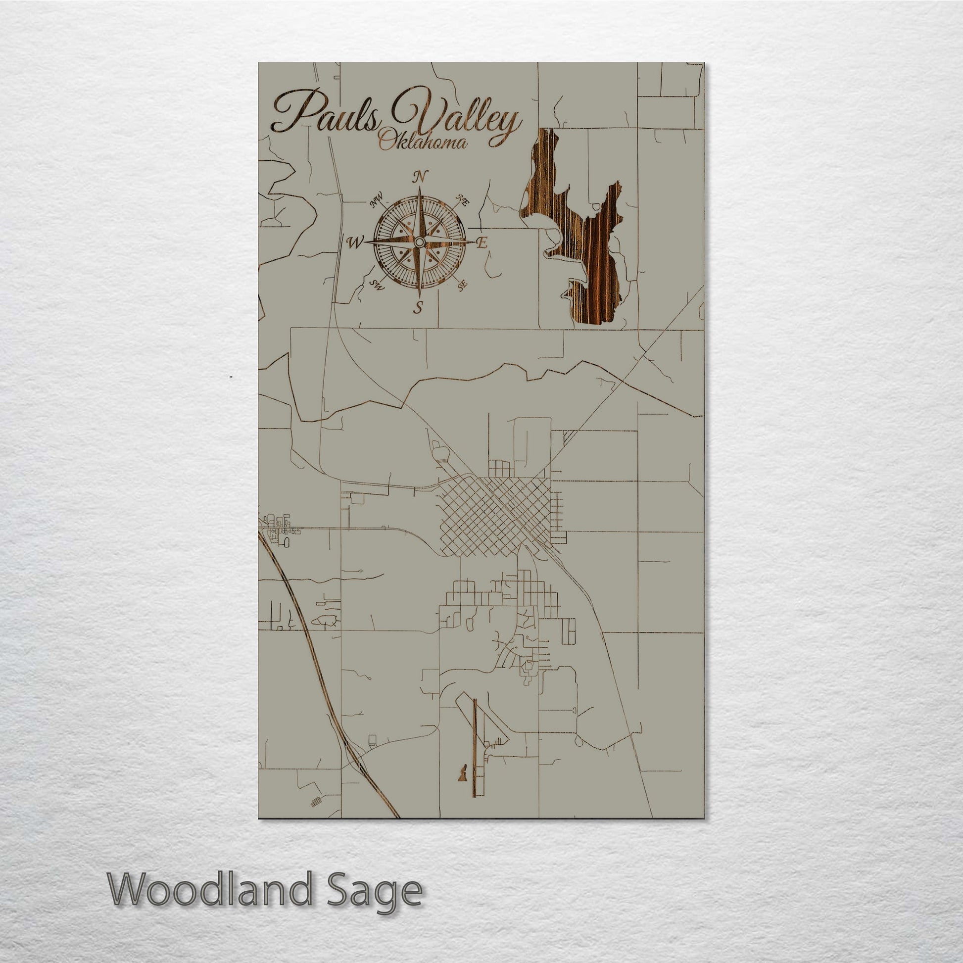 This is a street map of Pauls Valley, OK designed by Fire & Pine artists.