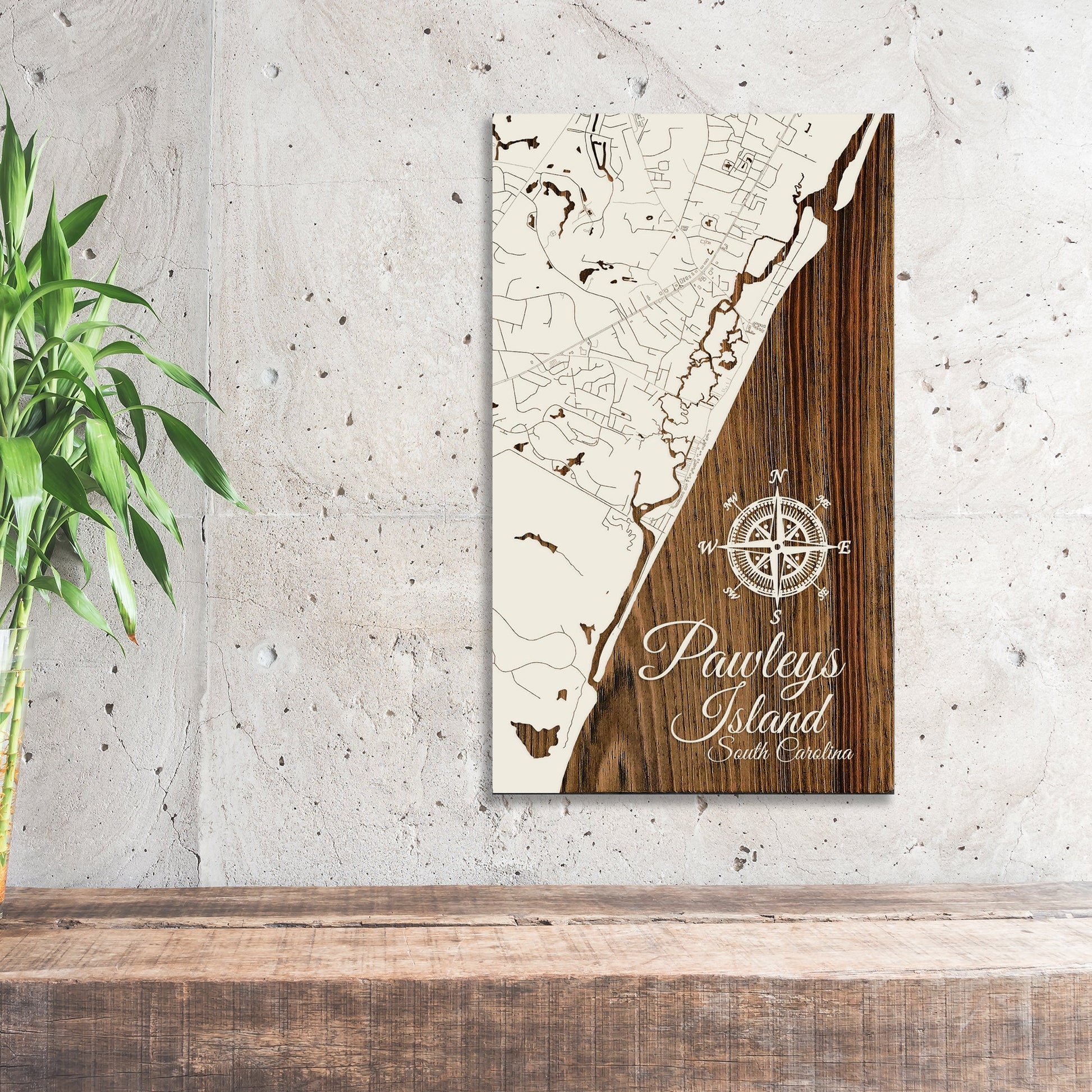 Distinctive Keepsake for Cartography Aficionados: This Pawleys Island, South Carolina Street Map is a wood-engraved treasure, perfect for those with a penchant for the historical streets and coastal charm of Pawleys Island. Each map is carved from select pine wood, revealing the intricate pathways and byways that make this destination unique.