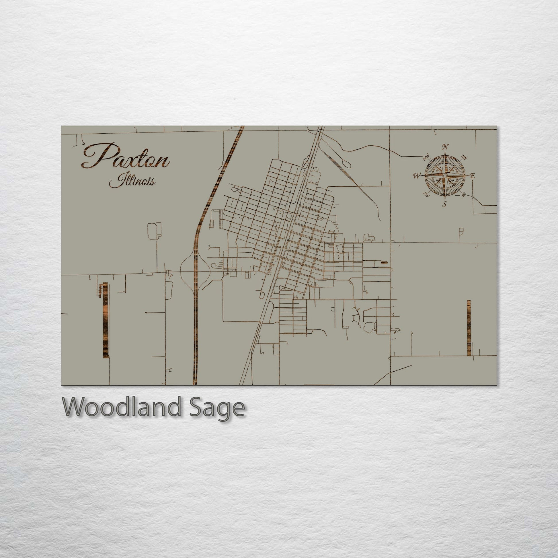 This is a street map of Paxton, IL designed by Fire & Pine artists.