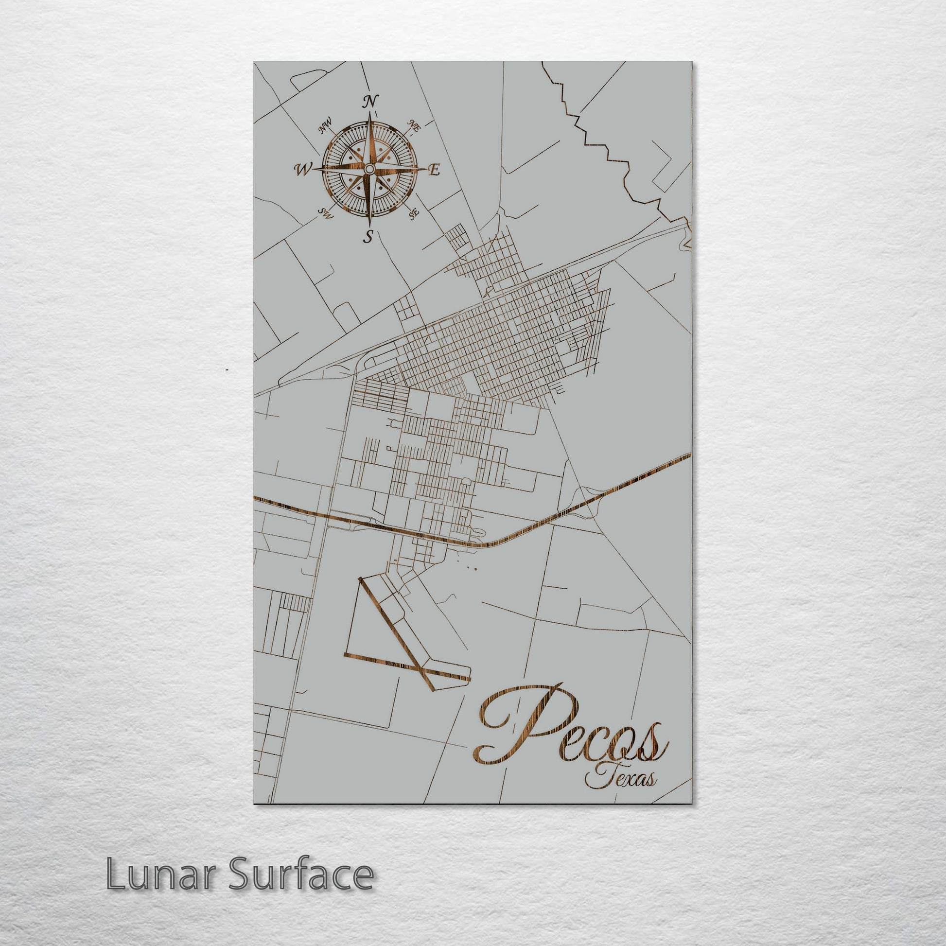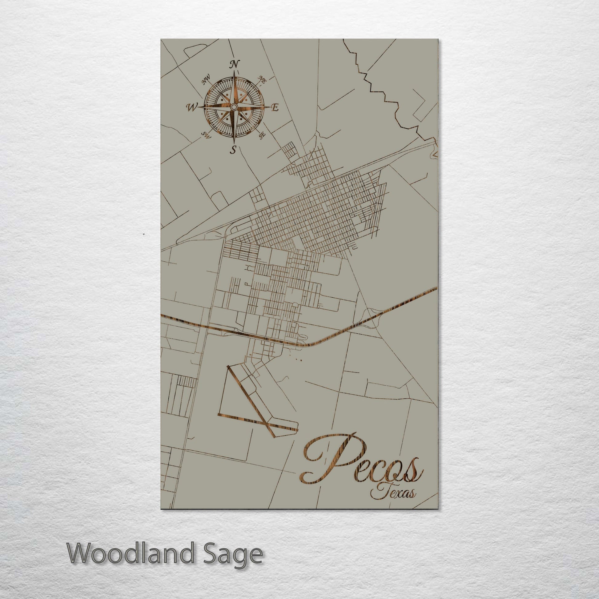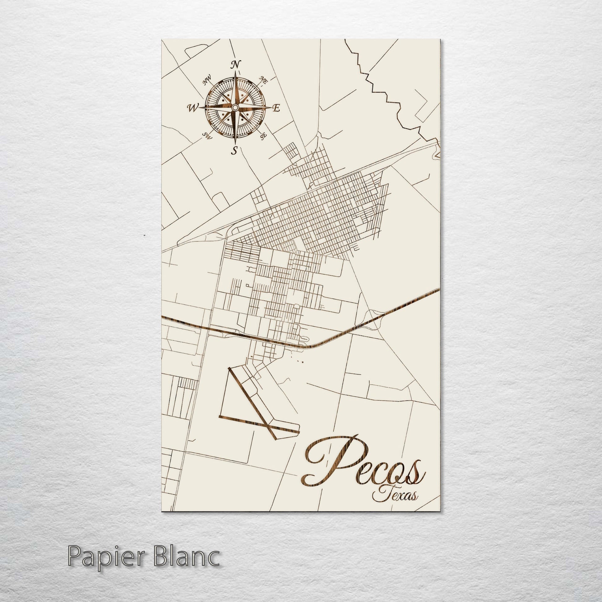 This is a street map of Pecos, TX designed by Fire & Pine artists.