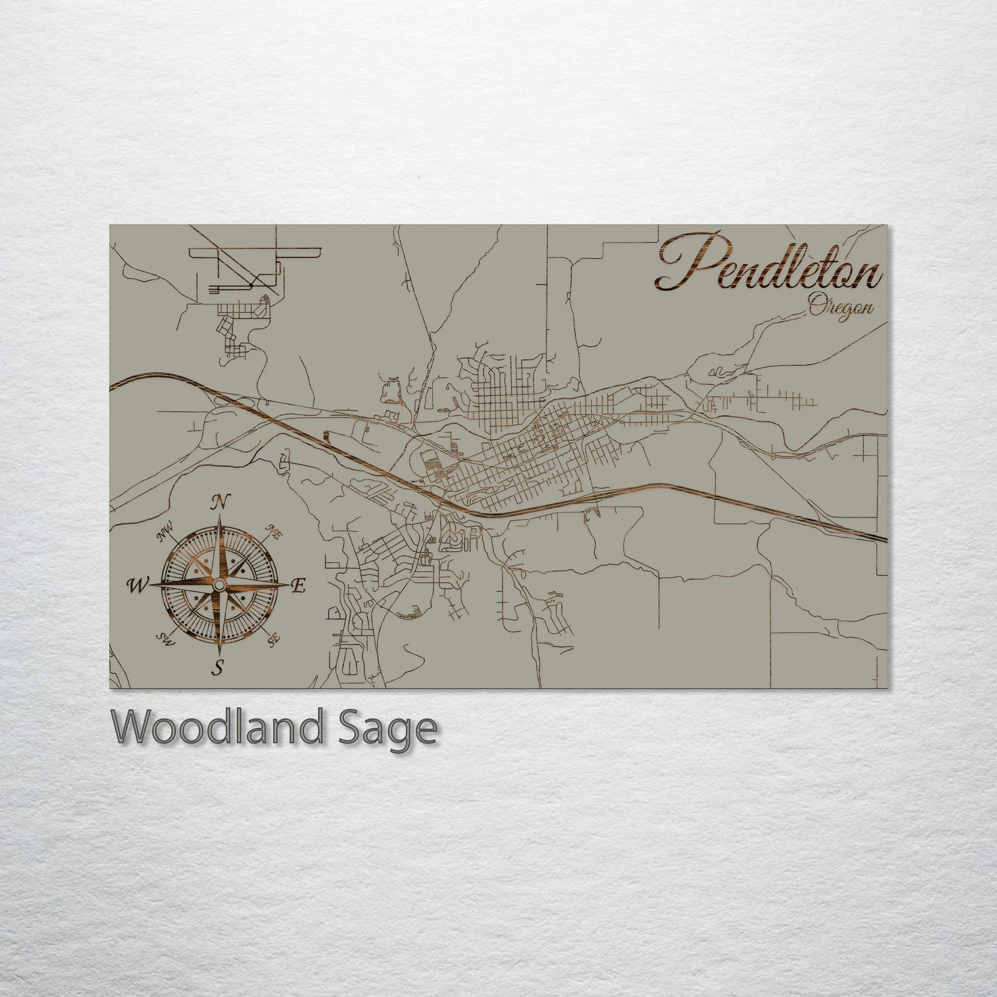 This is a street map of Pendleton, OR designed by Fire & Pine artists.