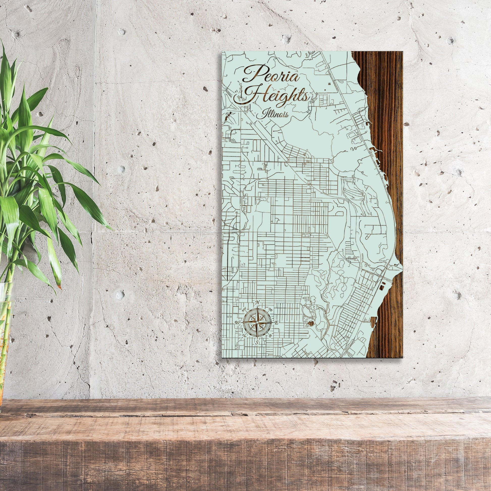 This is a street map of Peoria Heights, IL designed by Fire & Pine artists.
