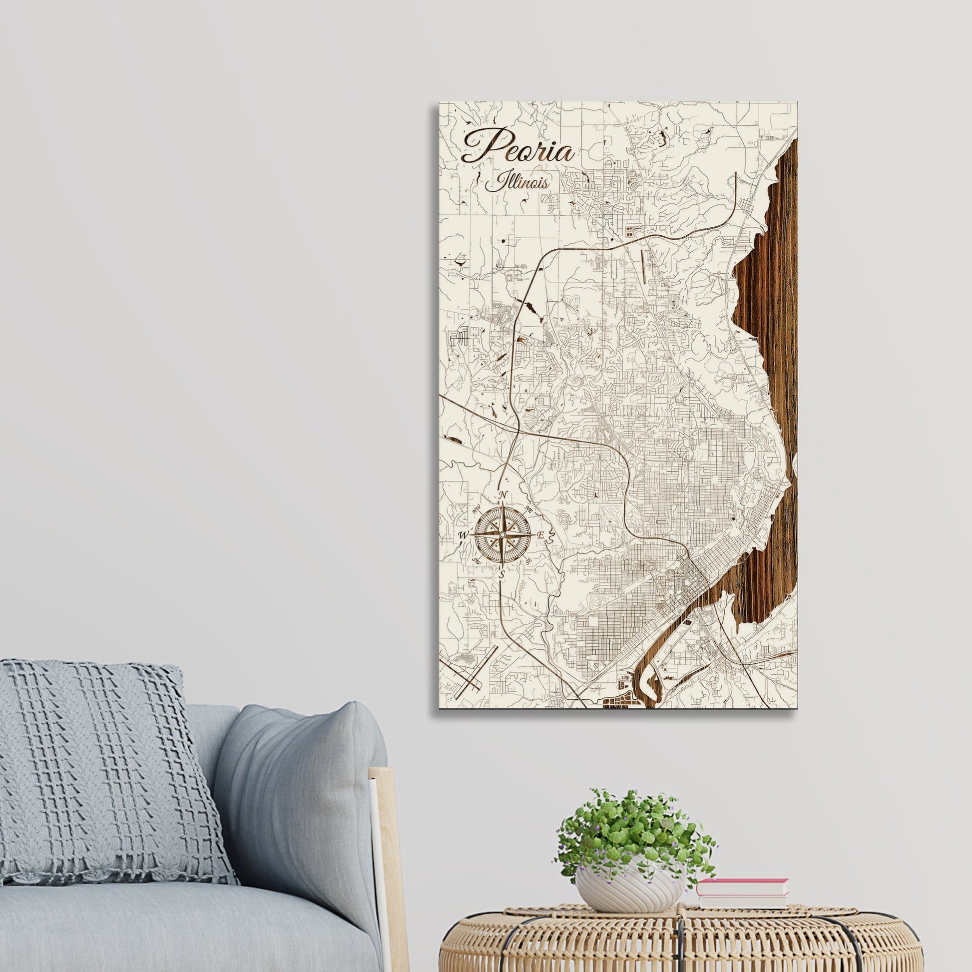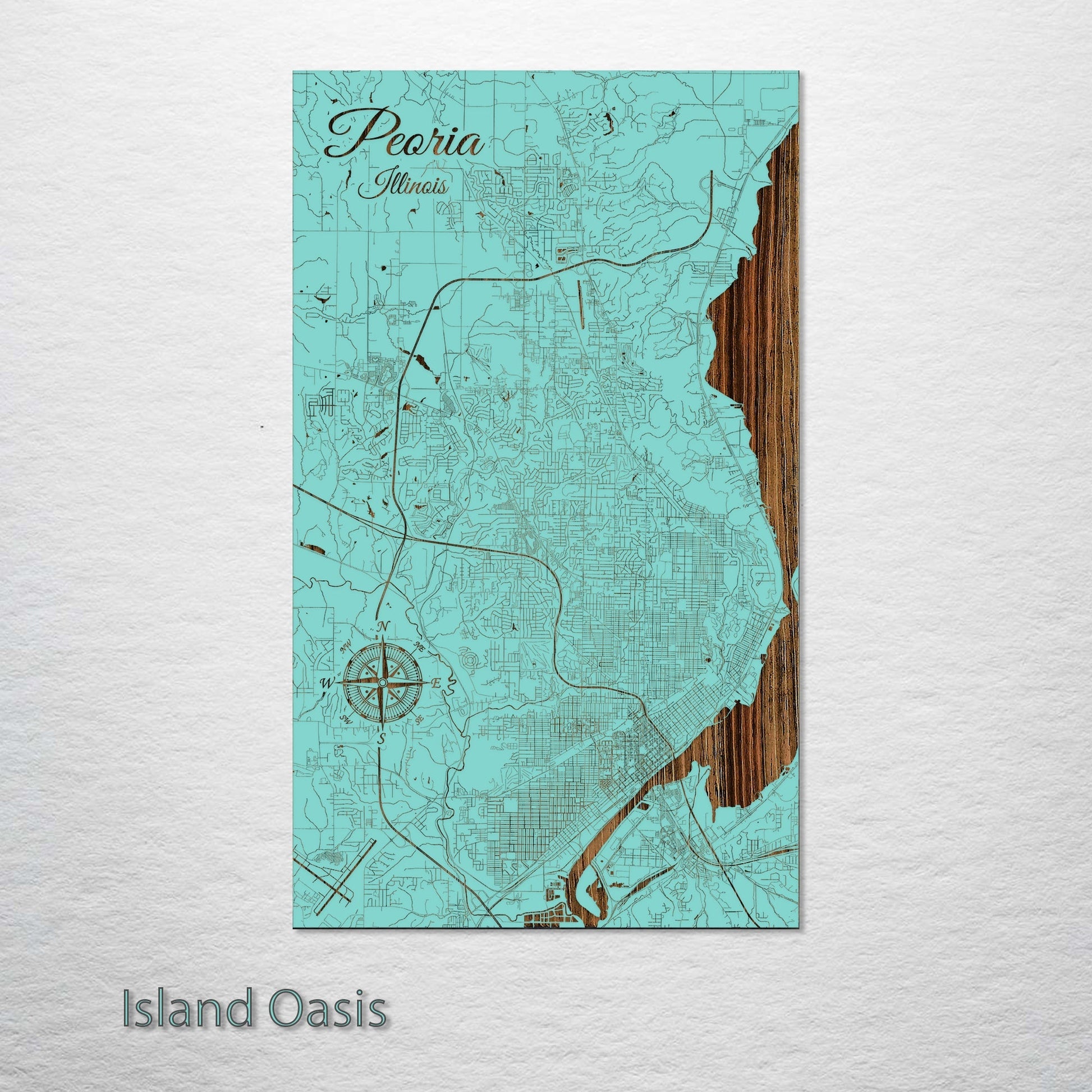 This is a street map of Peoria, IL designed by Fire & Pine artists.