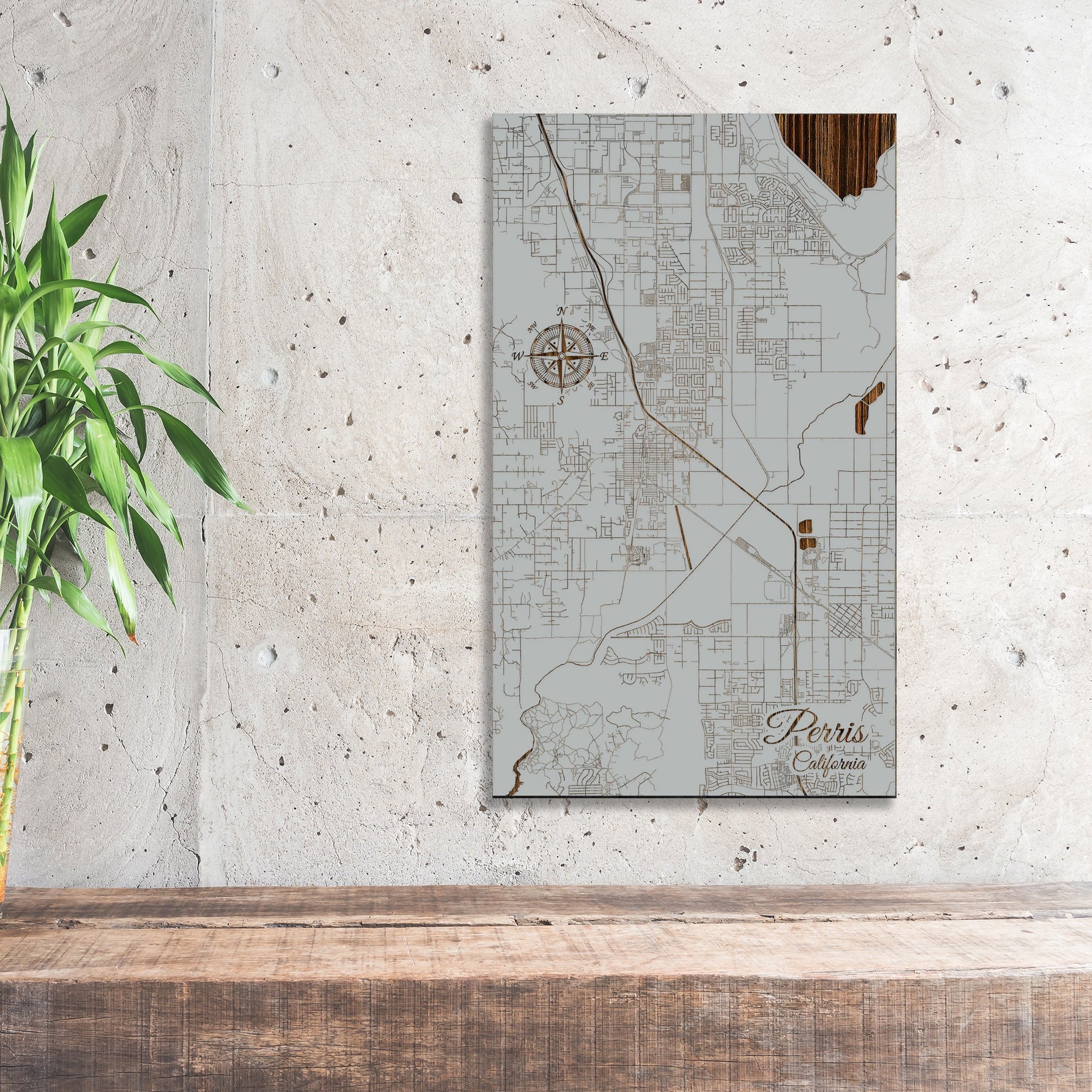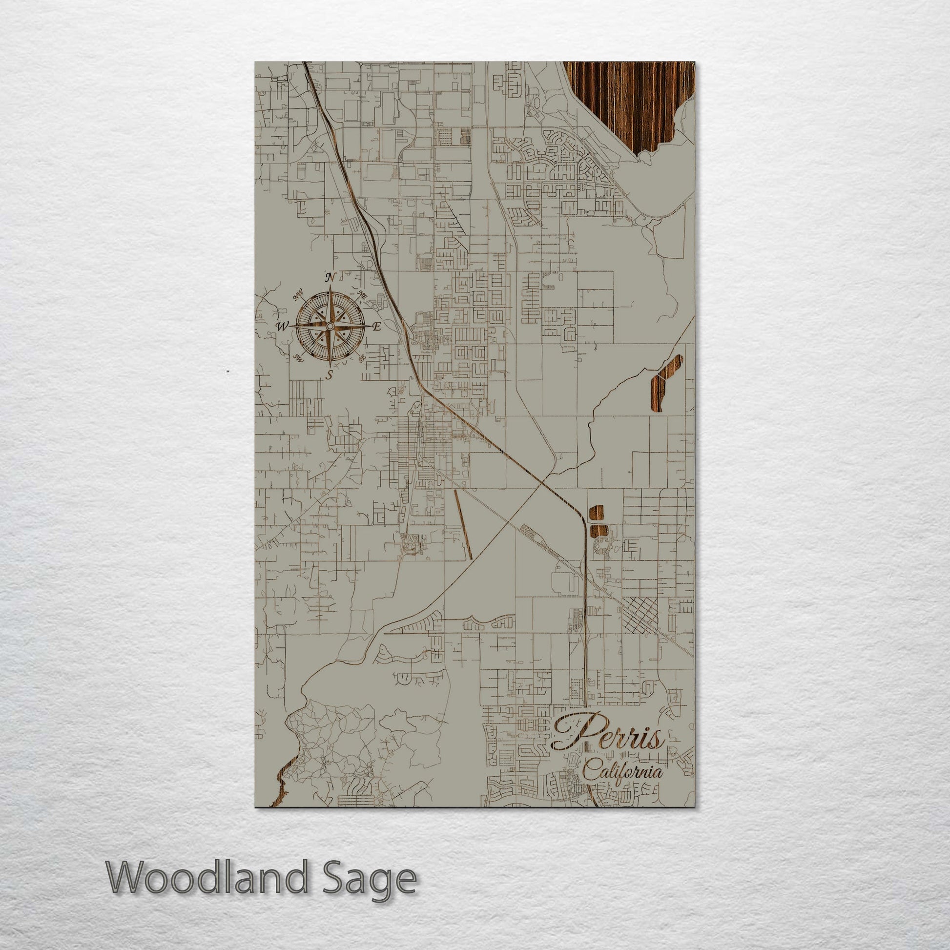This is a street map of Perris, CA designed by Fire & Pine artists.