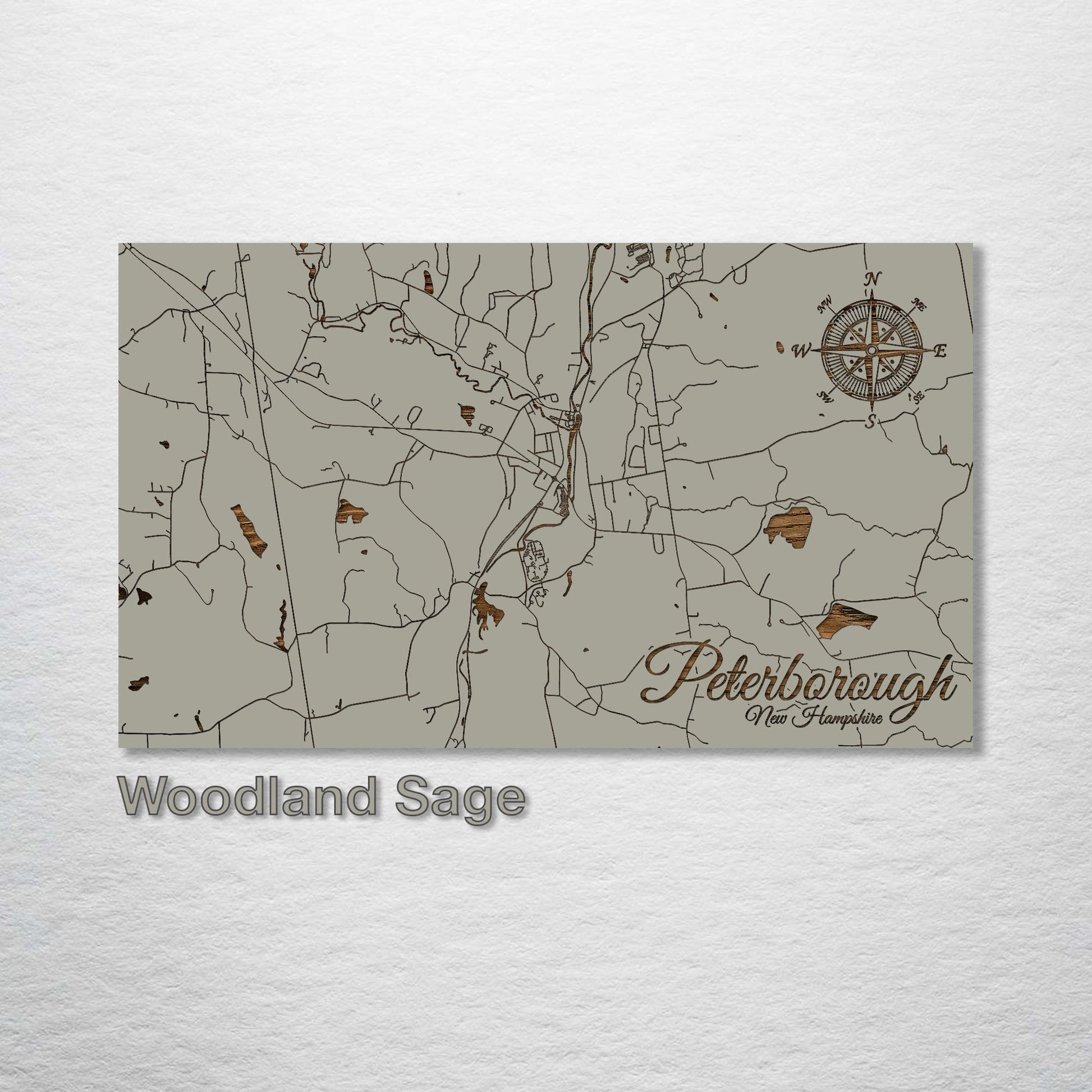 This is a street map of Peterborough, New Hampshire designed by Fire & Pine artists.