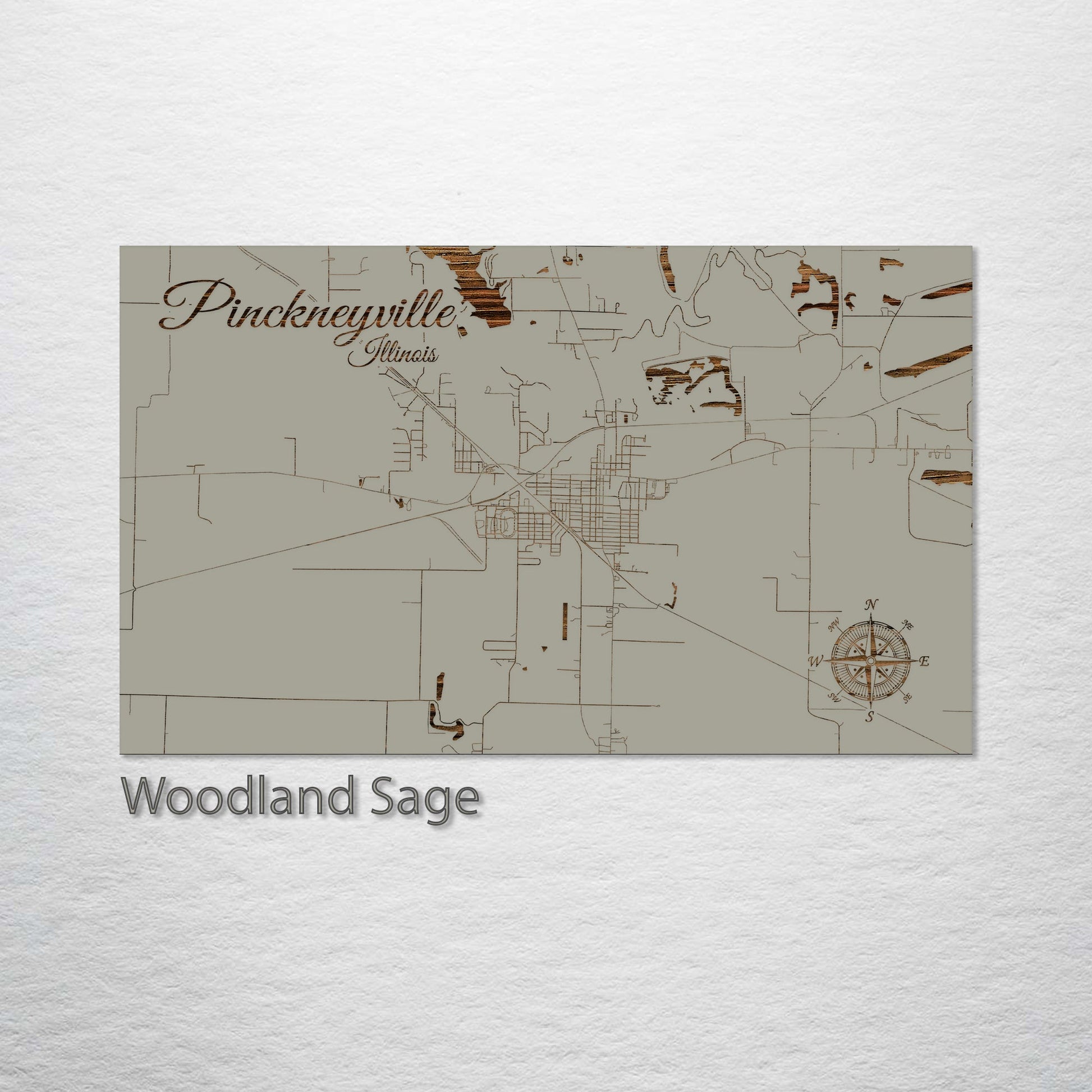 This is a street map of Pinckneyville, IL designed by Fire & Pine artists.