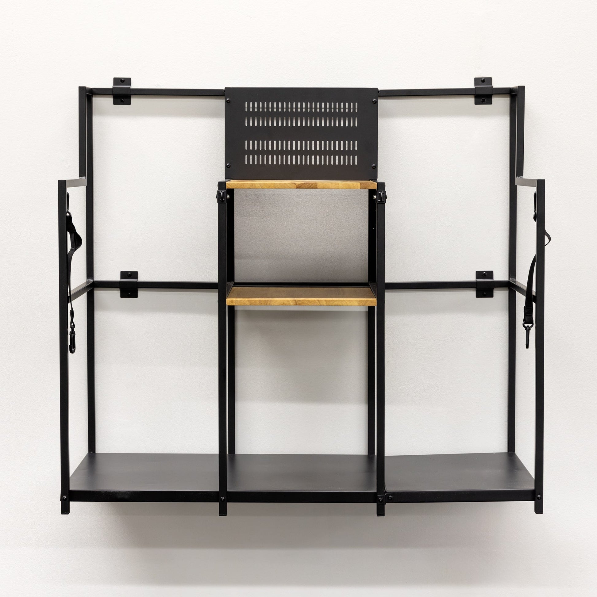 Take golf bag storage to new heights with this wall-mounted organizer, made with real hardwood and solid steel. Store your golfing essentials off the ground and keep your floor clear.