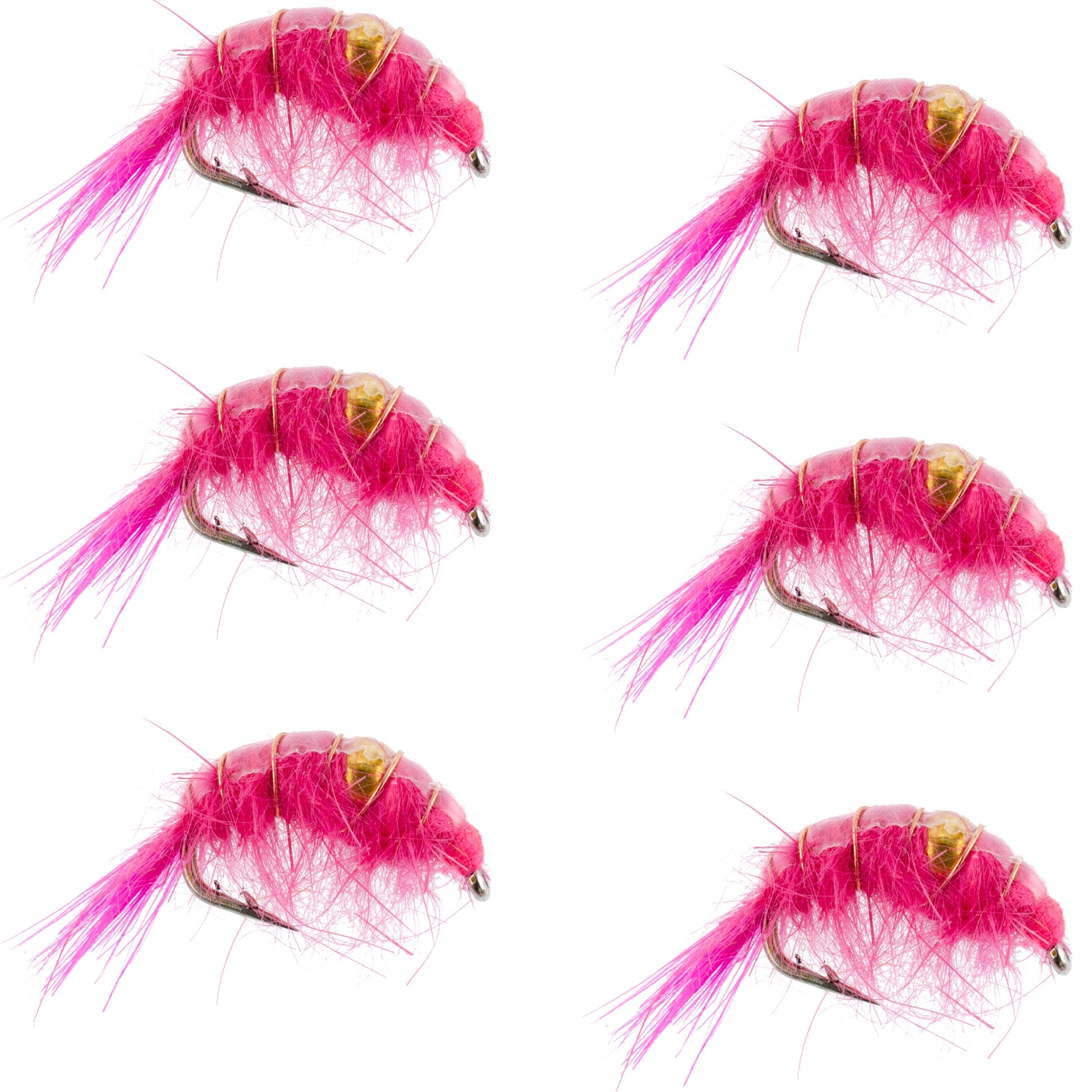 Pink Beaded Shrimp Scud Pattern - 6 Flies - Size 16 - Tailwater Lake Fly Fishing Nymph