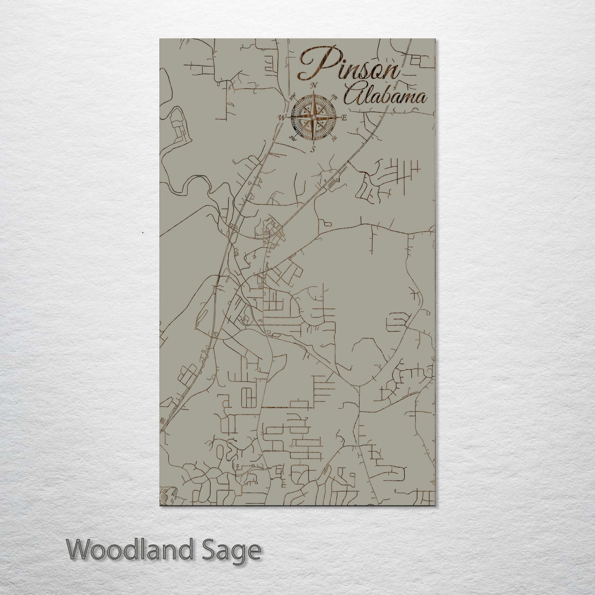 This is a street map of Pinson, AL designed by Fire & Pine artists.