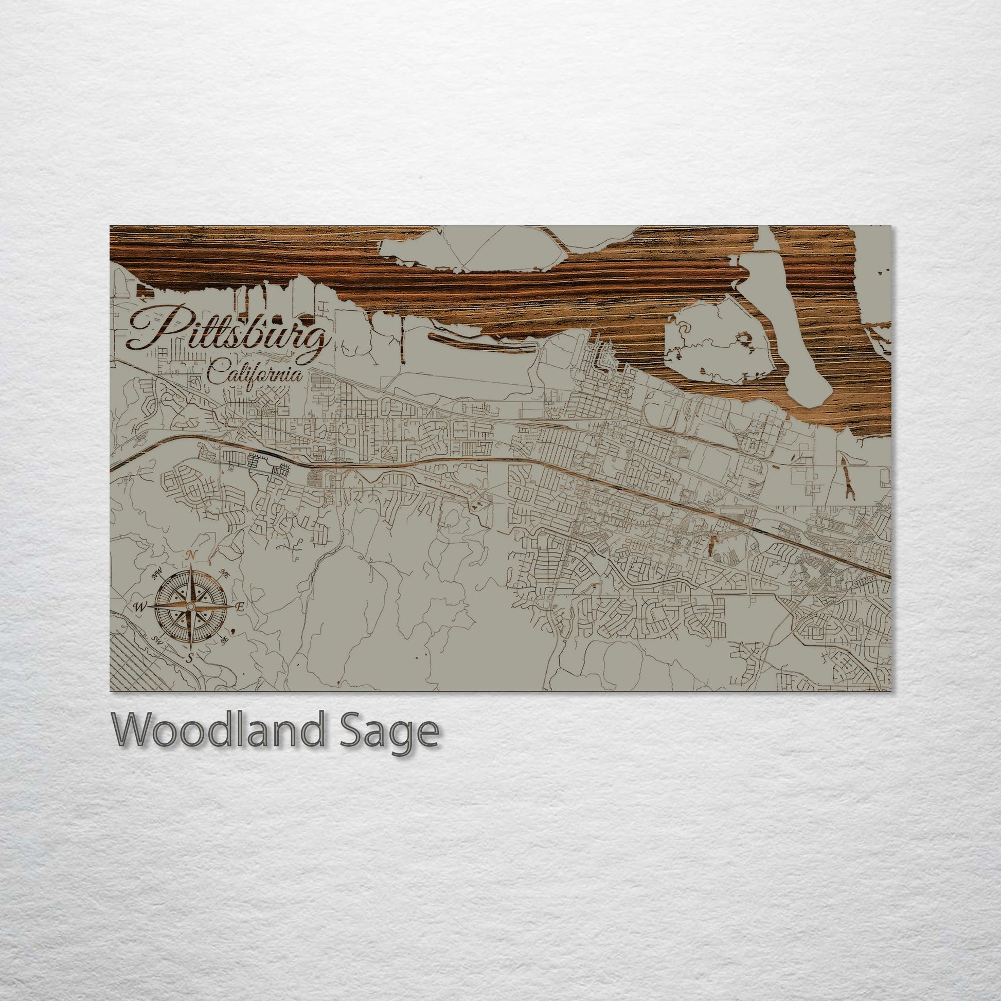 This is a street map of Pittsburg, CA designed by Fire & Pine artists.