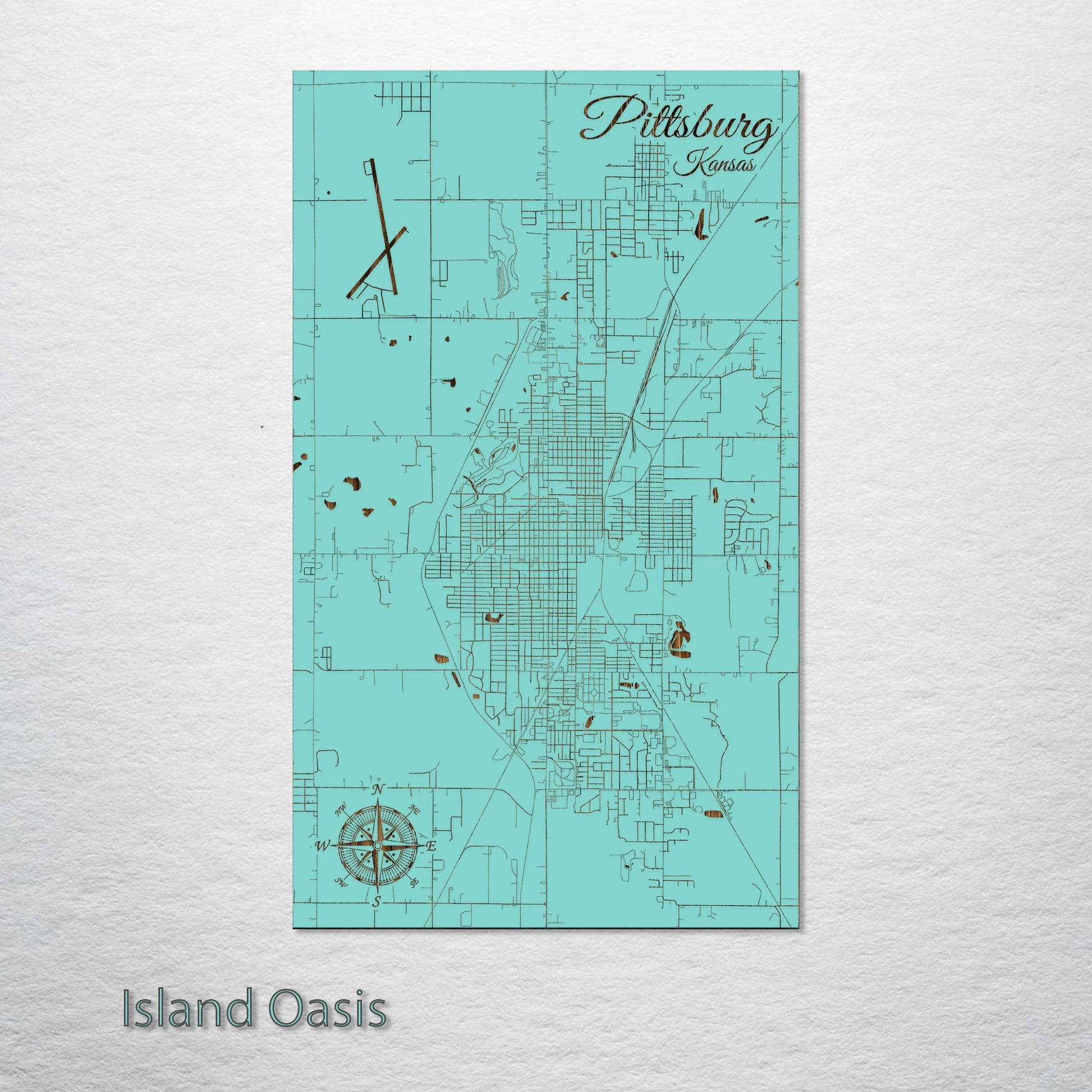 This is a street map of Pittsburg, KS designed by Fire & Pine artists.