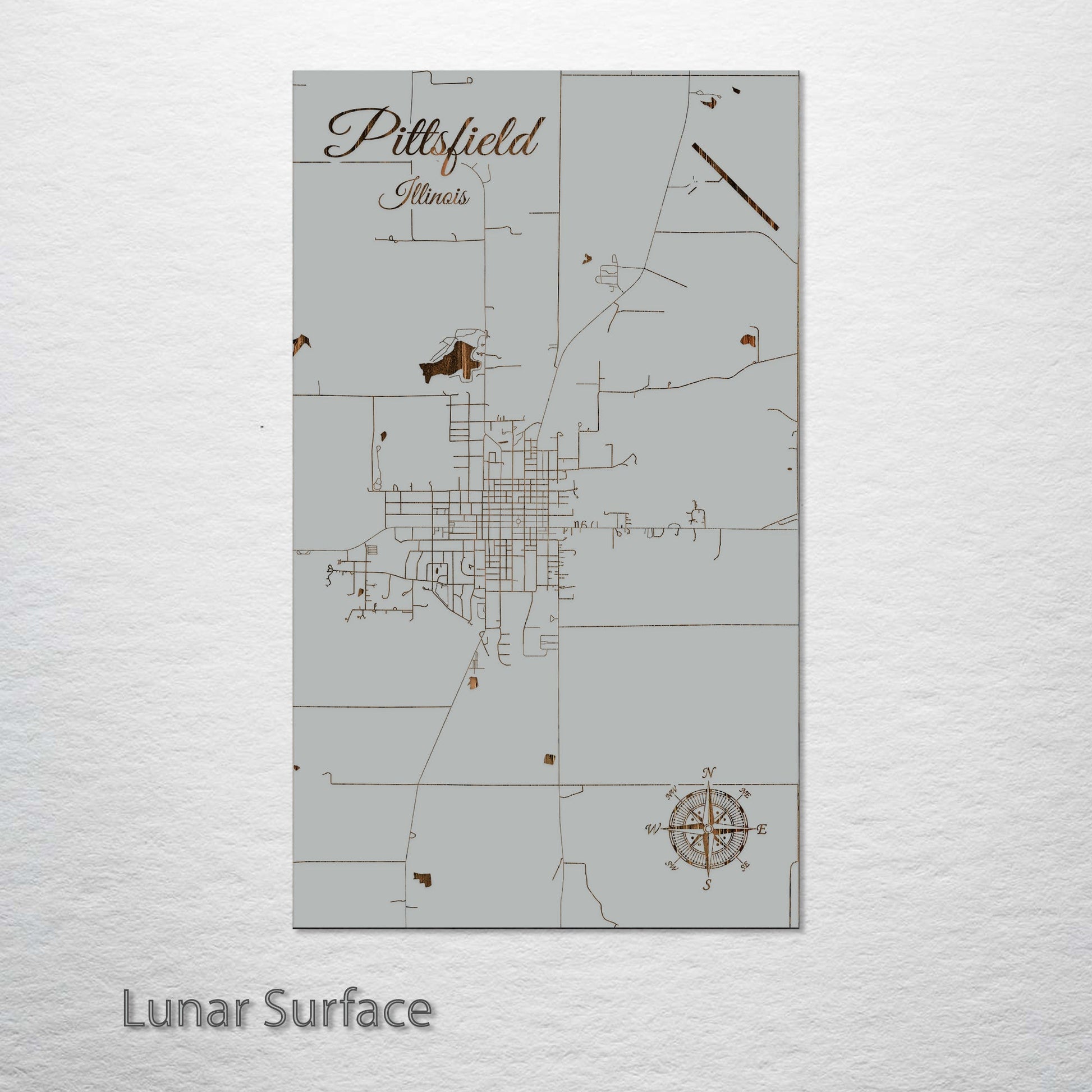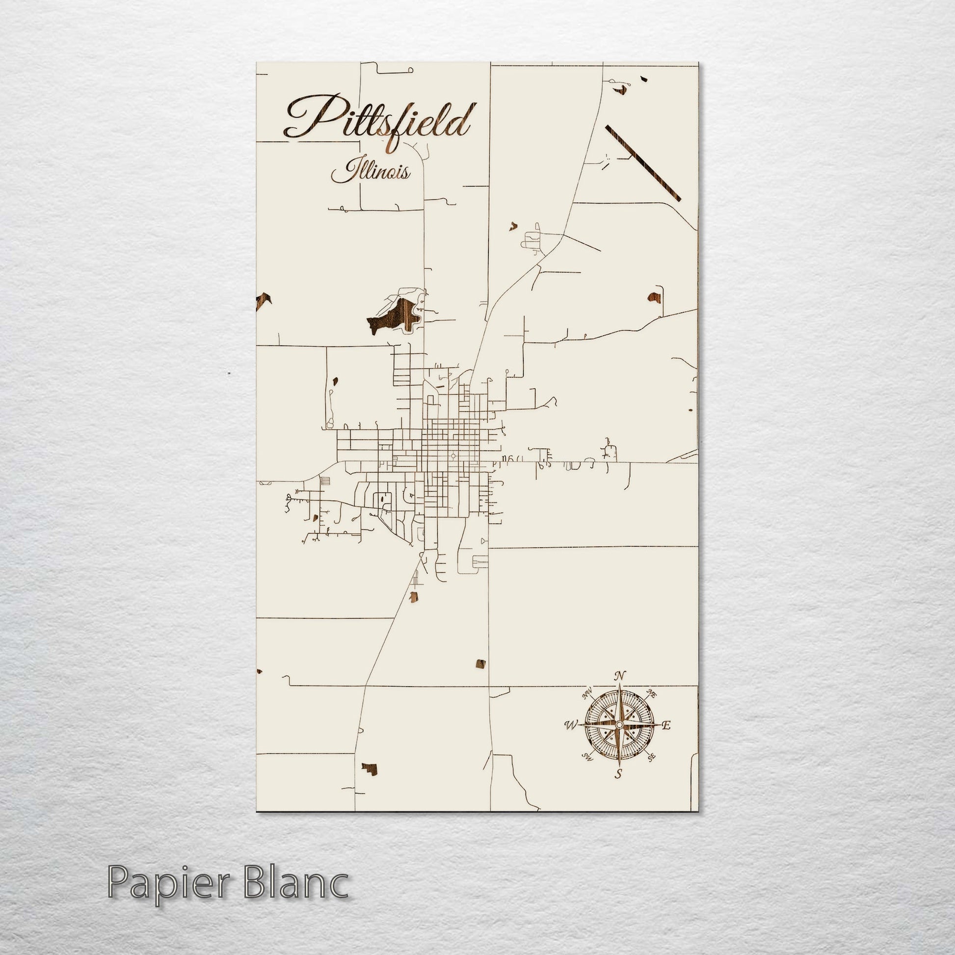 This is a street map of Pittsfield, IL designed by Fire & Pine artists.