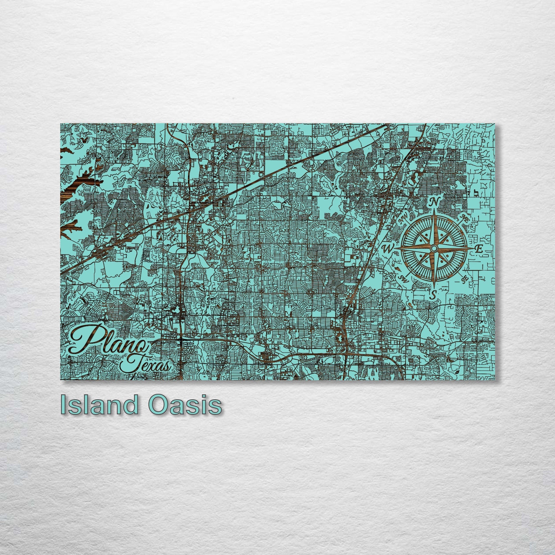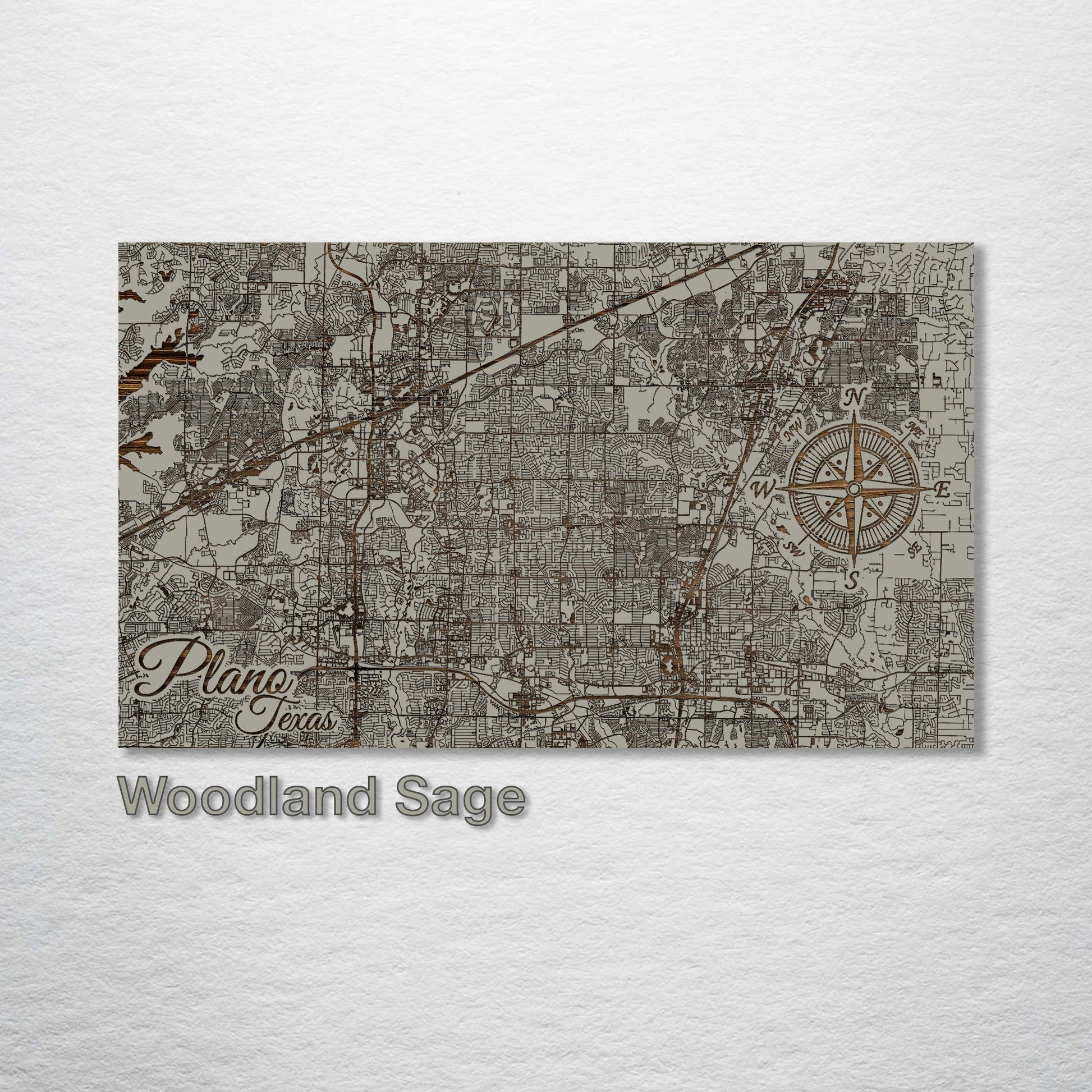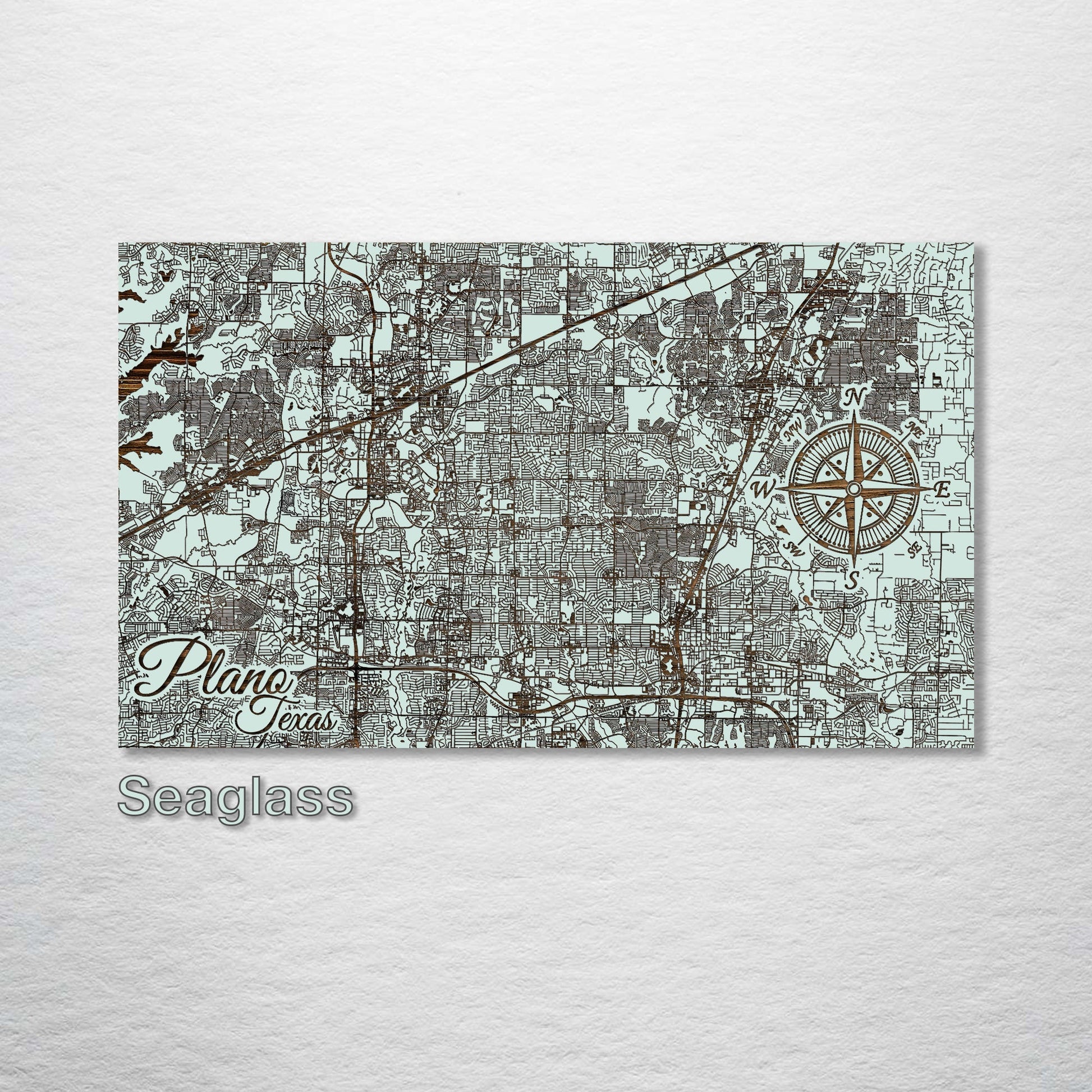 This Plano, Texas street map is engraved into high-quality pine wood. The detailed streets and landmarks make it an eye-catching piece for anyone interested in Plano or Texas geography.