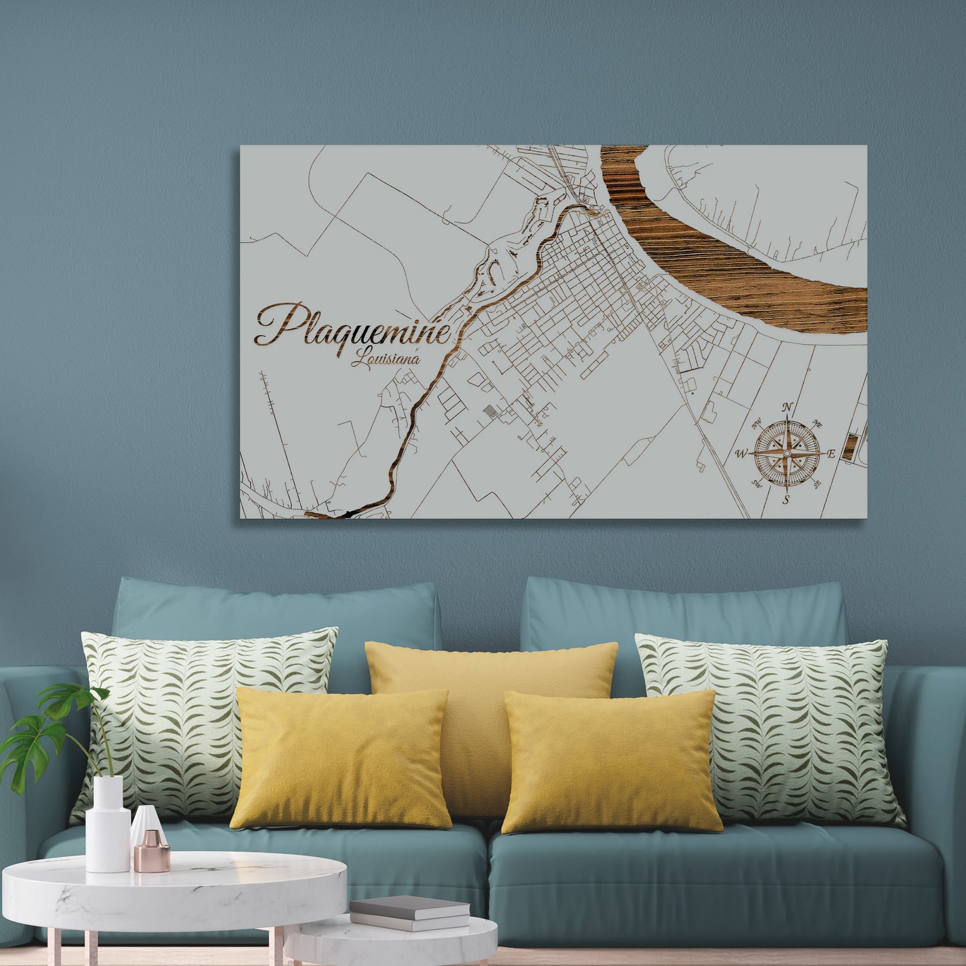 This is a street map of Plaquemine, LA designed by Fire & Pine artists.