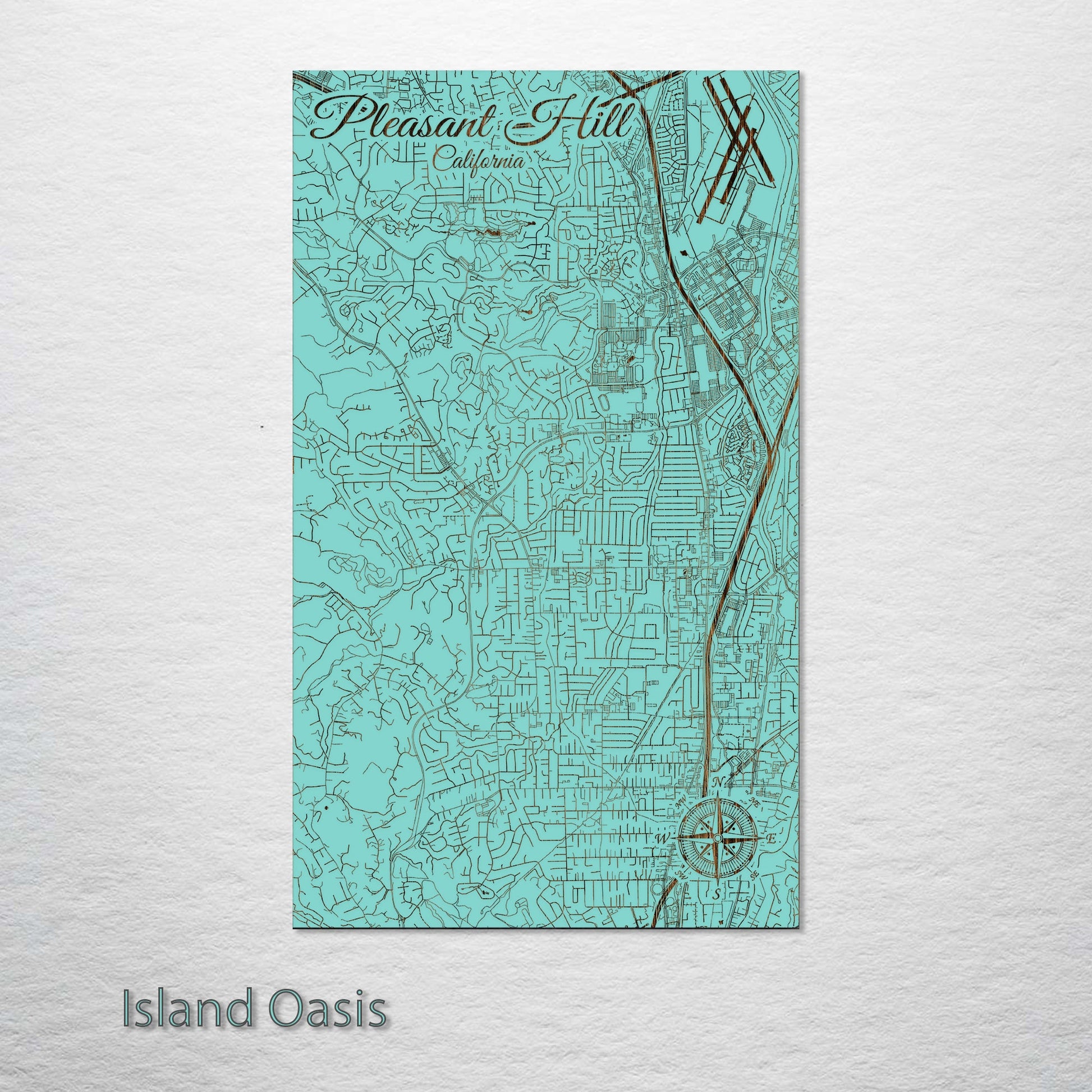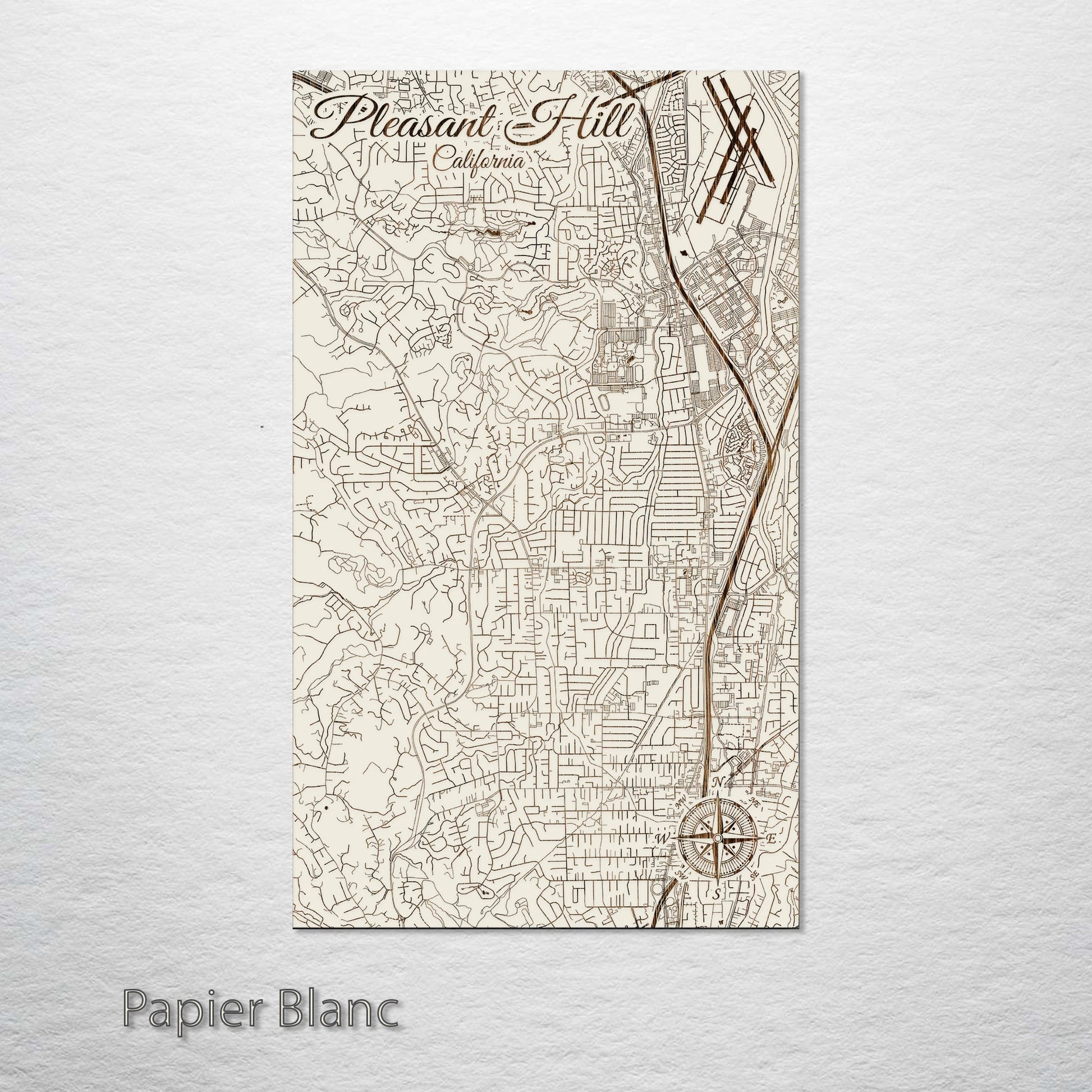 This wood-engraved wall art of Pleasant Hill, California is a unique and exceptional addition to any collector’s lineup. Crafted from high-quality pine wood, the intricate details are brought to life, making it a standout piece. Ideal for anyone interested in geography, cartography, or history.