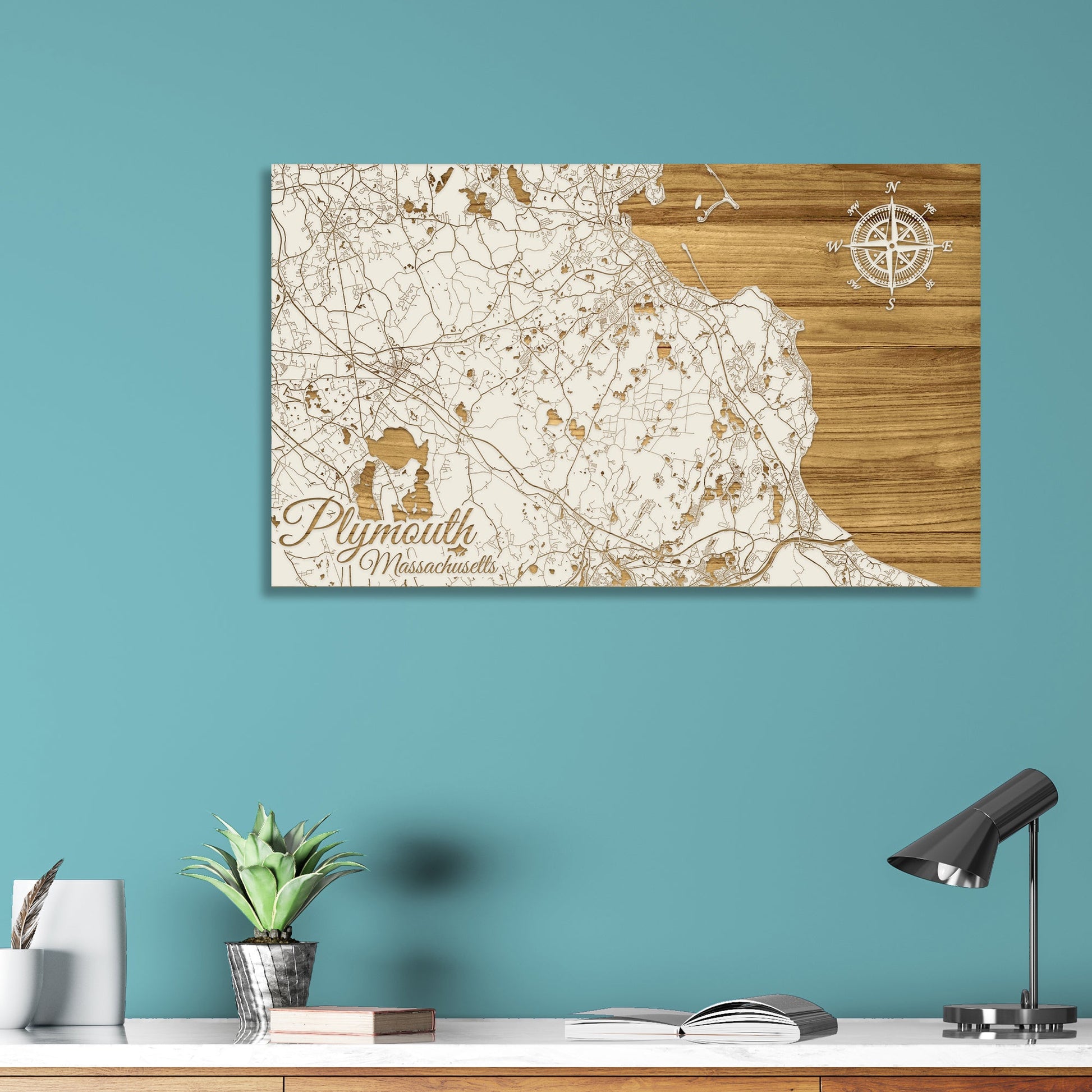 This handcrafted wood map of Plymouth, Massachusetts is more than just wall art — it’s a tribute to the birthplace of American freedom. Every street, shoreline, and historic district is carefully engraved into solid pine, giving life to a town known for its deep roots and coastal beauty. Whether you're a longtime resident or just a fan of New England charm, this piece brings a touch of Plymouth’s spirit right into your home.