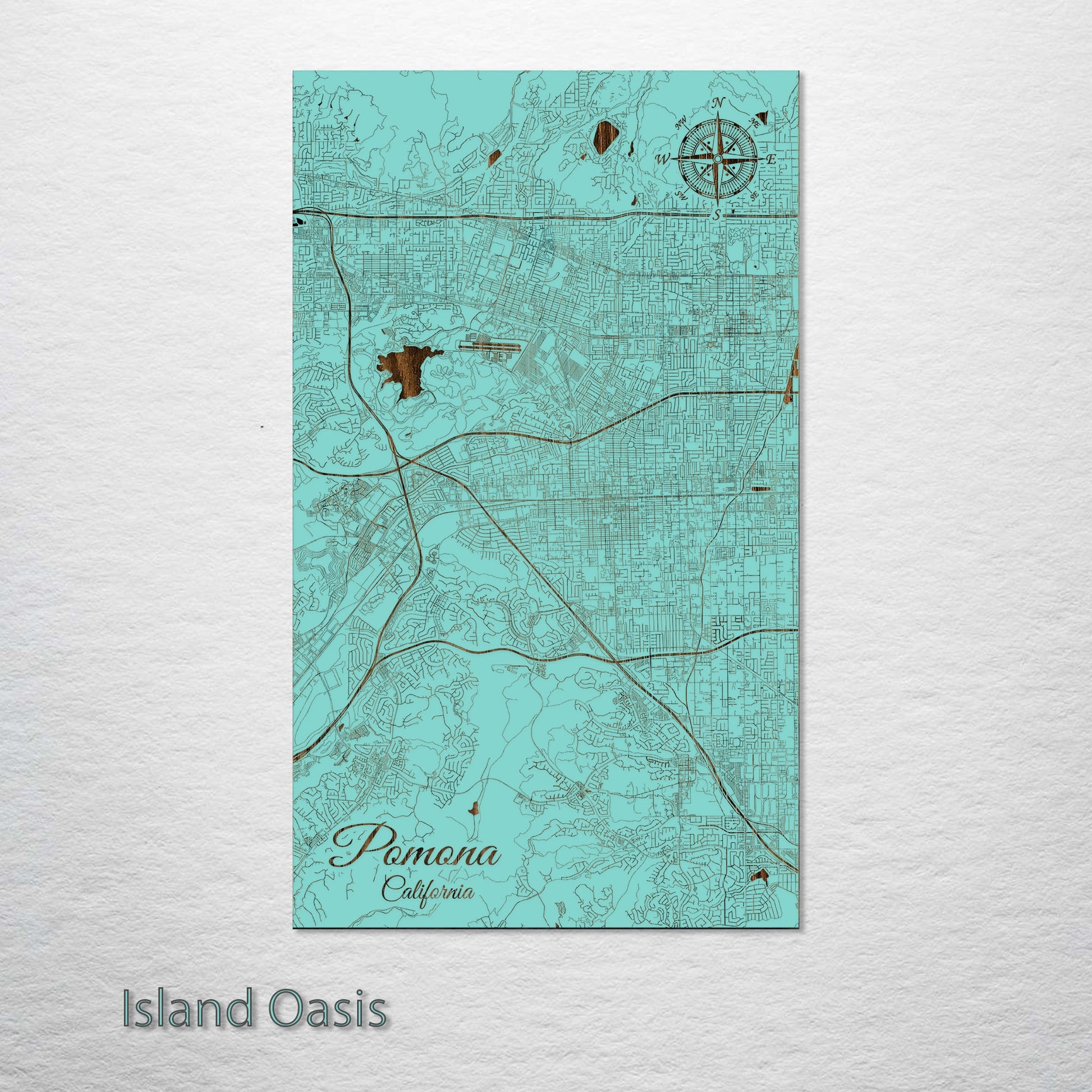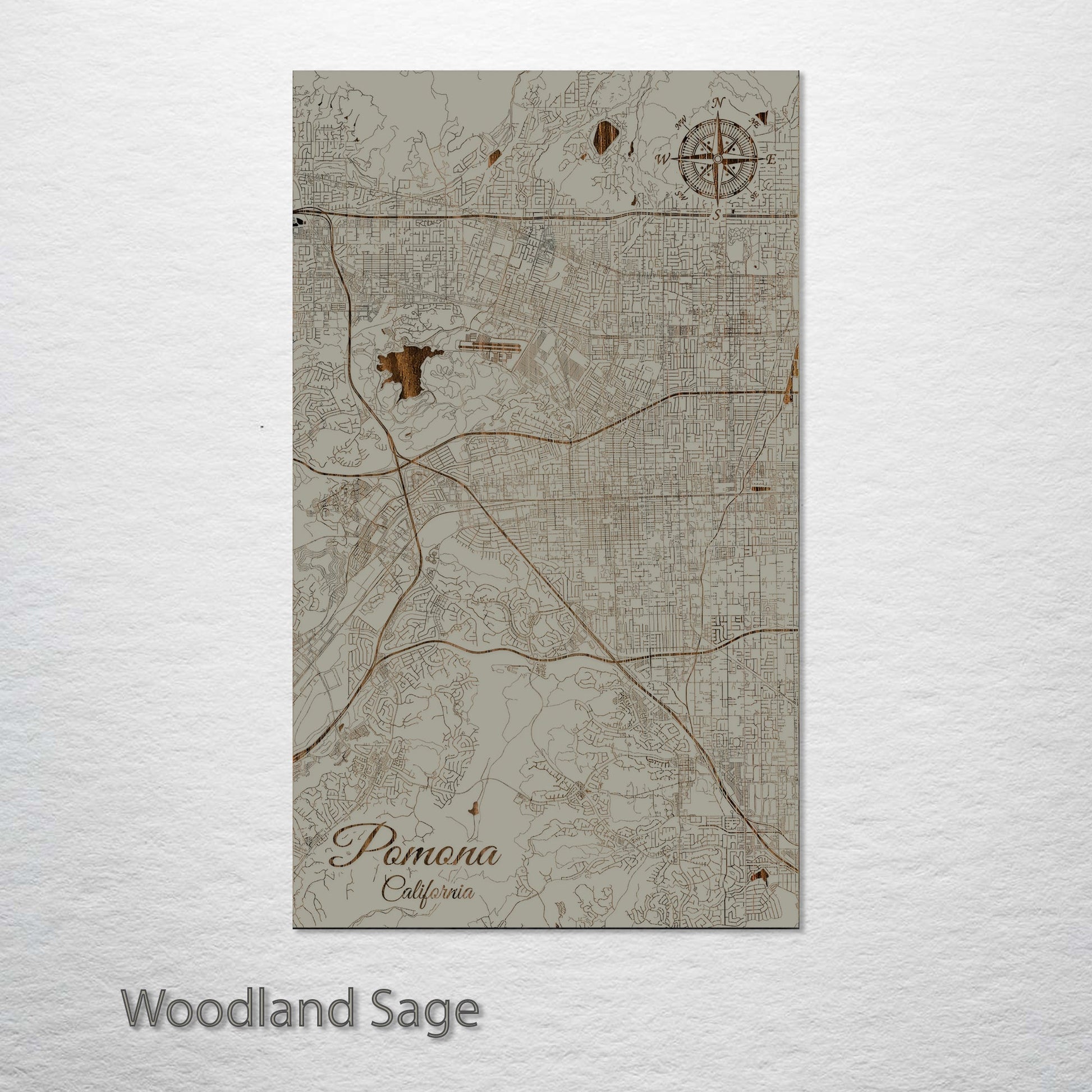 This is a street map of Pomona, CA designed by Fire & Pine artists.