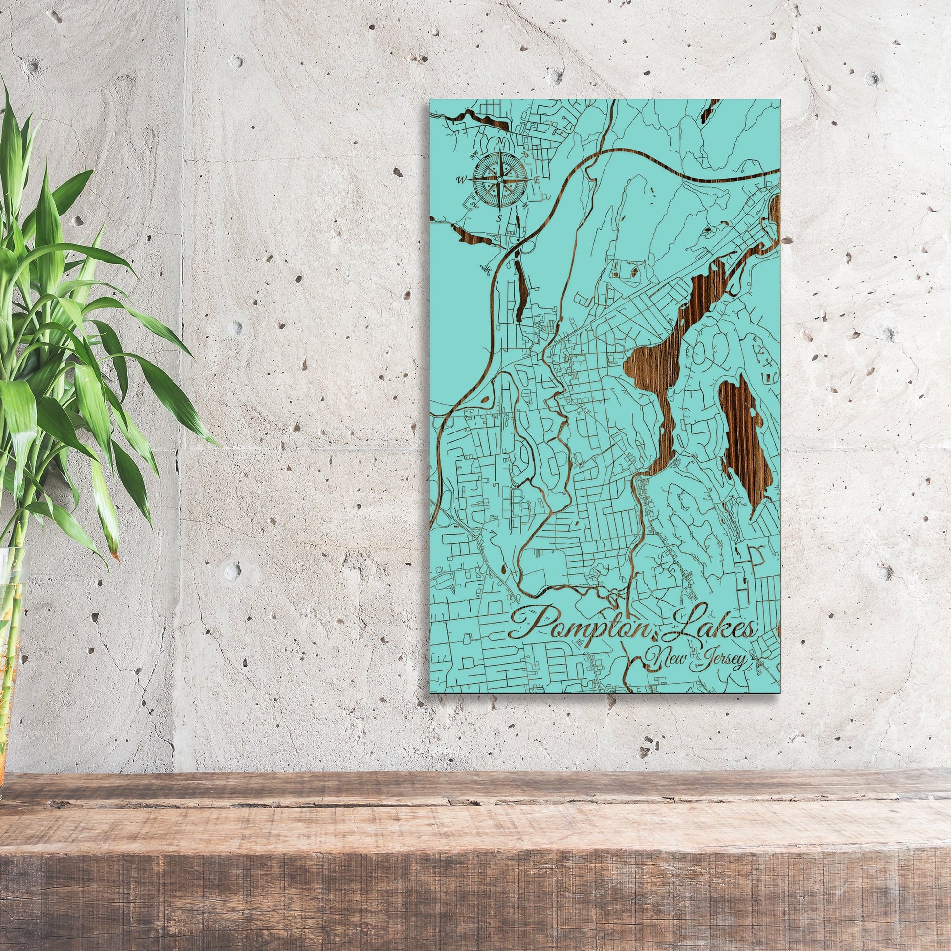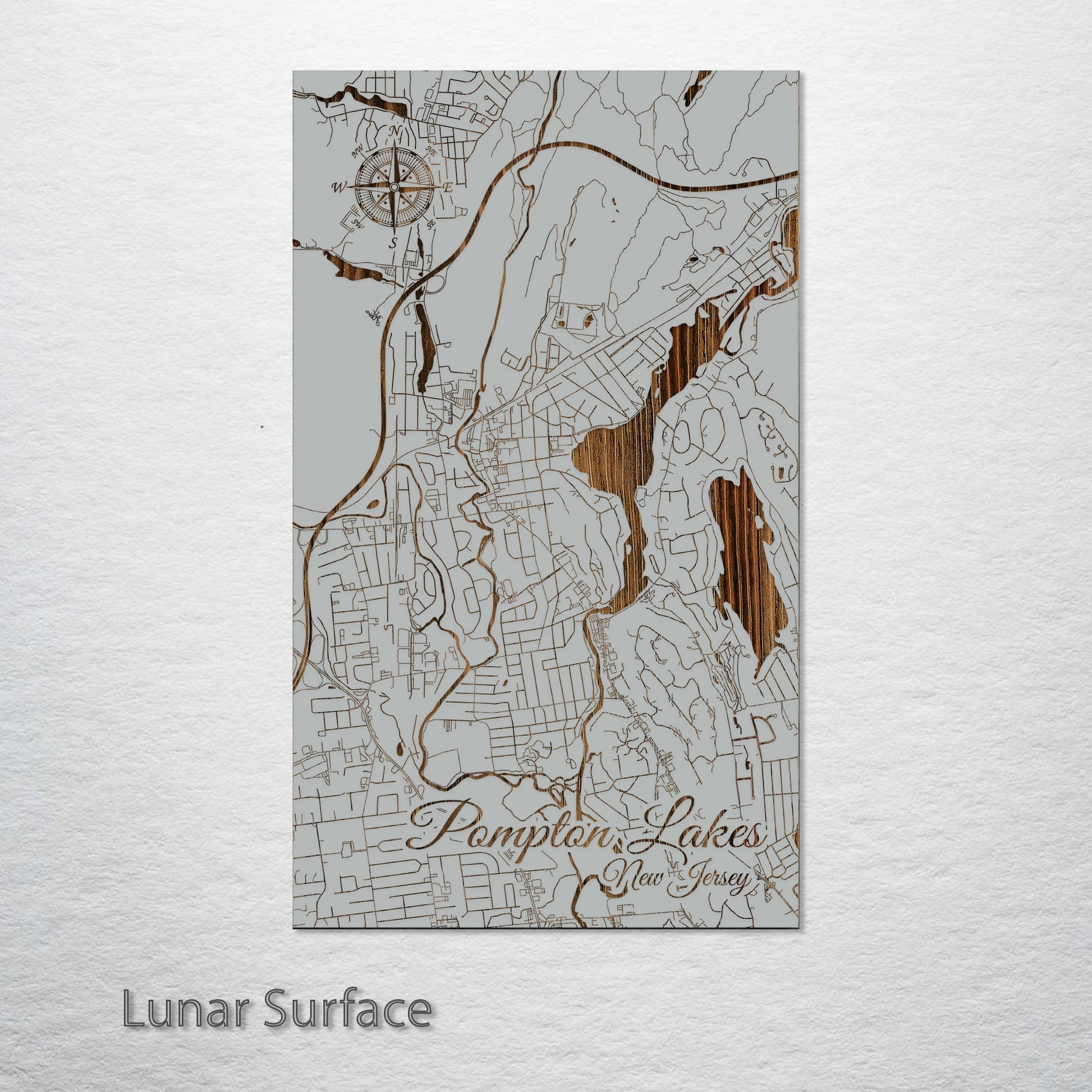 This is a street map of Pompton Lakes, NJ designed by Fire & Pine artists.