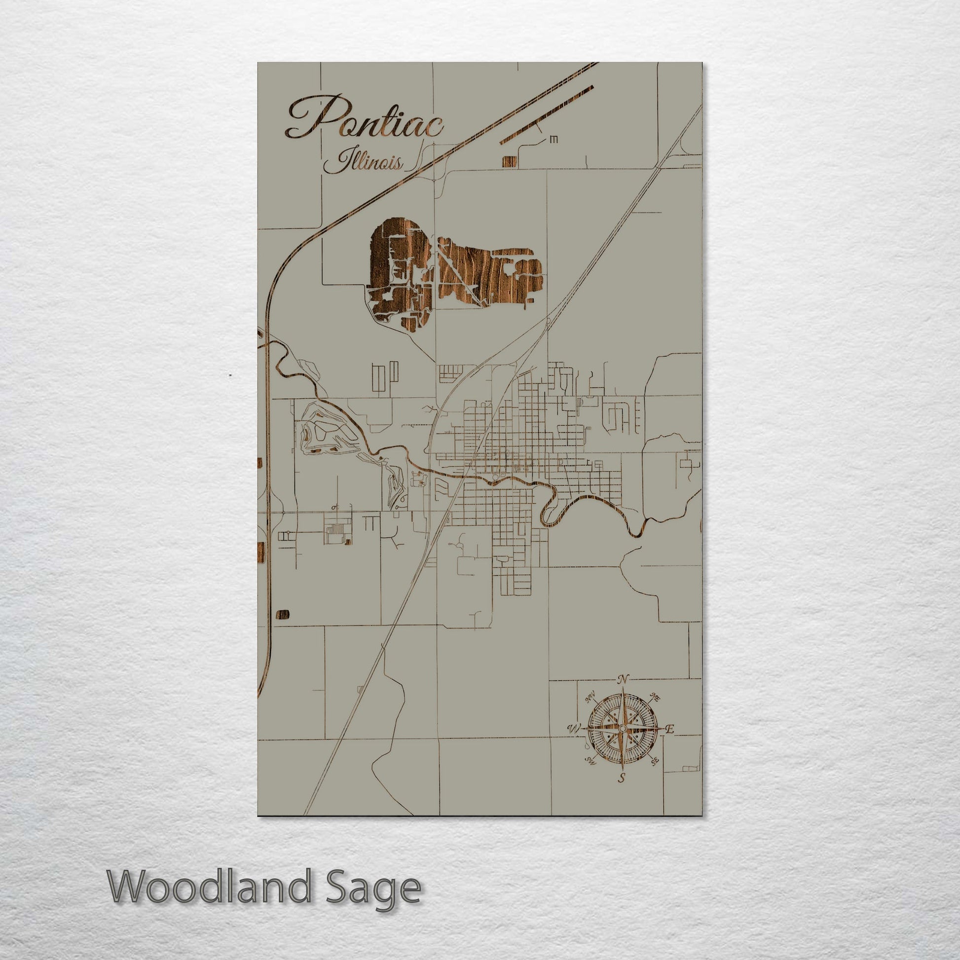 This is a street map of Pontiac, IL designed by Fire & Pine artists.