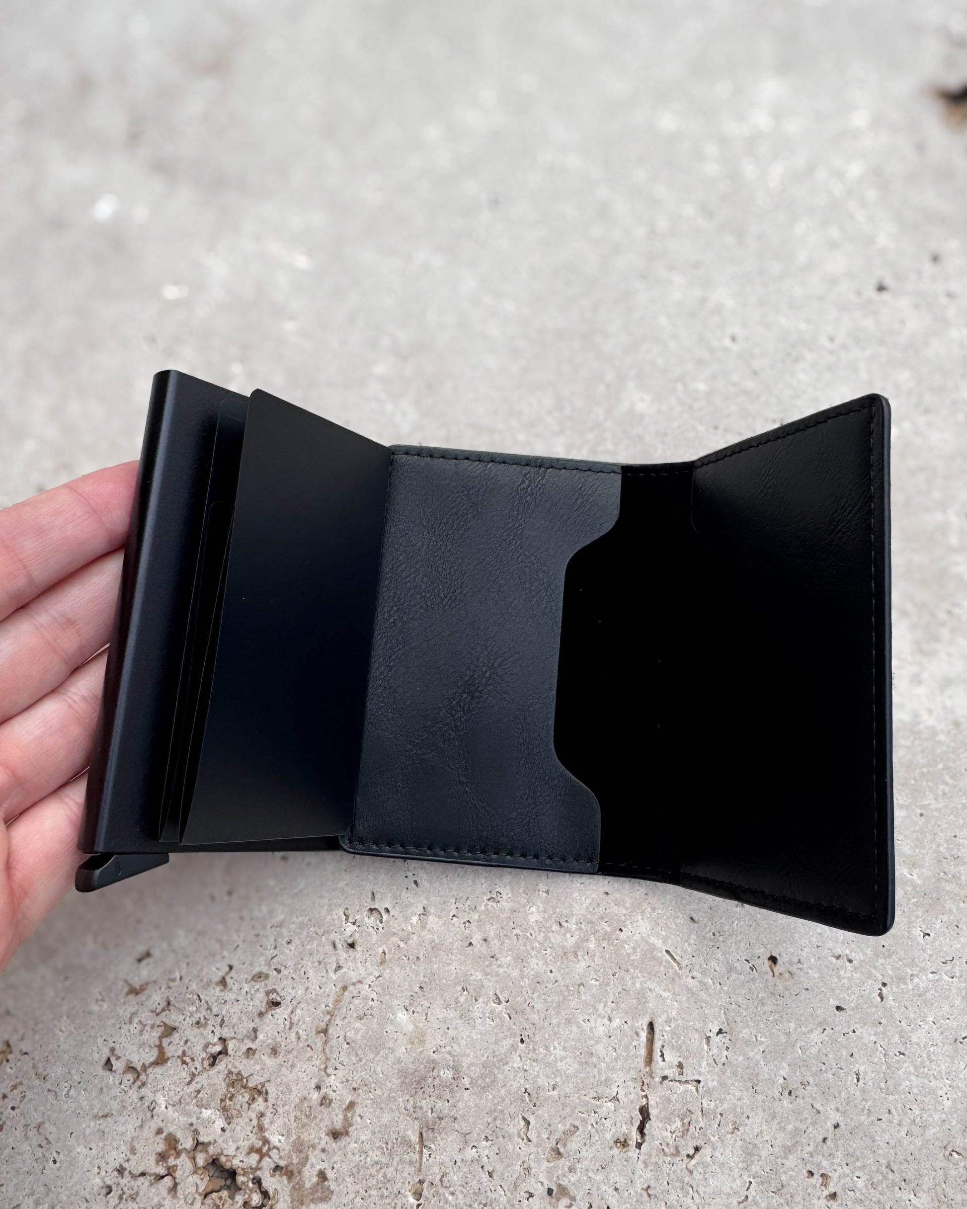 Our Pop-Up wallet combines functionality with design. Featuring RFID-blocking technology, this wallet ensures your credit card information stays safe. The main cardholder is crafted from an aluminium shell for magnetic shielding, offering durable protection.