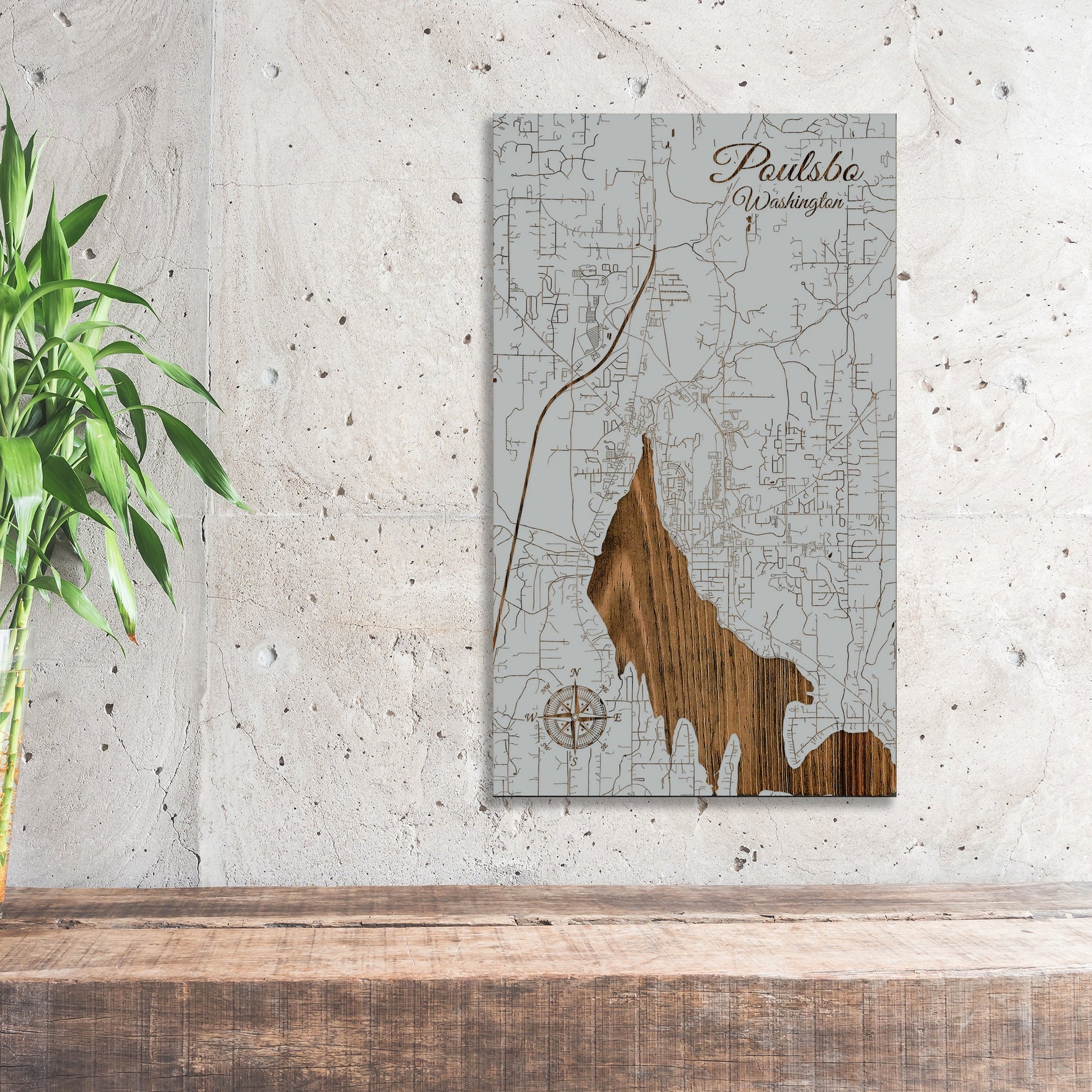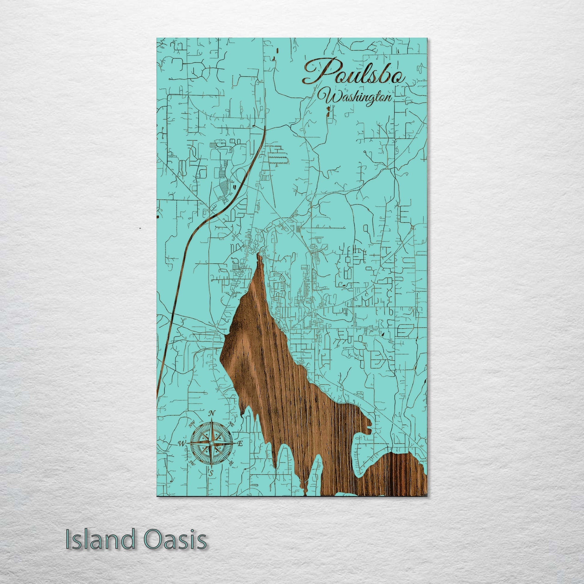 This is a street map of Poulsbo, WA designed by Fire & Pine artists.