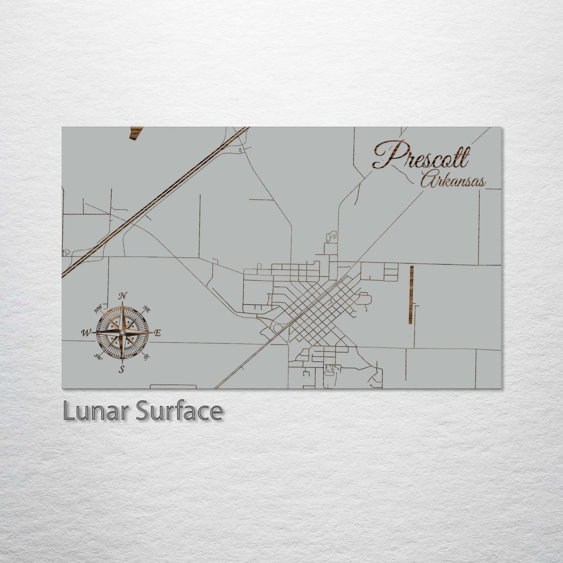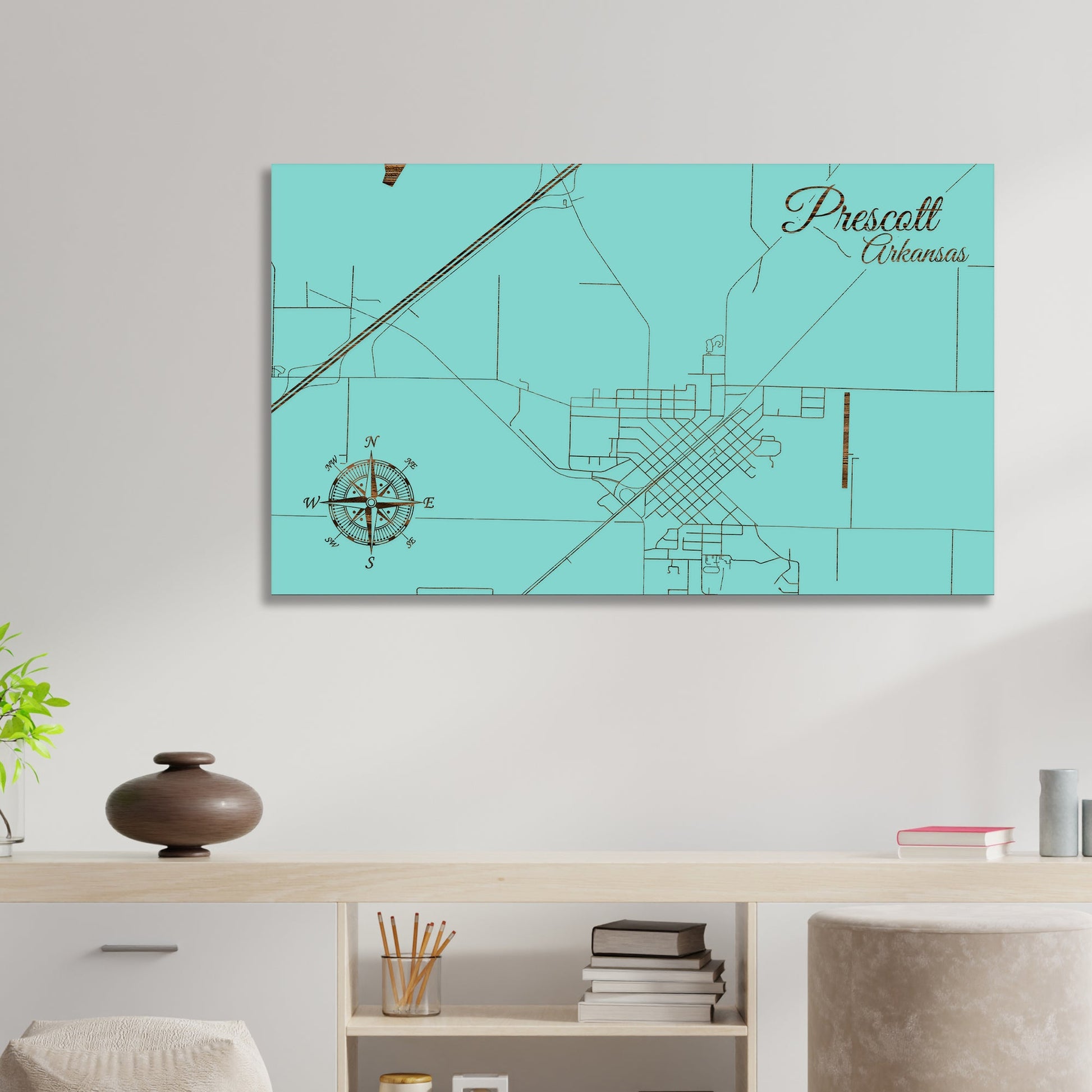 This is a street map of Prescott, AR designed by Fire & Pine artists.