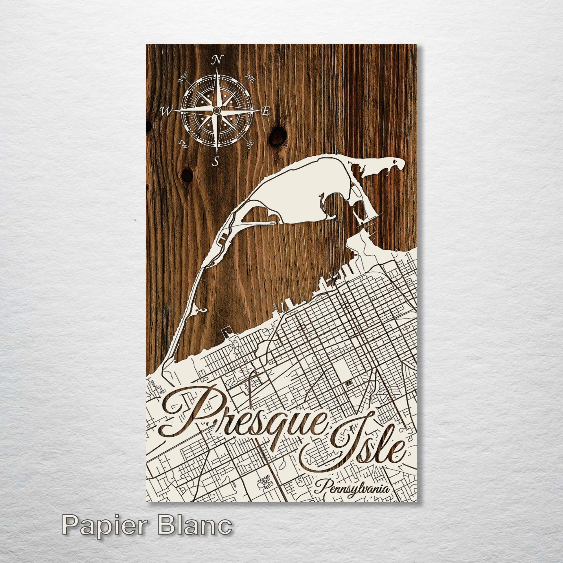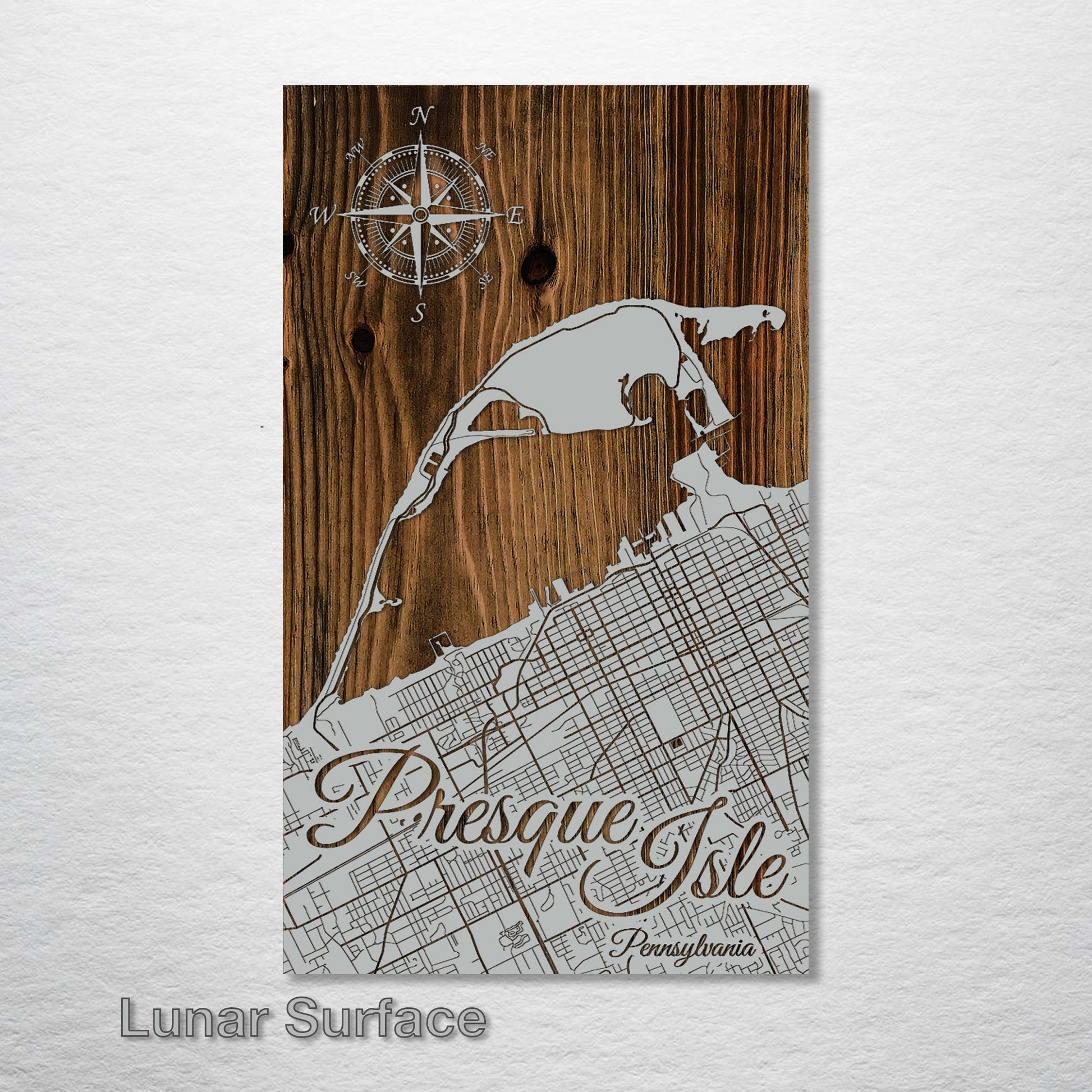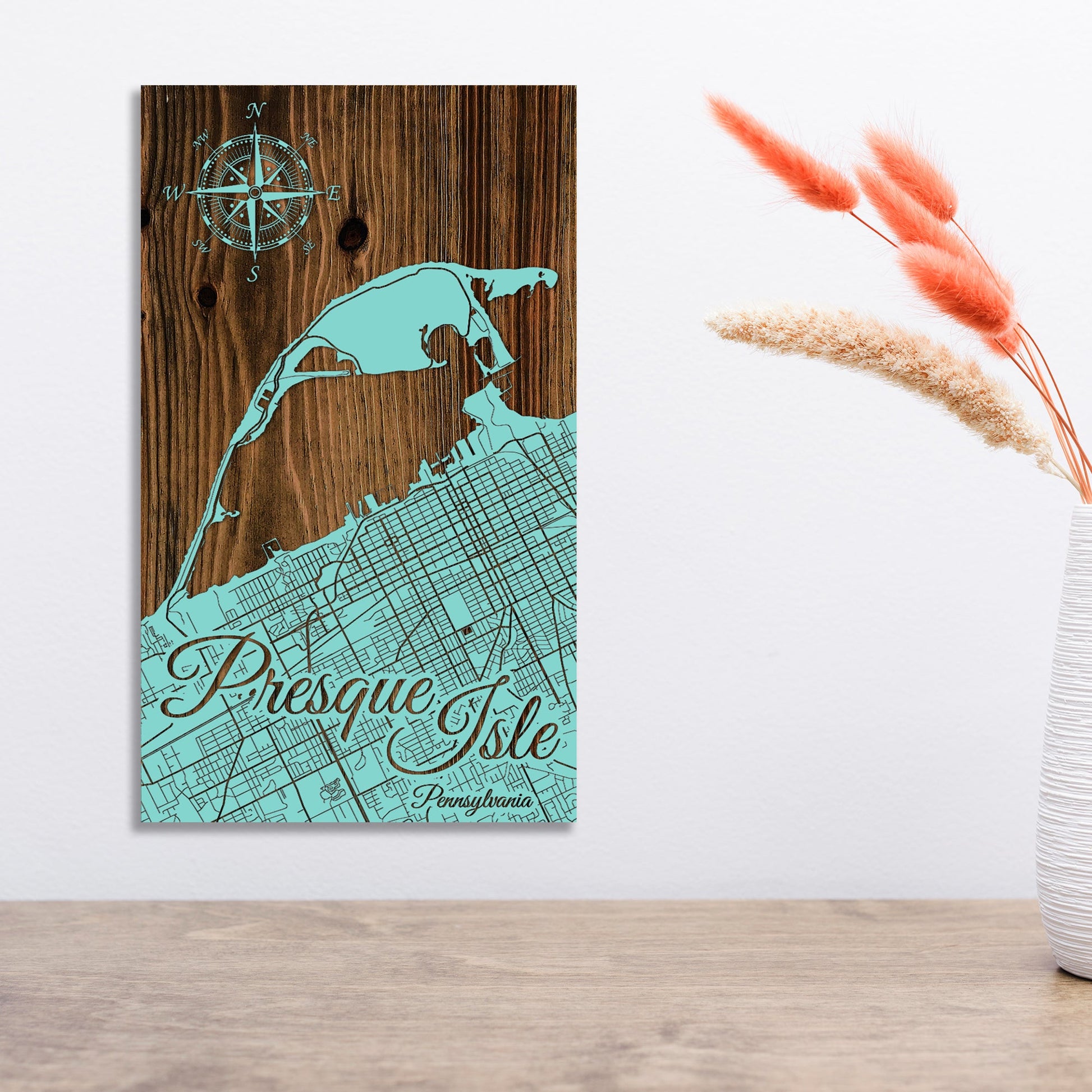 Unique Gift for Presque Isle Admirers and Map Collectors: Introducing our expertly wood-engraved Presque Isle, Pennsylvania Street Map, an impeccable addition to any collector’s array. Crafted from superior quality pine wood, this wall art highlights the intricate street layout of Presque Isle with striking detail, making it an ideal piece for those who have a deep appreciation for detailed maps or a fond connection to Presque Isle.