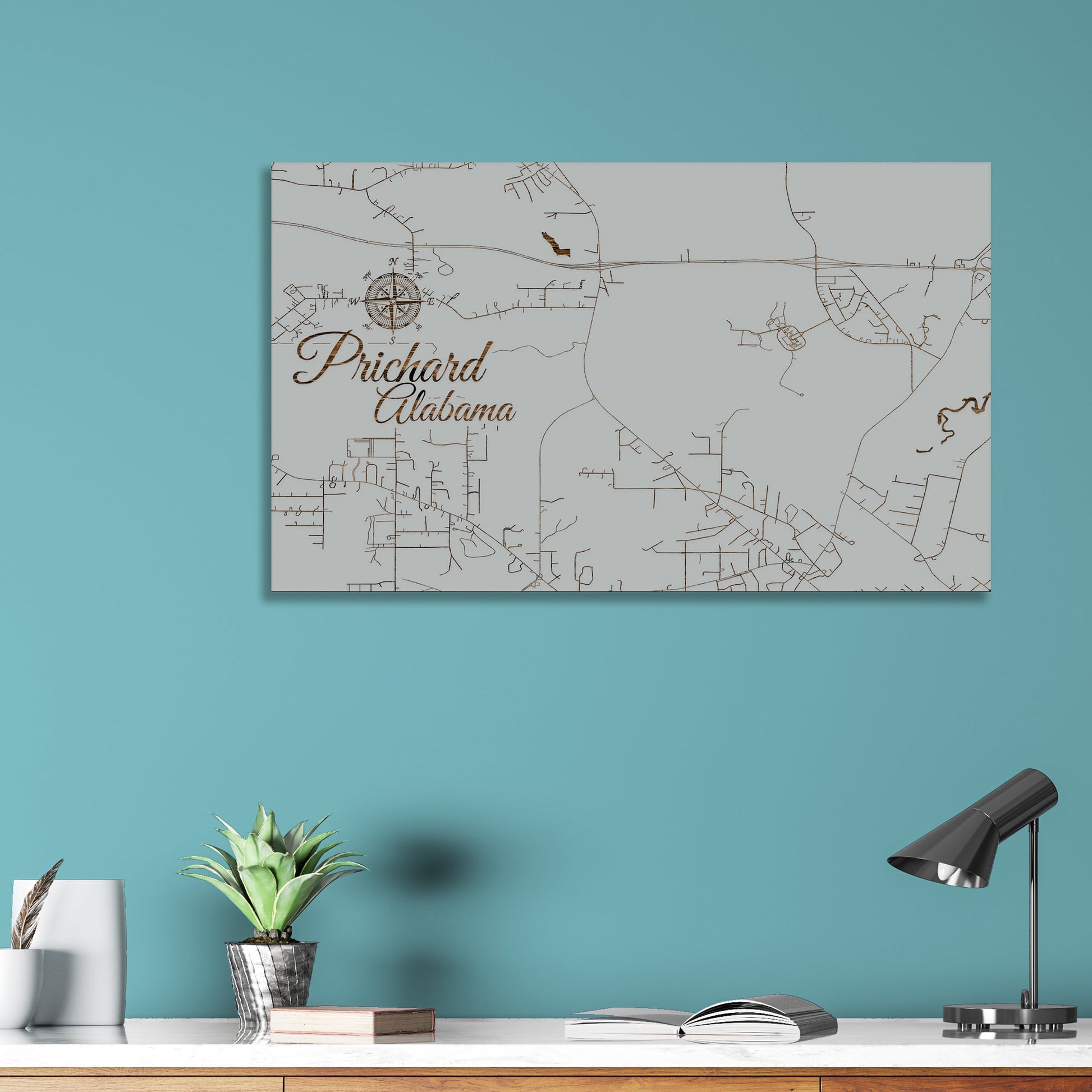 This is a street map of Prichard, AL designed by Fire & Pine artists.