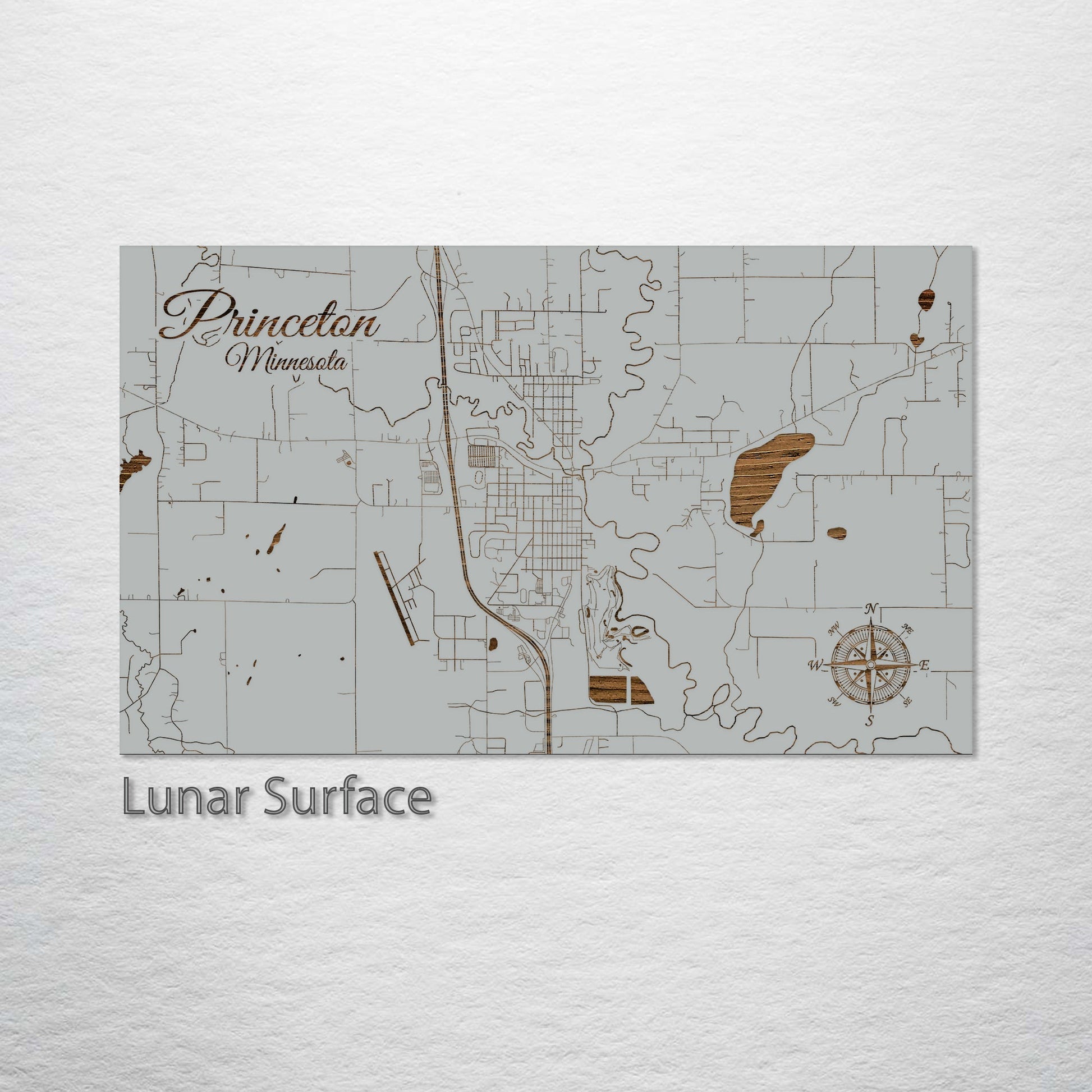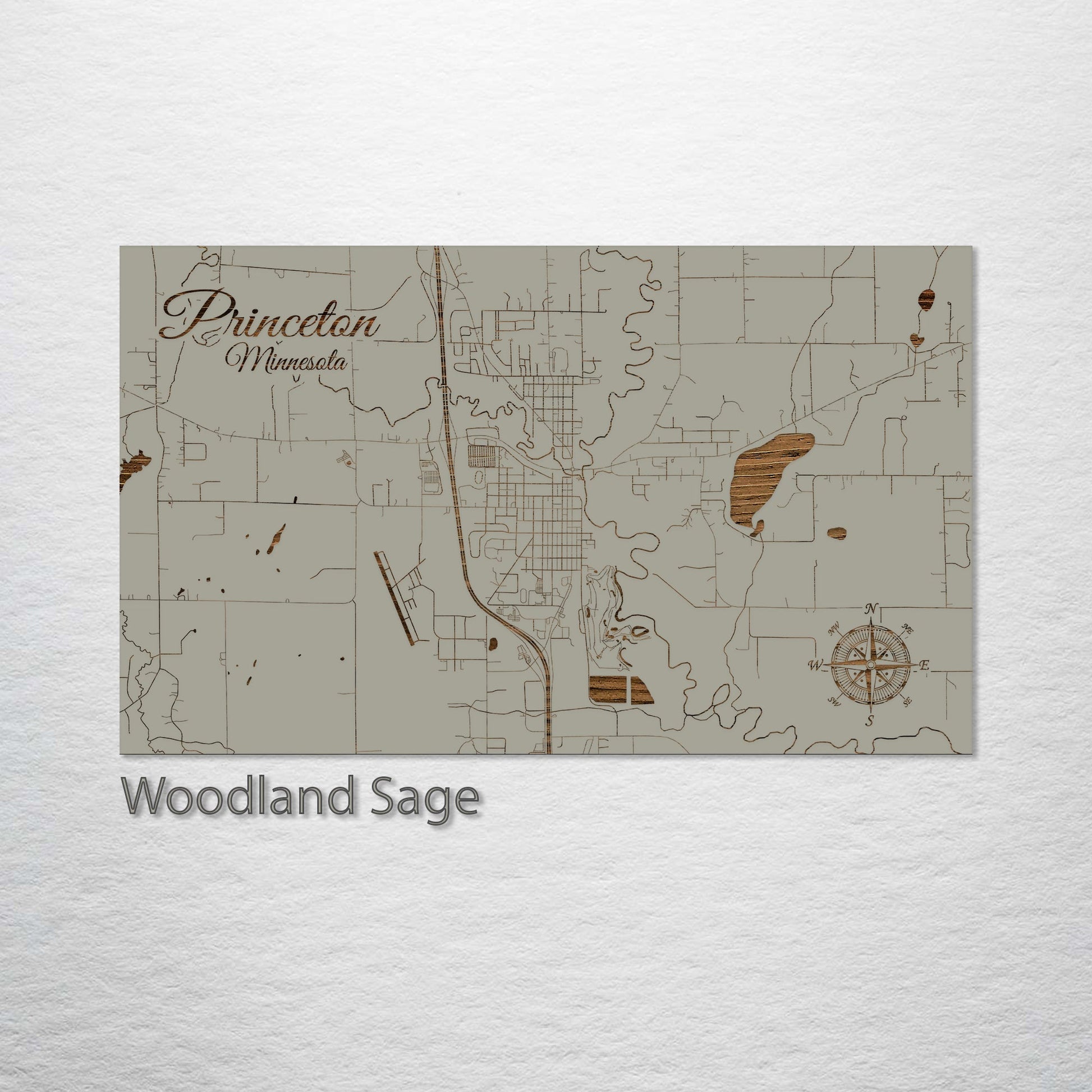 This is a street map of Princeton, MN designed by Fire & Pine artists.