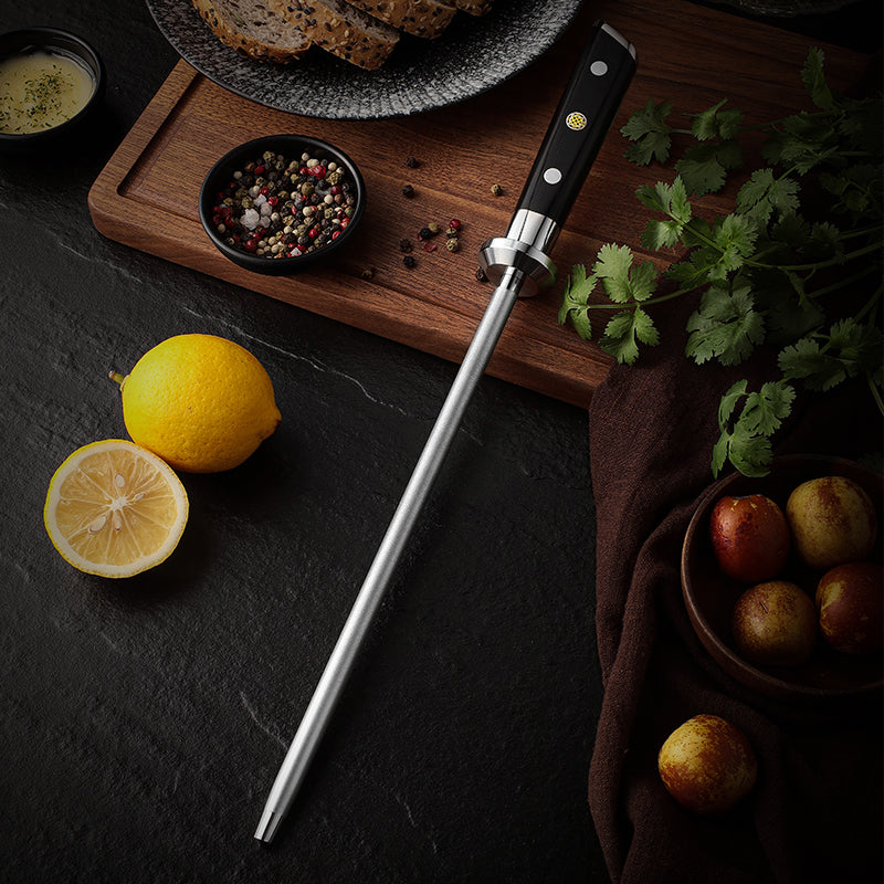 Premium German Stainless Steel: At the core of our sharpener is a 10-inch rod, made from high-grade German stainless steel, renowned for its durability and resistance to corrosion. This ensures your knives will be honed to a razor-sharp edge, time after time.