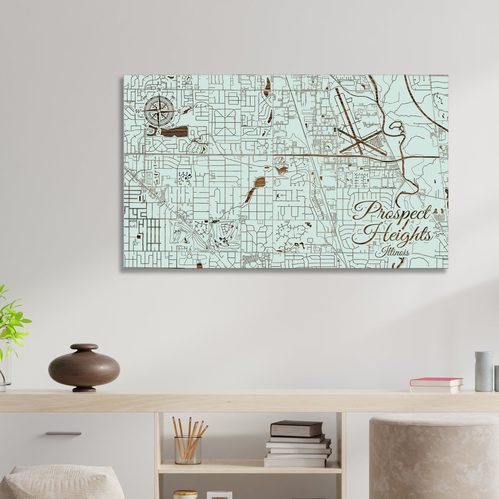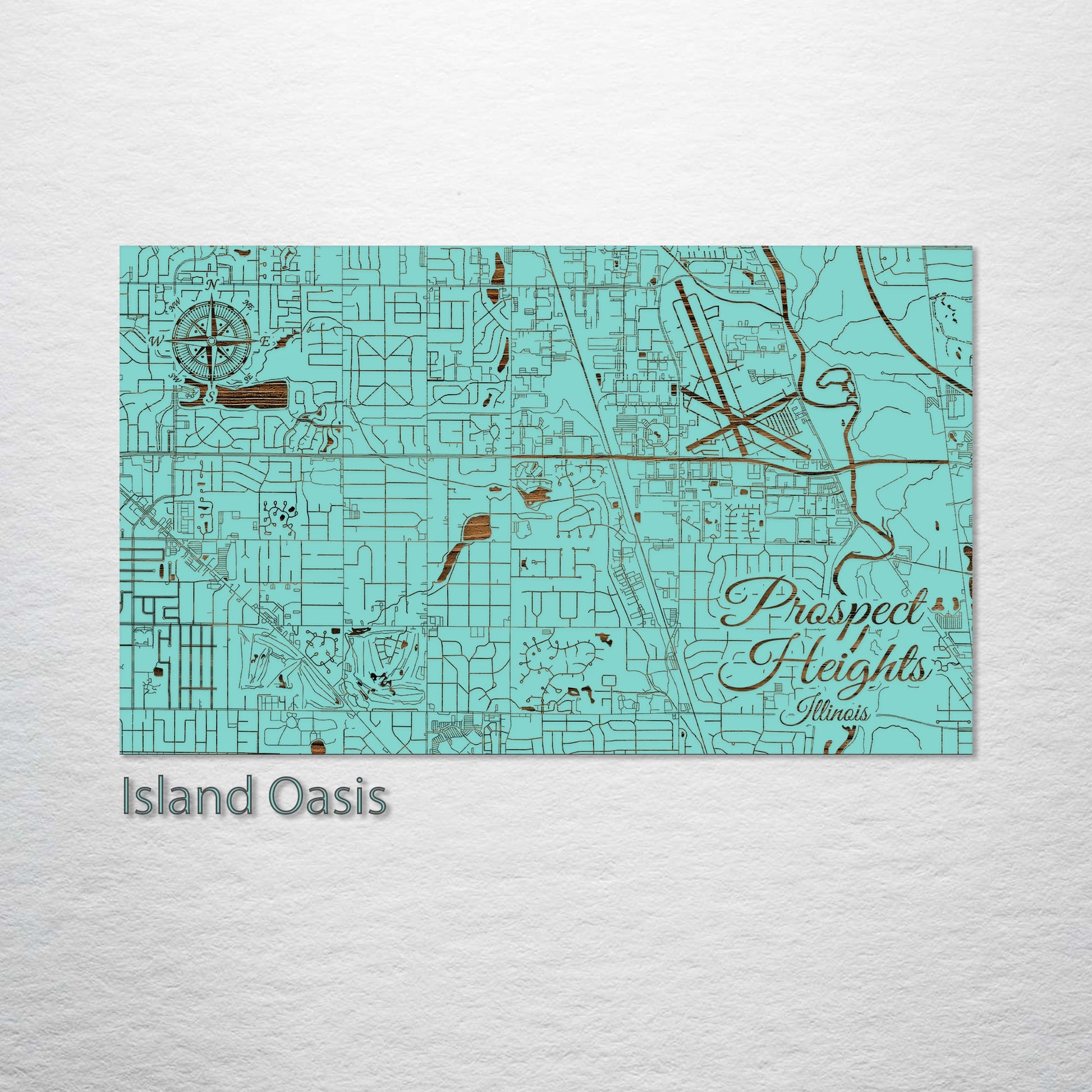 This is a street map of Prospect Heights, IL designed by Fire & Pine artists.