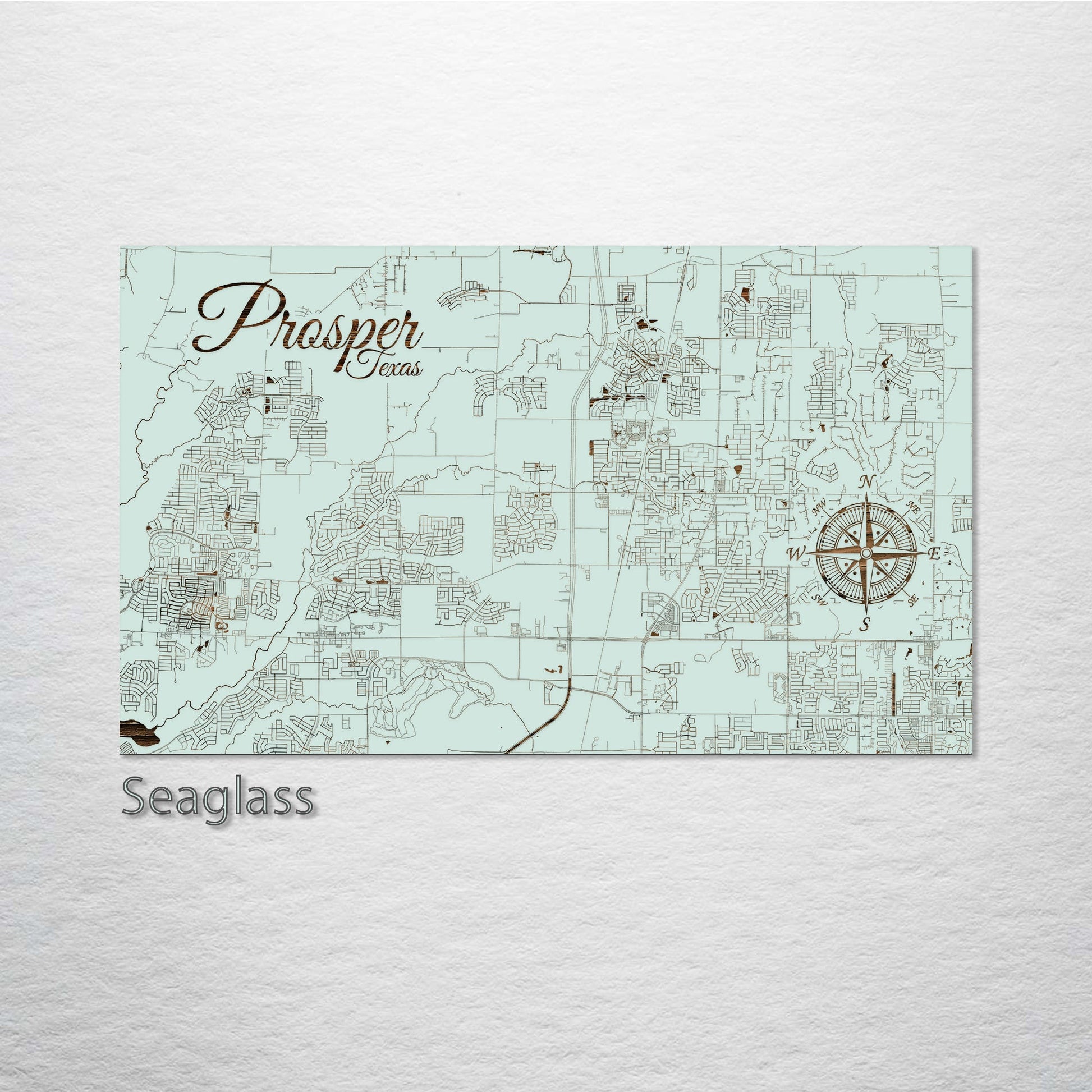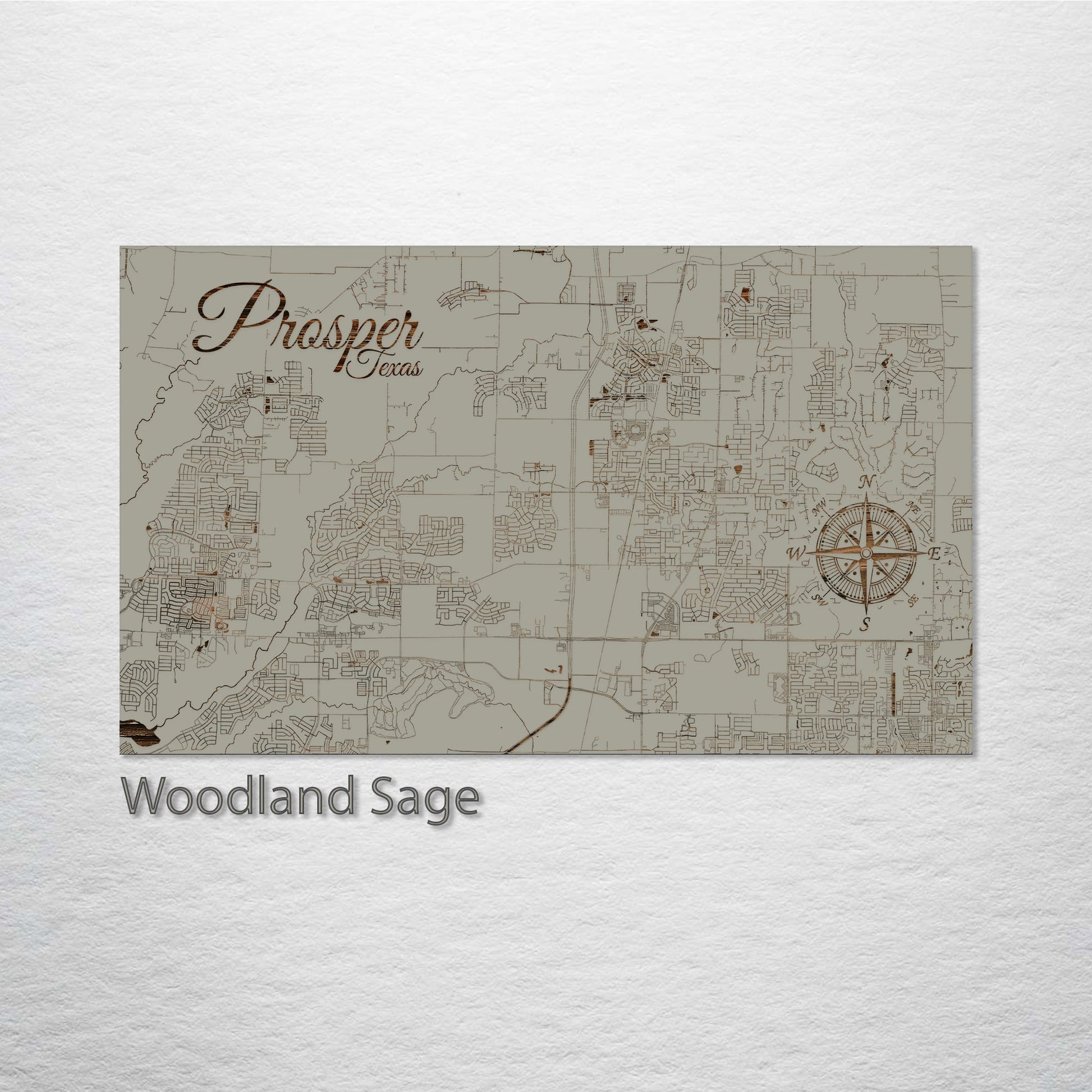 Transform your living space with this detailed wood-engraved street map of Prosper, Texas. Ideal for cartography enthusiasts, Texas culture aficionados, and those interested in distinctive home accents. Made from high-quality pine wood, this map merges functionality with style.