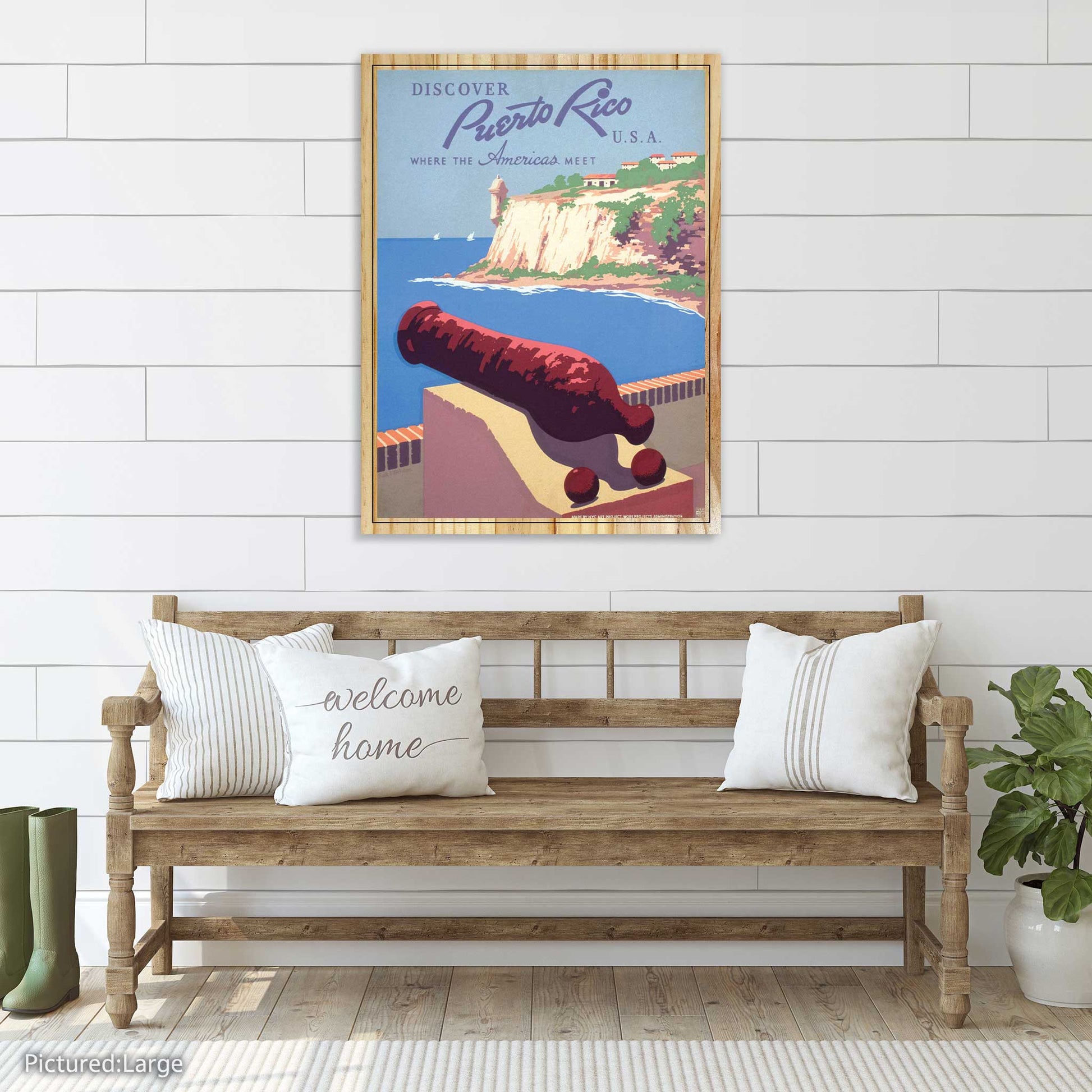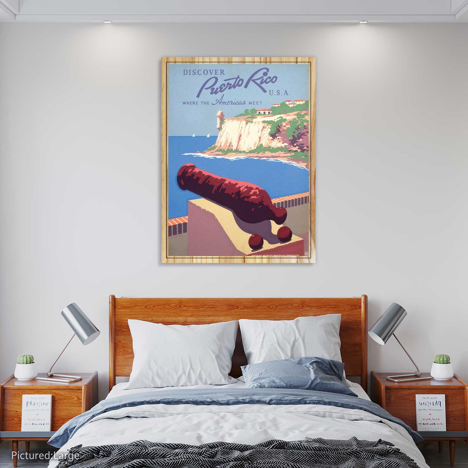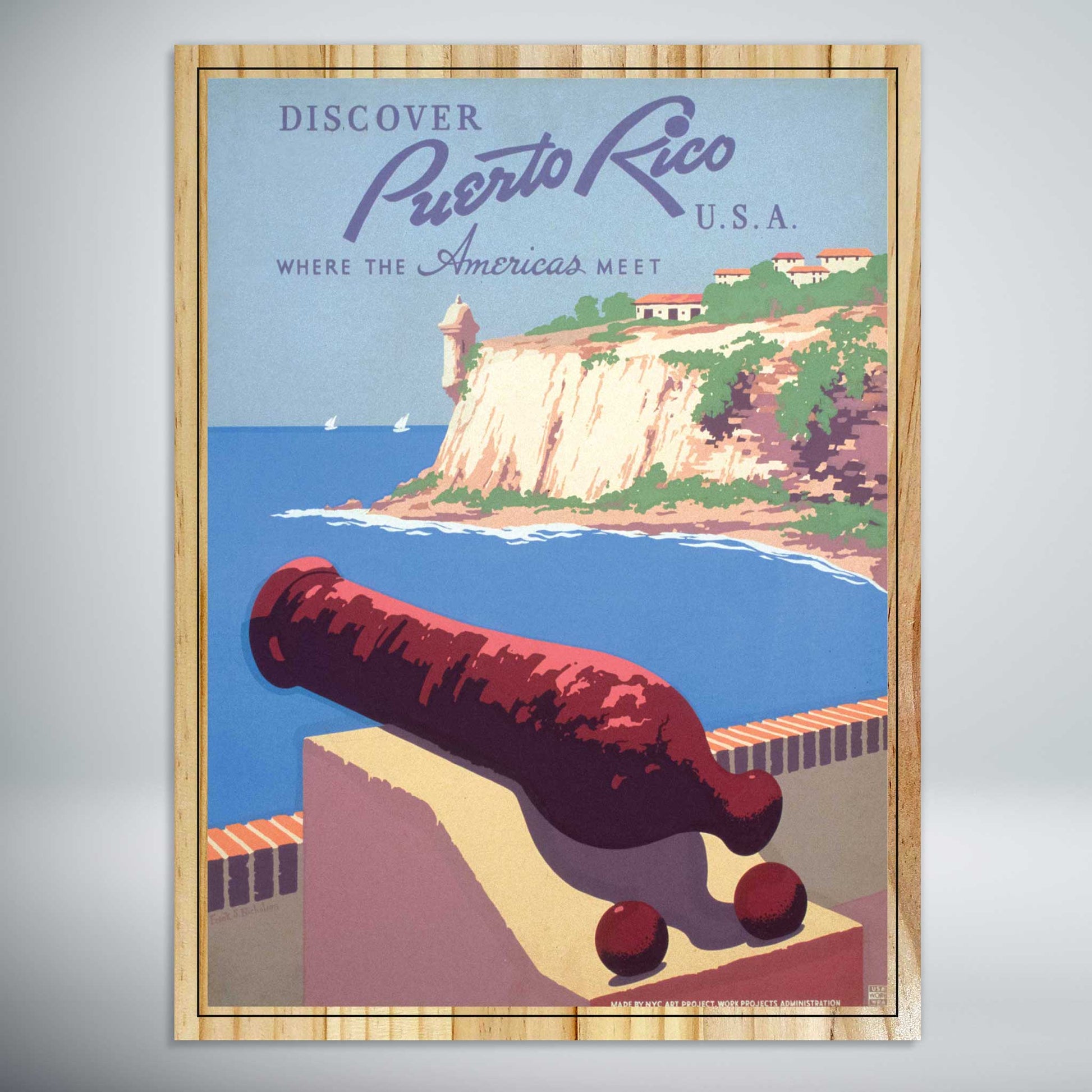 This beautiful travel poster vintage of Puerto Rico is perfect for any home or office. Printed on real pine wood, you can choose between an elevated or flat print to best suit your style. Bring the Americas to your home with this stunning Puerto Rico print.