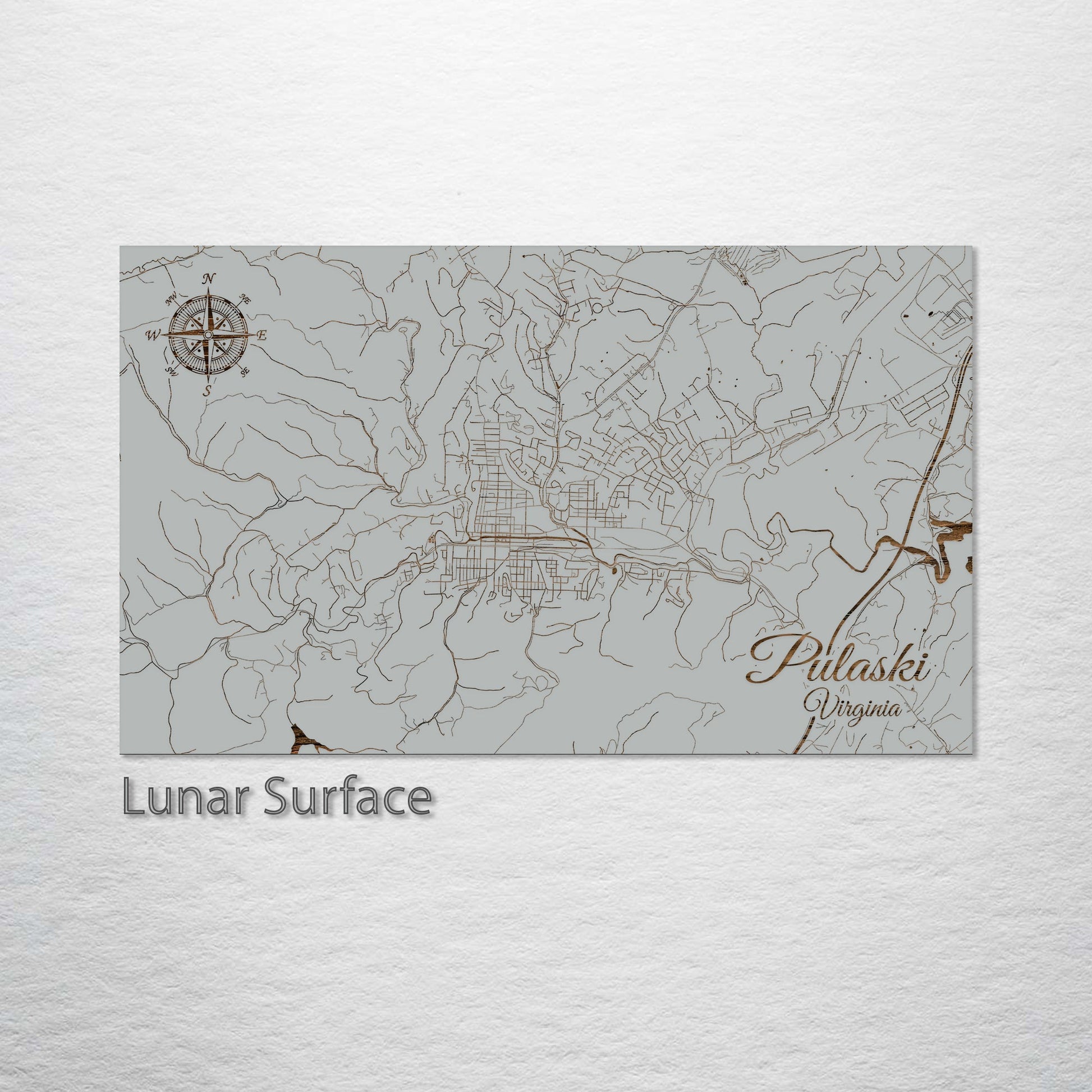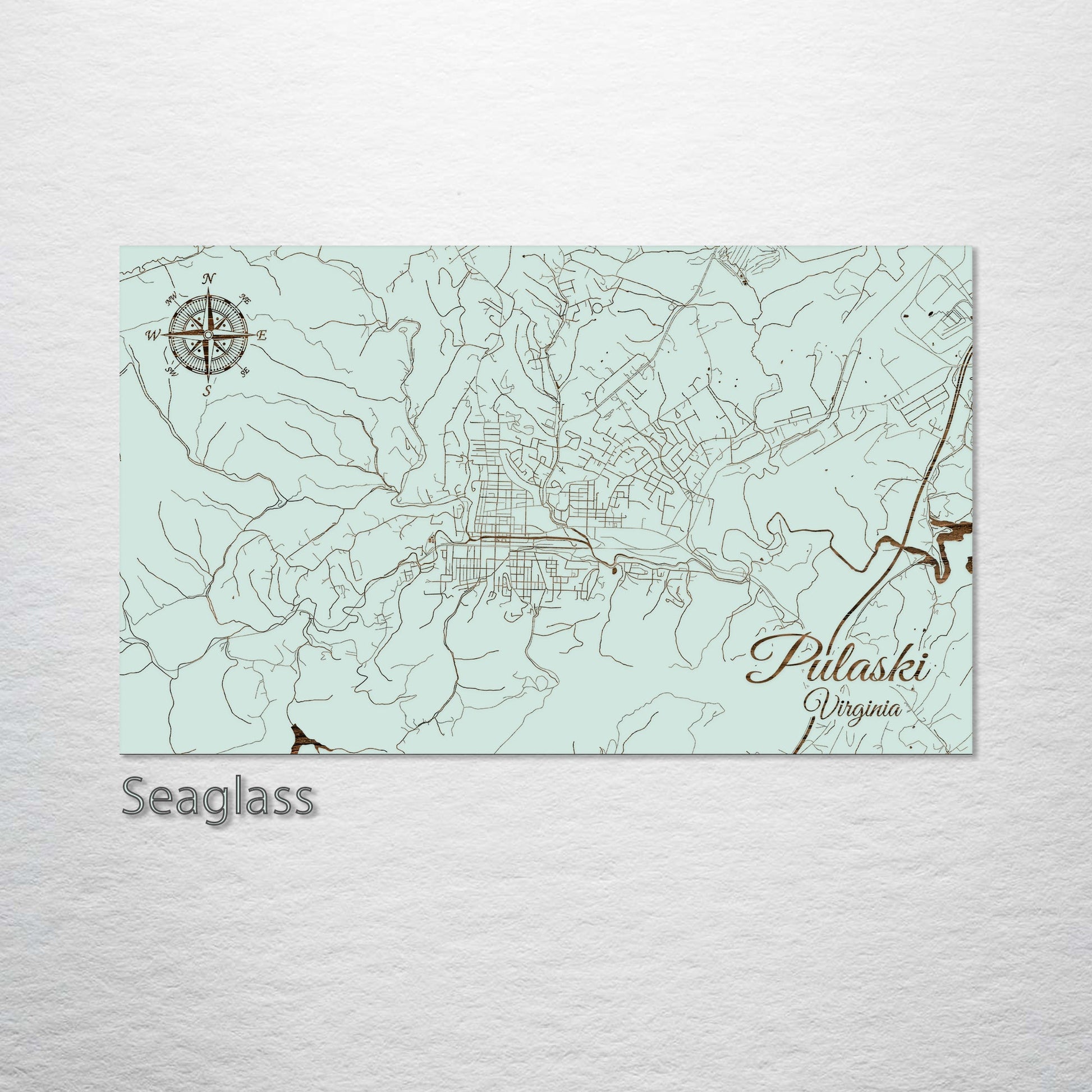 This is a street map of Pulaski, VA designed by Fire & Pine artists.