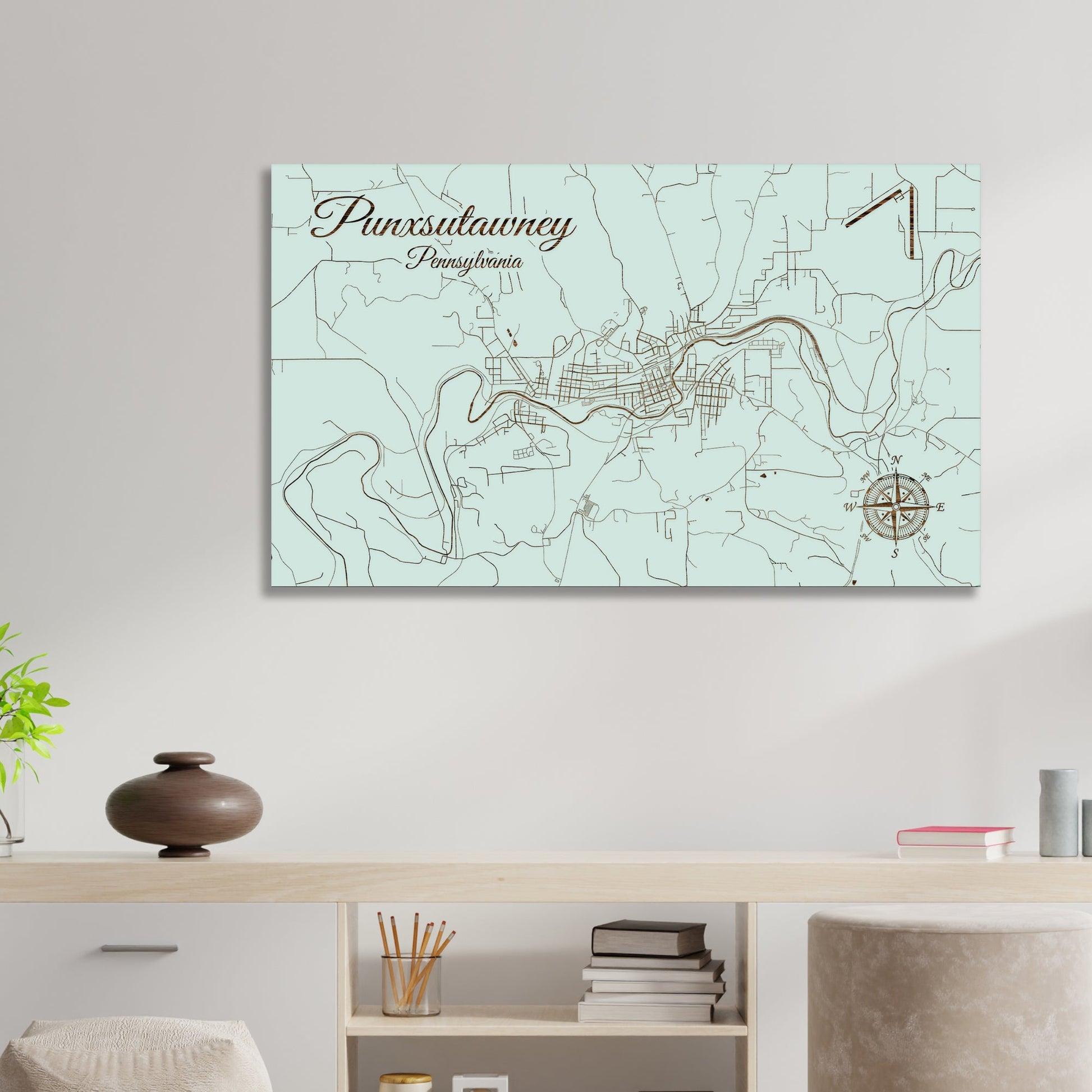 This is a street map of Punxsutawney, PA designed by Fire & Pine artists.