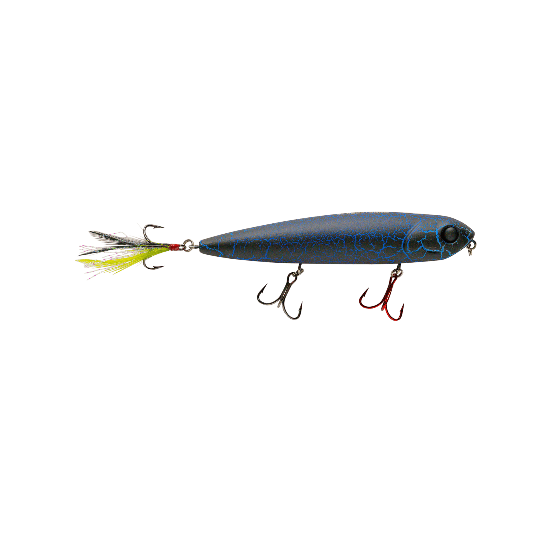 Storming back to the scene with a new and improved body that is formulated from a special blend of plastic that is harder and more sonorous than used in most topwater baits along with a modified weight transfer system that'll help you cast with pinpoint accuracy. This topwater assassin is available in 9 premium paint schemes & armed with 3 razor sharp Mustad short shanked treble hooks and oversized eyes that are recessed into the body so they will not get knocked off by reaction strikes or submerged structure.