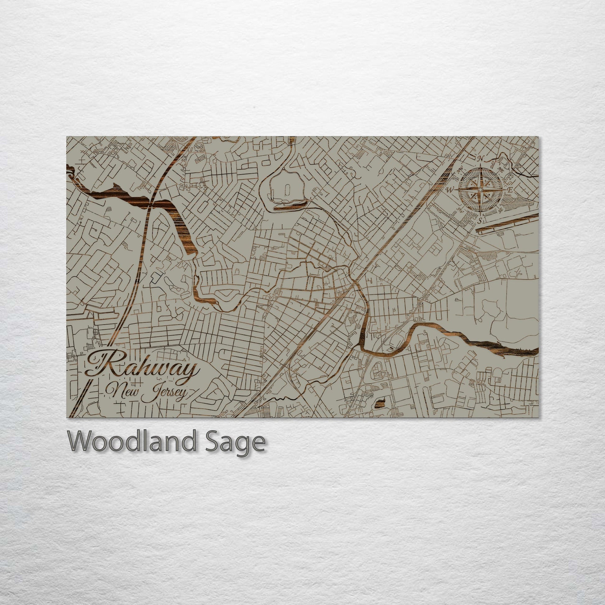 This is a street map of Rahway, NJ designed by Fire & Pine artists.