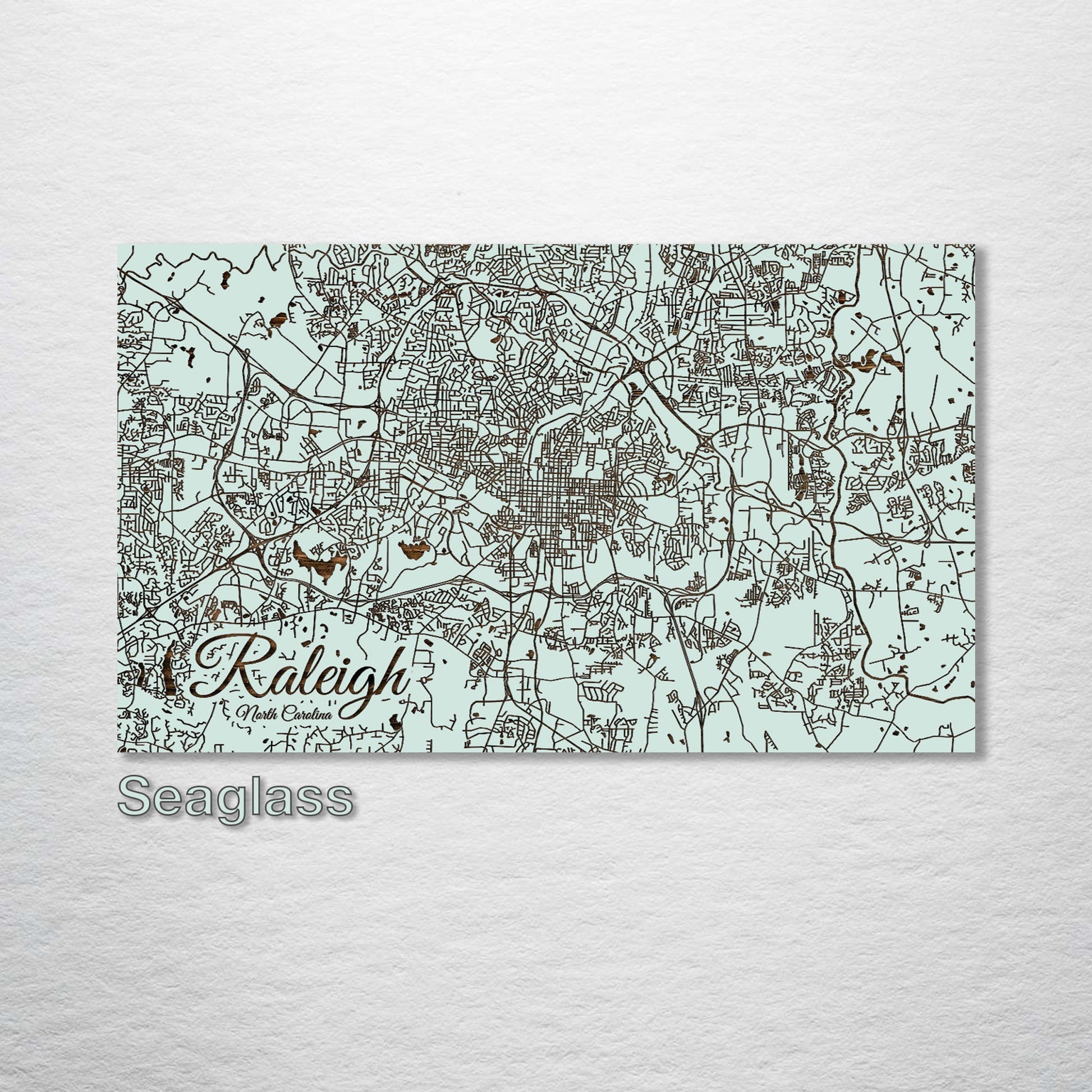 Unique gift for Raleigh enthusiasts: This Raleigh, North Carolina street map is made from high-quality pine wood and engraved to detail the city's road network. It serves as an ideal addition for those who appreciate Raleigh for its educational institutions, technology industry, or southern charm.
