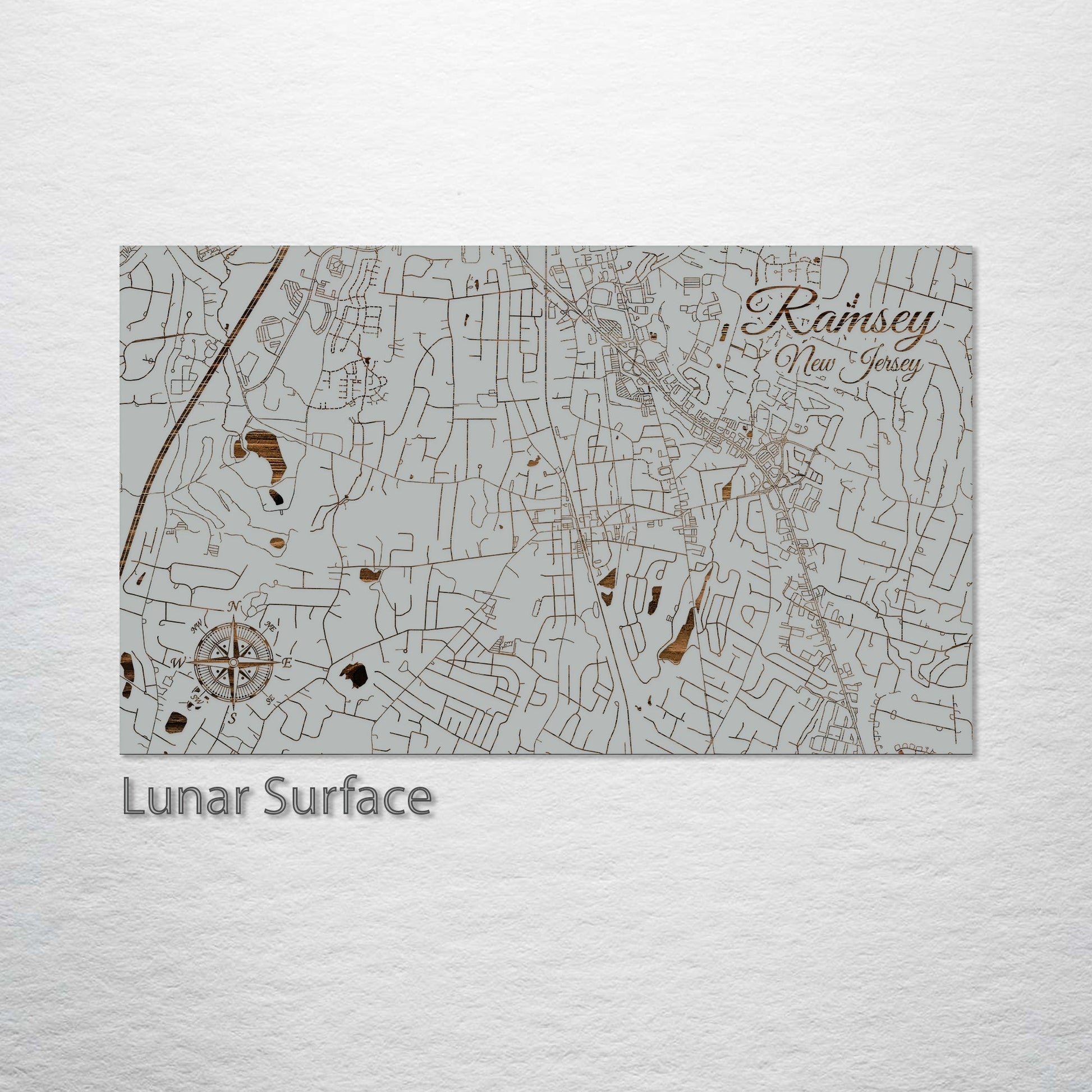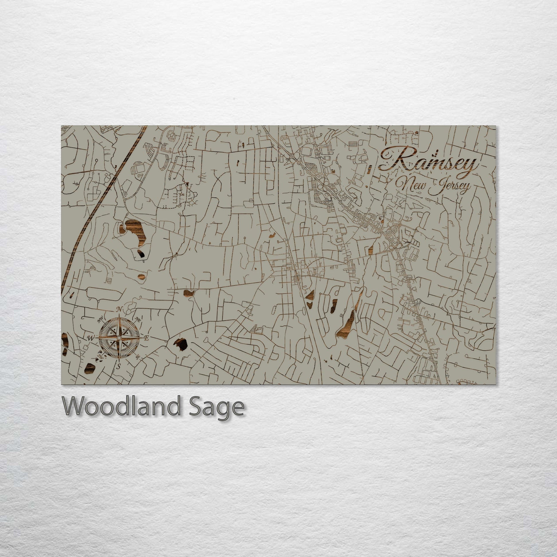 This is a street map of Ramsey, NJ designed by Fire & Pine artists.