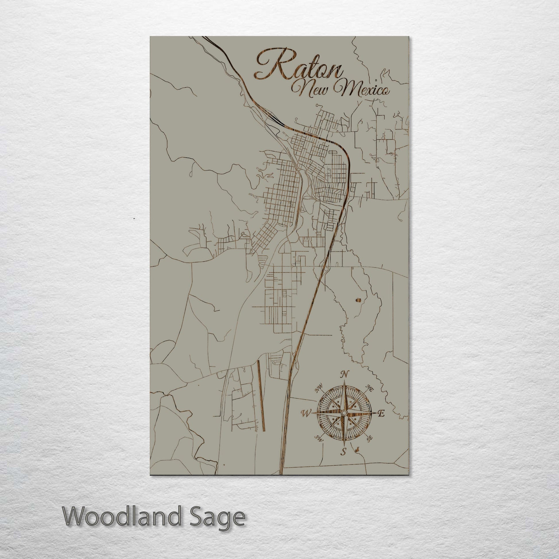 This is a street map of Raton, NM designed by Fire & Pine artists.