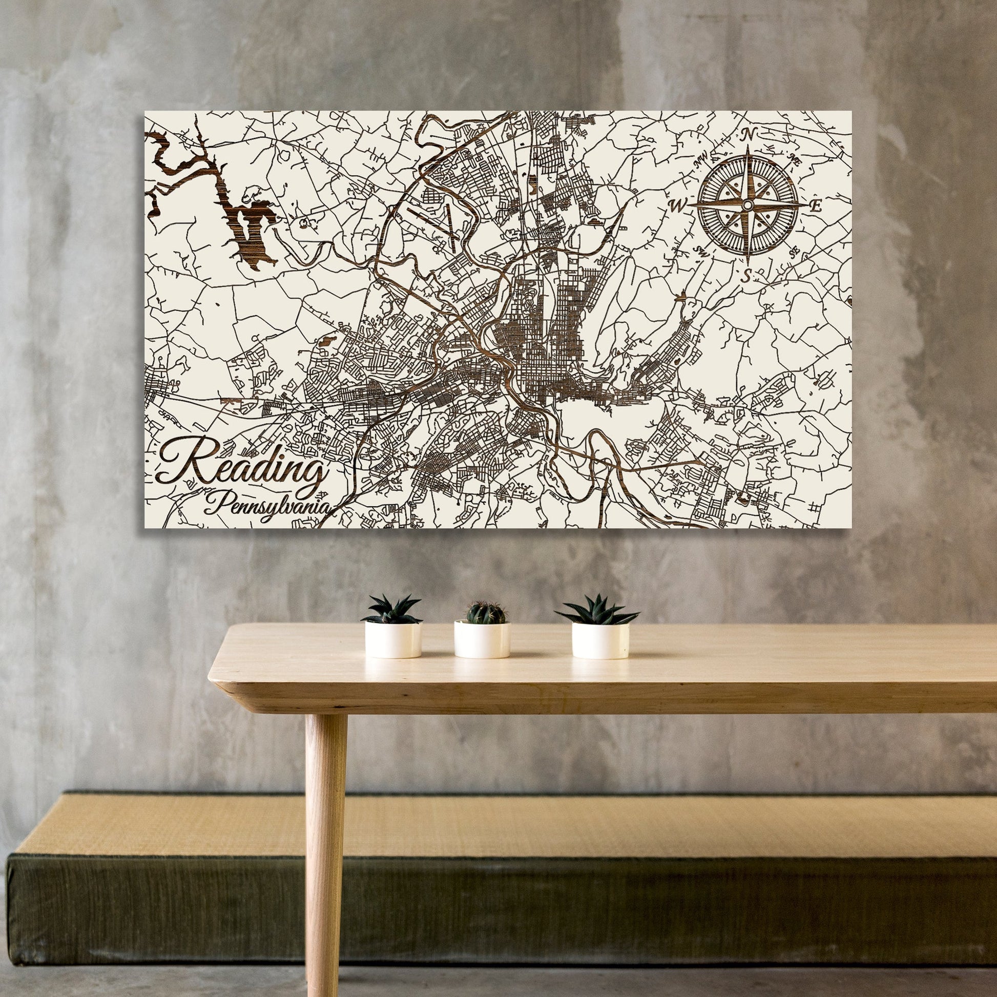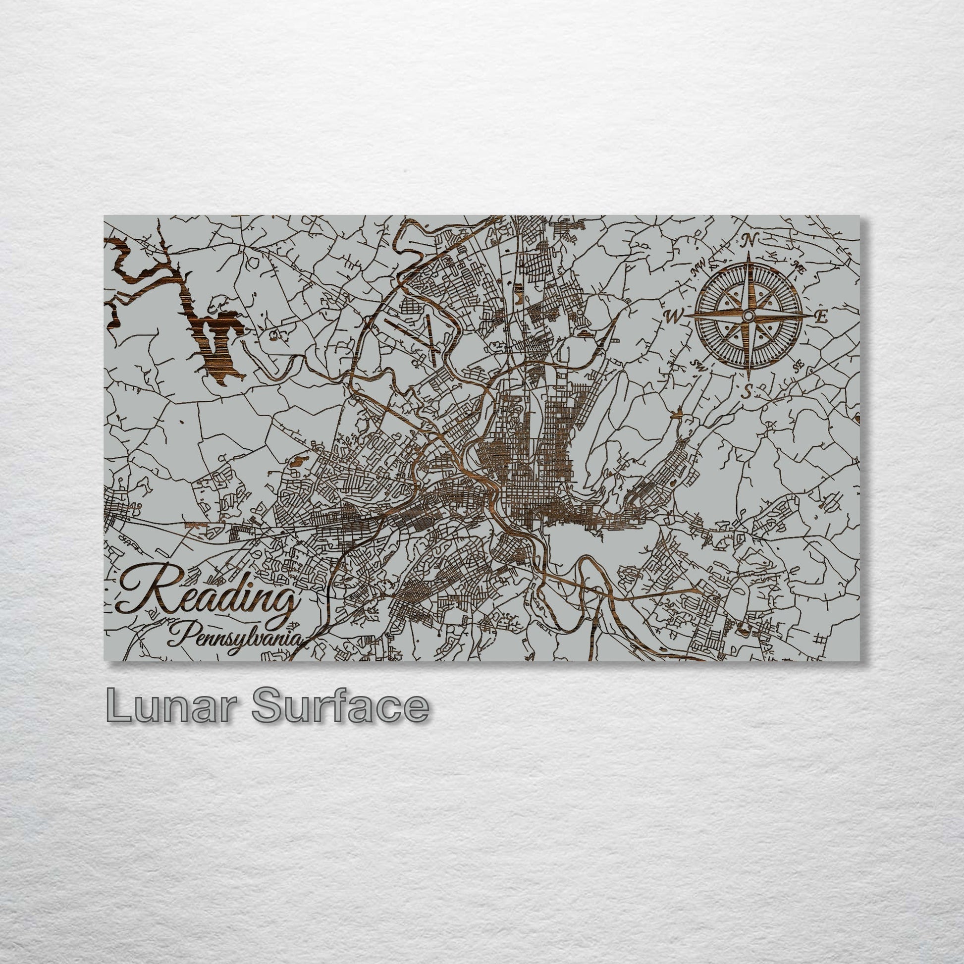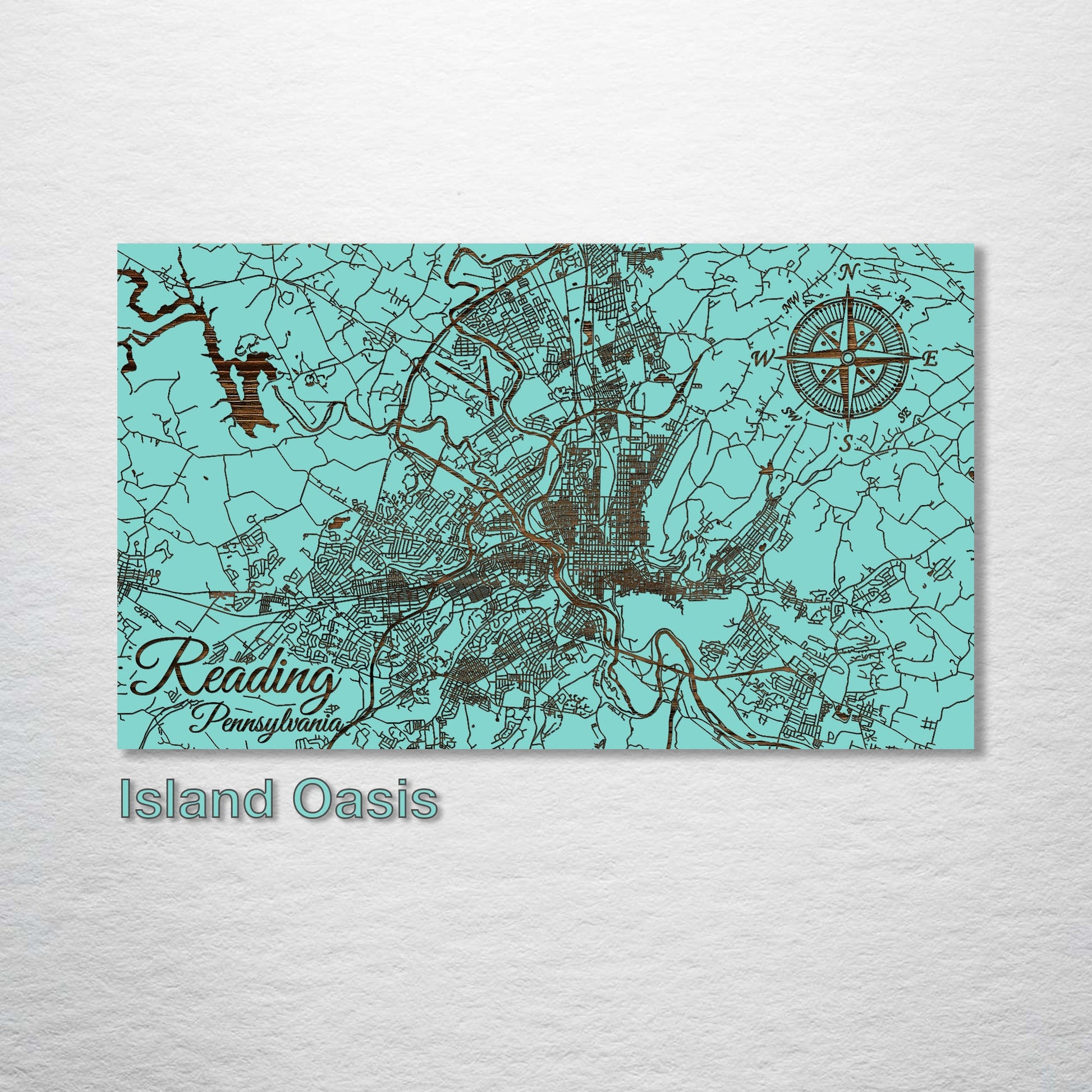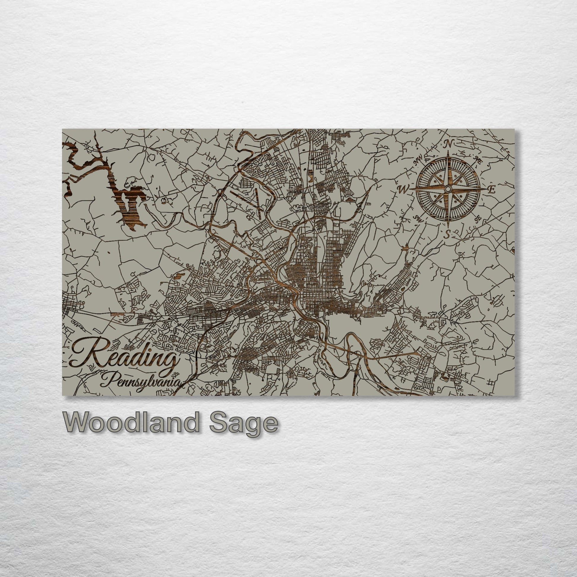 This is a street map of Reading, Pennsylvania designed by Fire & Pine artists.