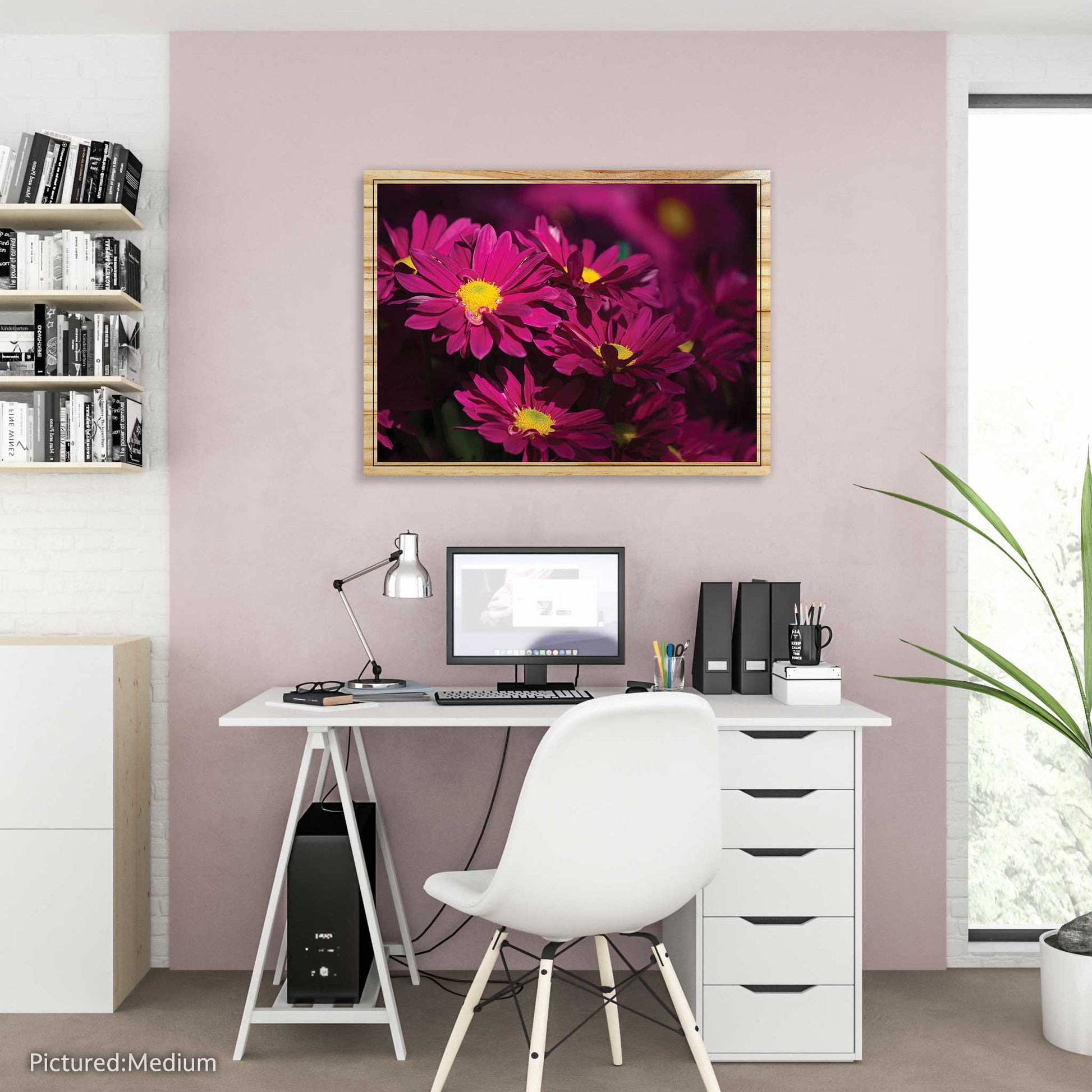 Red Chrysanthemums Daisy printed on pine wood! A mesmerizing fusion of nature and craftsmanship, this extraordinary piece is bound to ignite a sense of wonder in any space. With each brushstroke meticulously transferred onto the raw surface, these vibrant red chrysanthemums bloom with unparalleled vitality, enhancing your décor like never before.