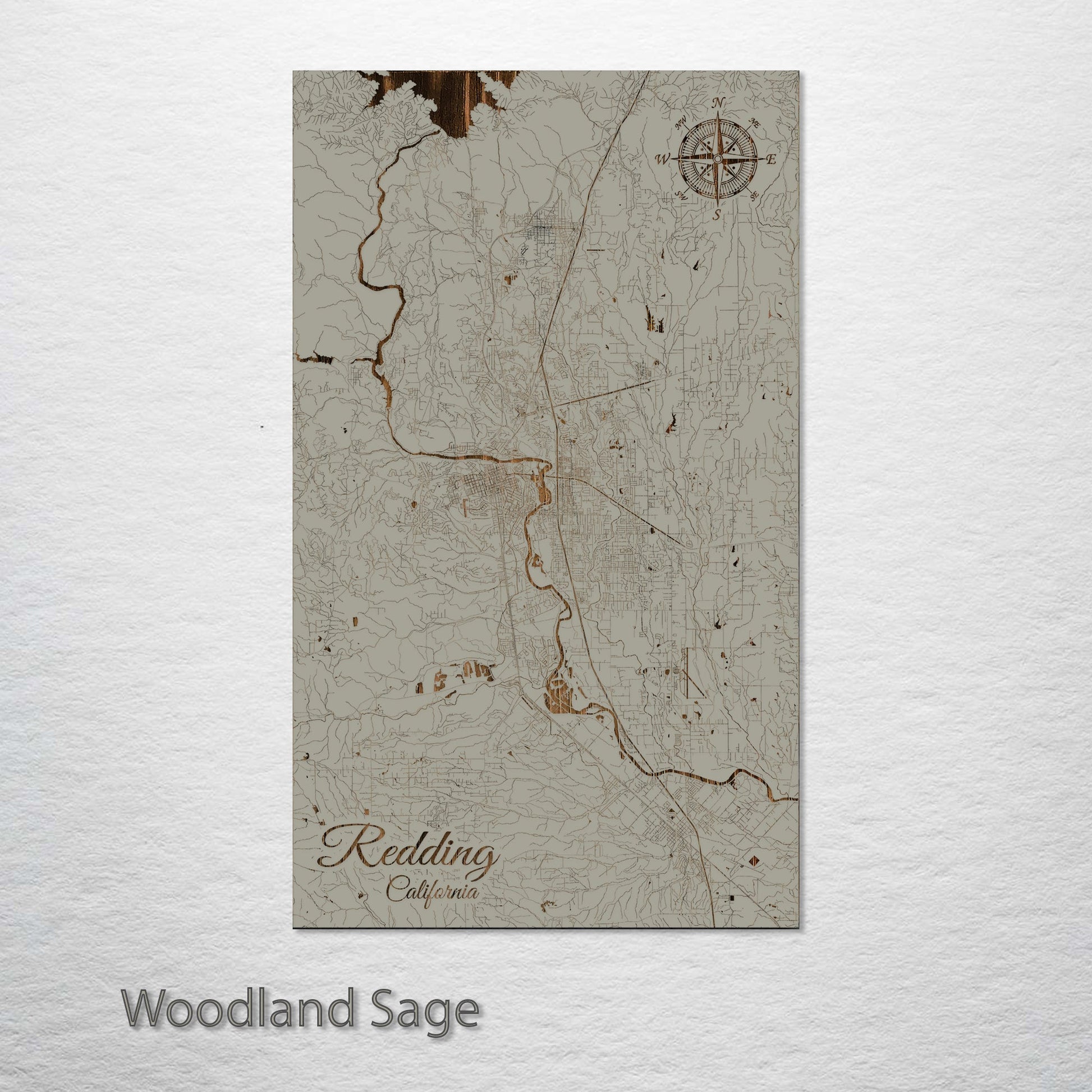 This is a street map of Redding, CA designed by Fire & Pine artists.