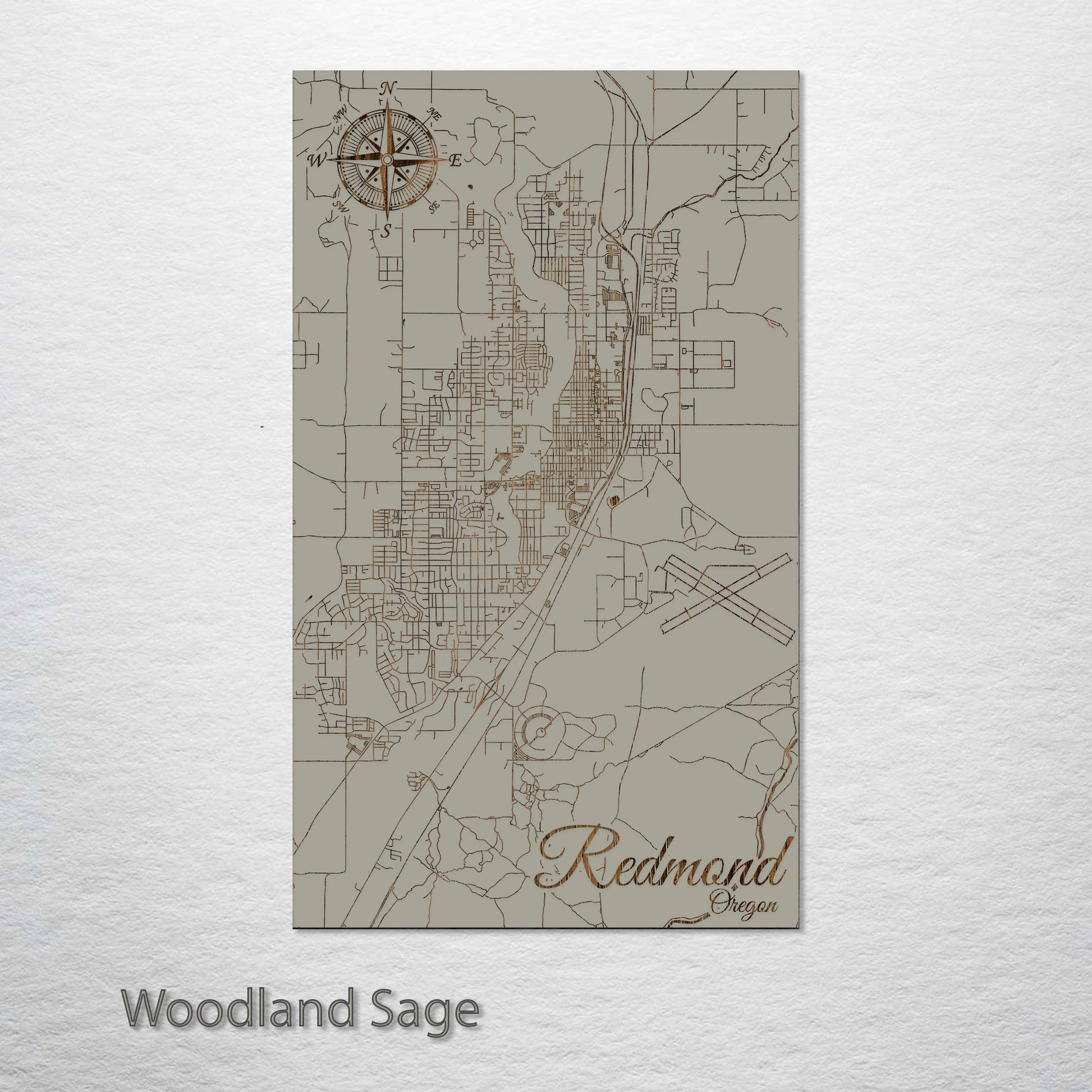 This is a street map of Redmond, OR designed by Fire & Pine artists.