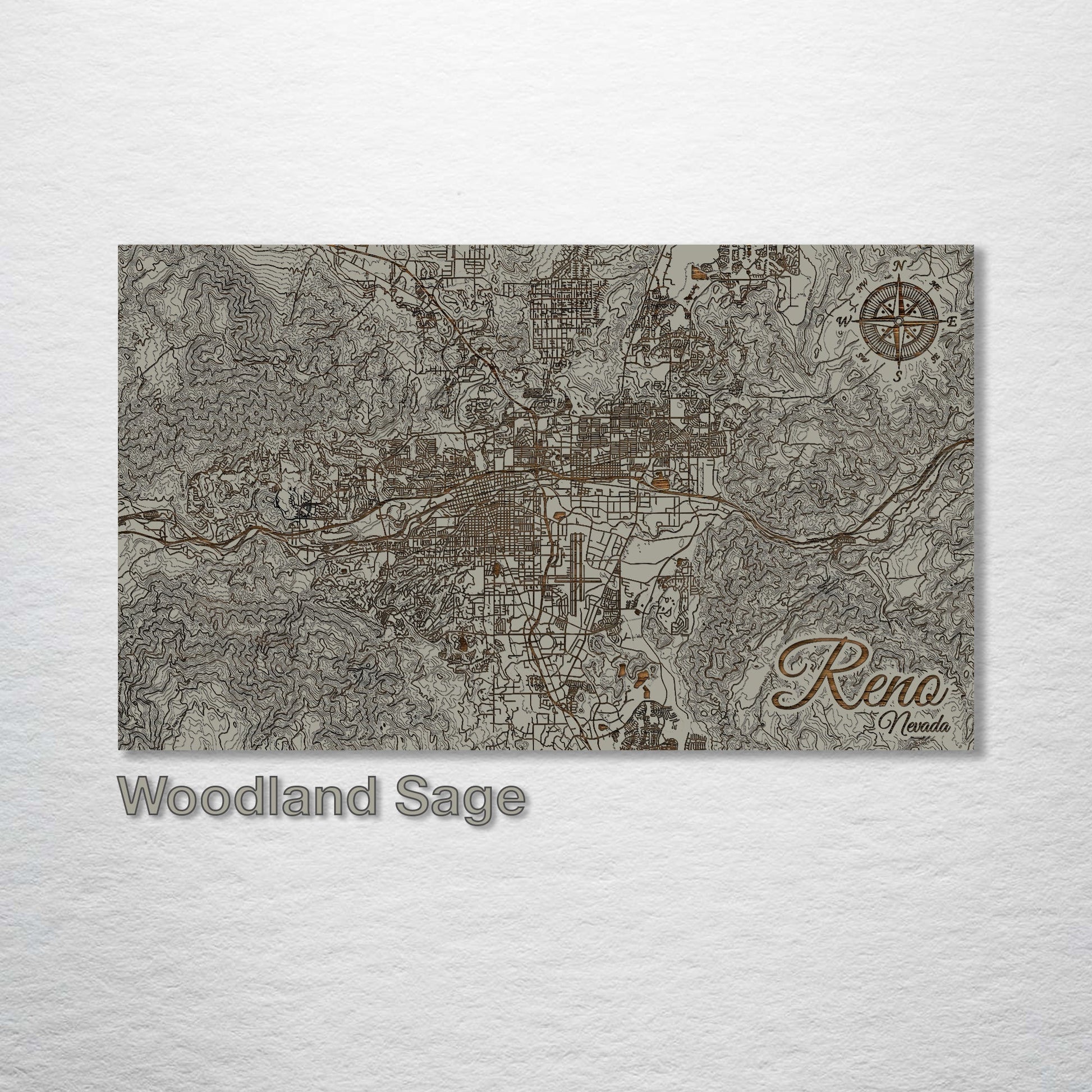This is a street map of Reno, Nevada designed by Fire & Pine artists.