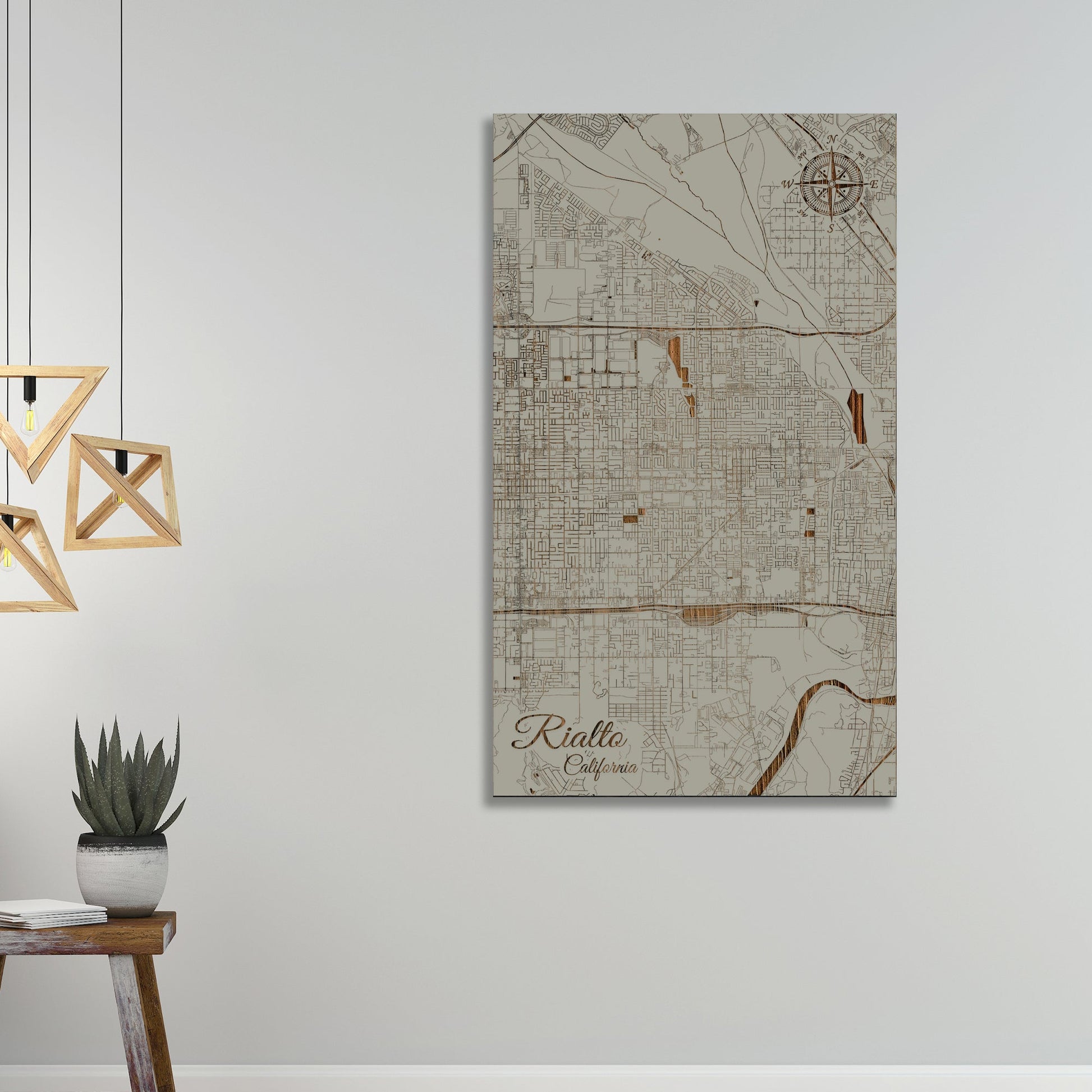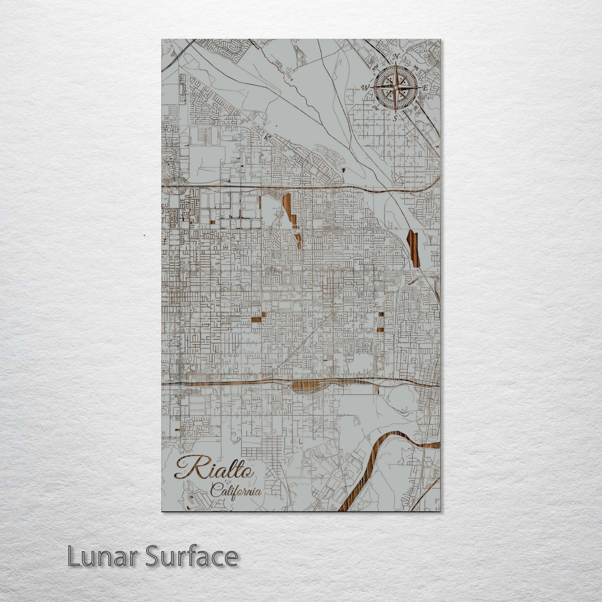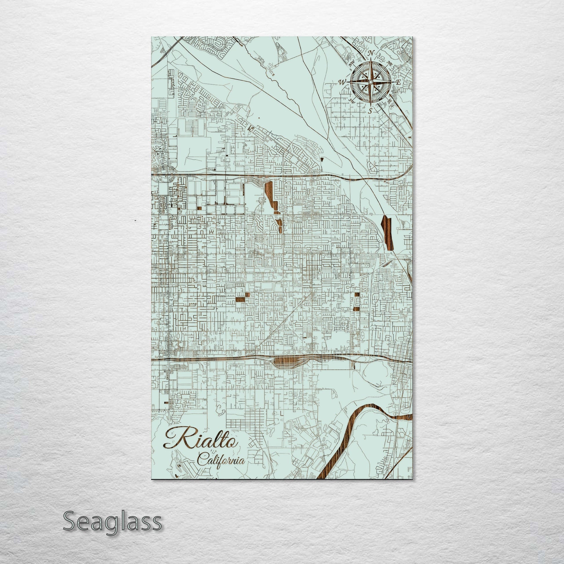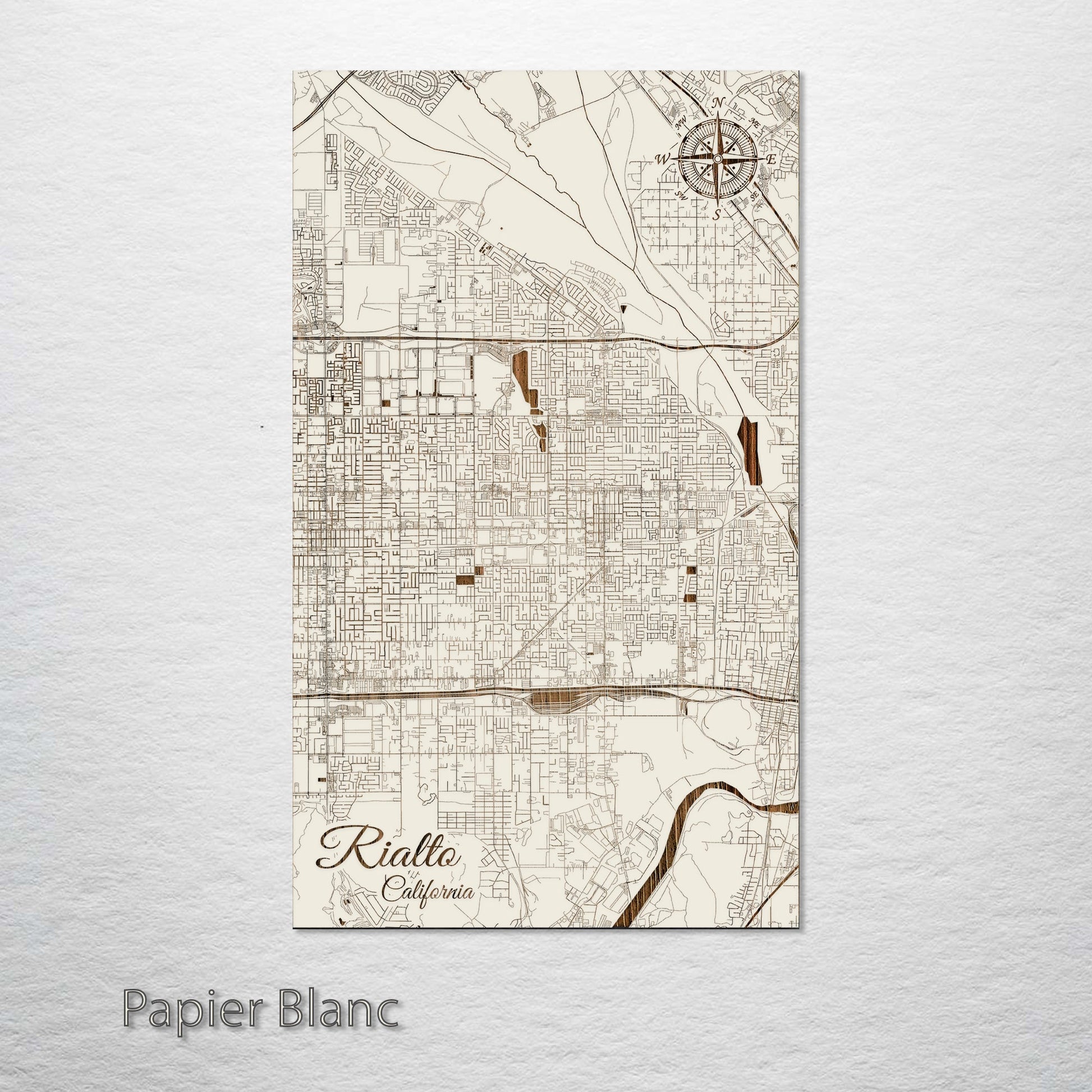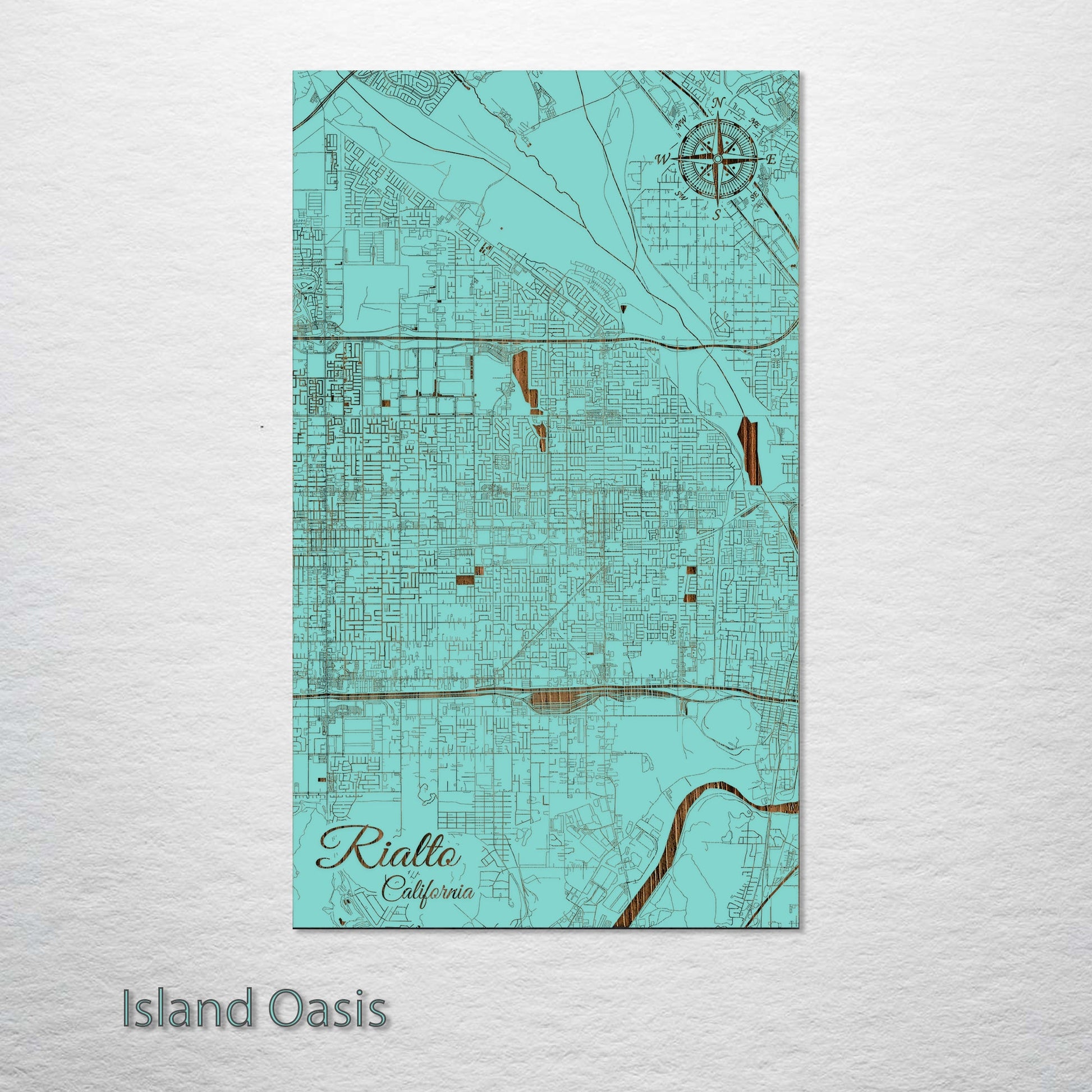 This is a street map of Rialto, CA designed by Fire & Pine artists.